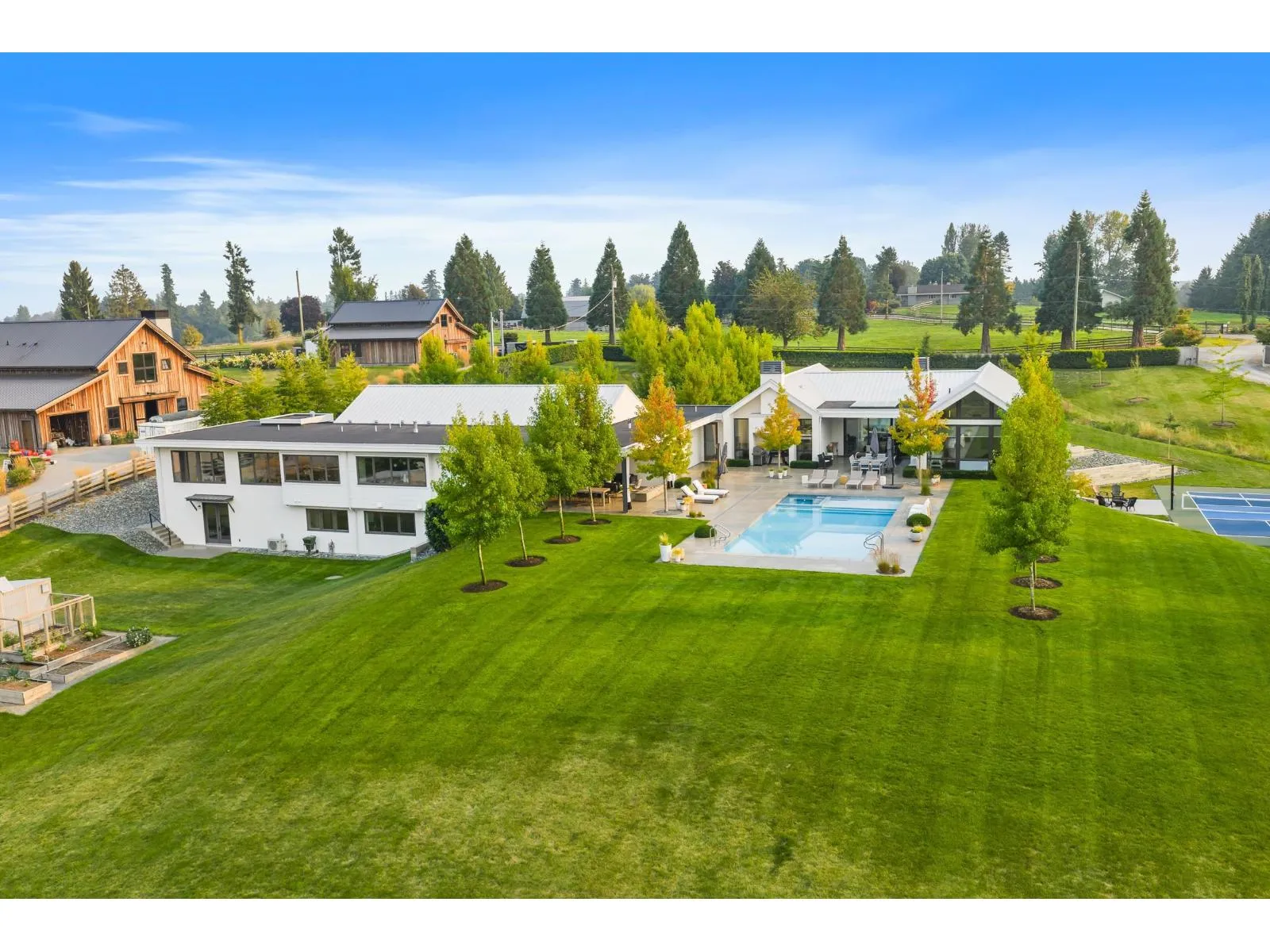 Luxury Estate Acreage! 10 private acres at the end of a quiet no-through street, this stunning 8 bed, 9 bath, 10,000+ sq. ft. custom 2018 home (Built by MEC) is perfect for multi-generational living, feeling like two separate, full-size residences. Thoughtfully designed with exquisite details throughout (Interior by Done to the Nines), the high efficiency home features oversized windows, two gourmet kitchens (3 total), in floor heating, home theater, gym, abundant storage, & 4-bay garage. Outside, enjoy the pool, pickleball court, & expansive patios, all perfect for entertaining. The gated, fully fenced acreage also features city water, outbuildings, garden & small greenhouse & apple trees. This is more than a home, it's a lifestyle, a retreat, a once-in-a-lifetime opportunity! (id:27476)