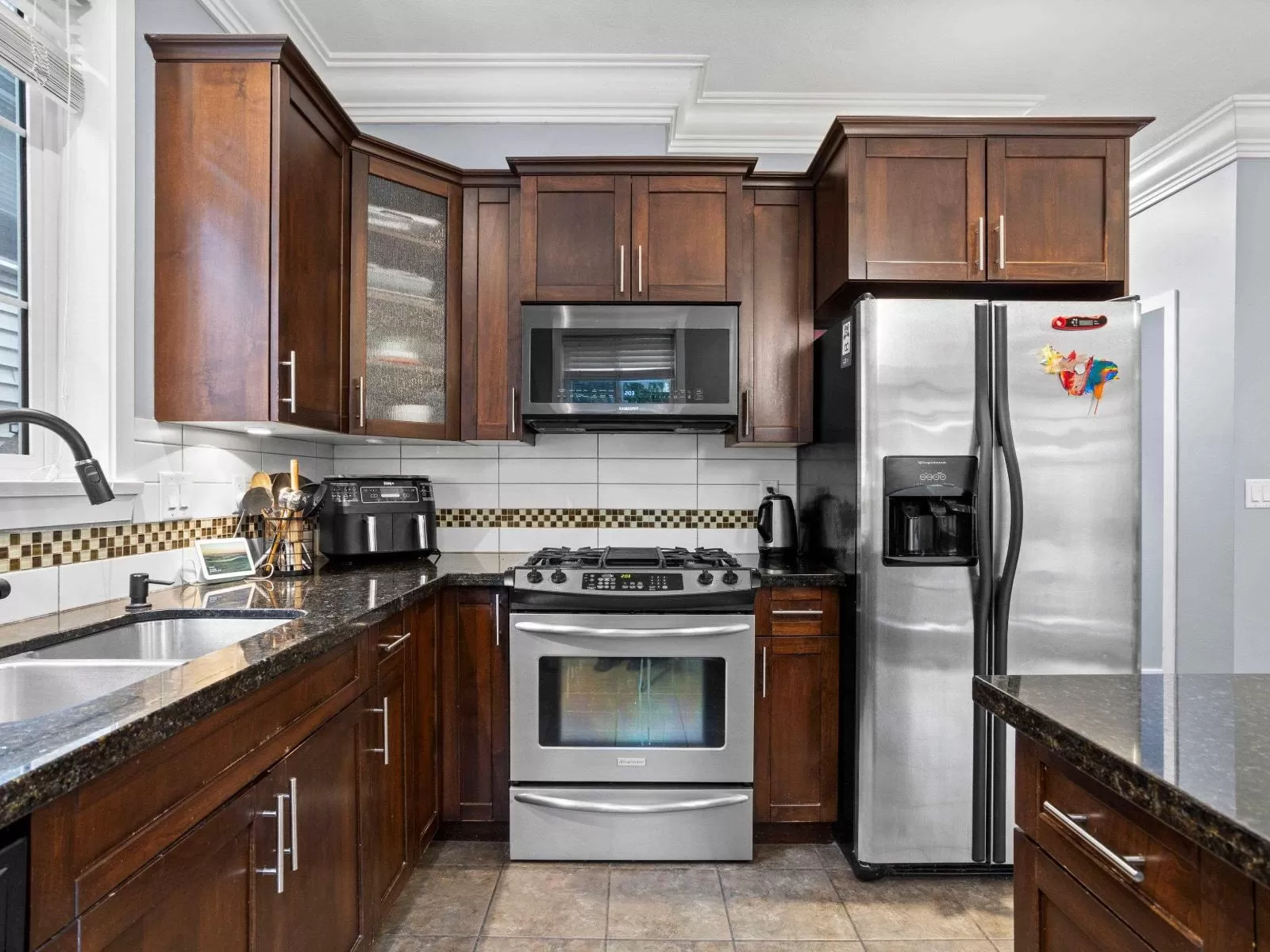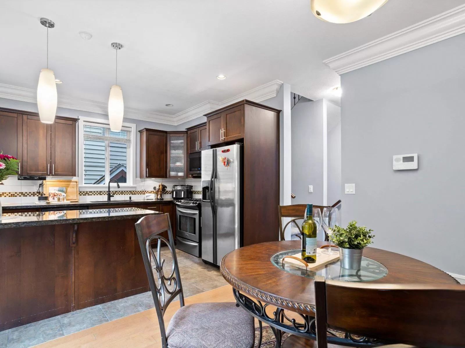 Experience comfortable, stylish living at this contemporary townhome in Ledgeview Villas, offering a spacious open-concept layout, modern finishes, stainless steel appliances, & a private balcony with serene views. The luxurious master suite, convenient in-suite laundry,& double garage with extra storage are just some of the highlights of this 4 bed,3 bath,2072 sq ft home. Natural light fills every room, enhancing the inviting atmosphere throughout. The beautifully maintained community grounds provide a welcoming environment ideal for families & entertaining guests. Enjoy the peaceful suburban surroundings near parks, trails, schools, & shopping, while still having easy city access. Don't miss out on owning this remarkable residence in one of Abbotsford's most sought-after neighborhoods. (id:27476)