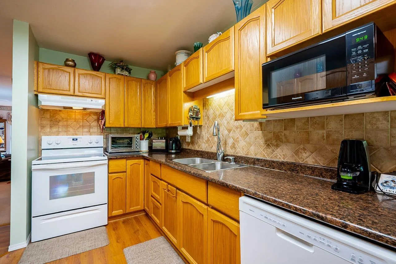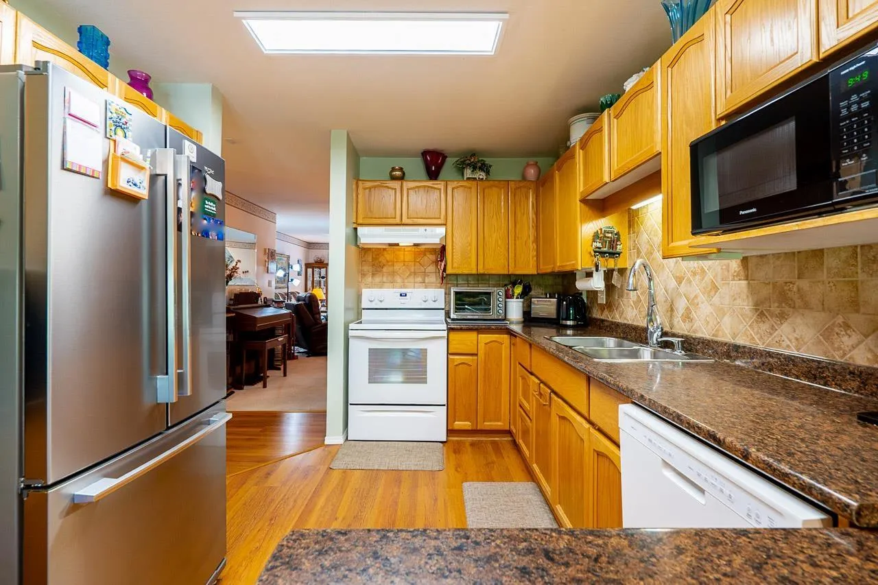 Fantastic quite location for this Immac 2 bed, 2 bath townhouse! The open-concept layout boasts a huge living room with gas F.P, perfect for entertaining. The dining area is large enough to invite the whole family. Kitchen features modern appliances lots of cupboards & a great eating area. You'll love the large primary bedroom with an ensuite. The second bedroom is versatile & can serve as a guest room or office. Low strata fees make homeownership affordable, and this adult-oriented 55+ complex ensures a serene living environment. Step outside to your private patio, and enjoy a tranquil retreat for morning coffee or evening relaxation Great opportunity for easy living in a well-maintained community, offering convenience and accessibility to shopping, walking trails. (id:27476)