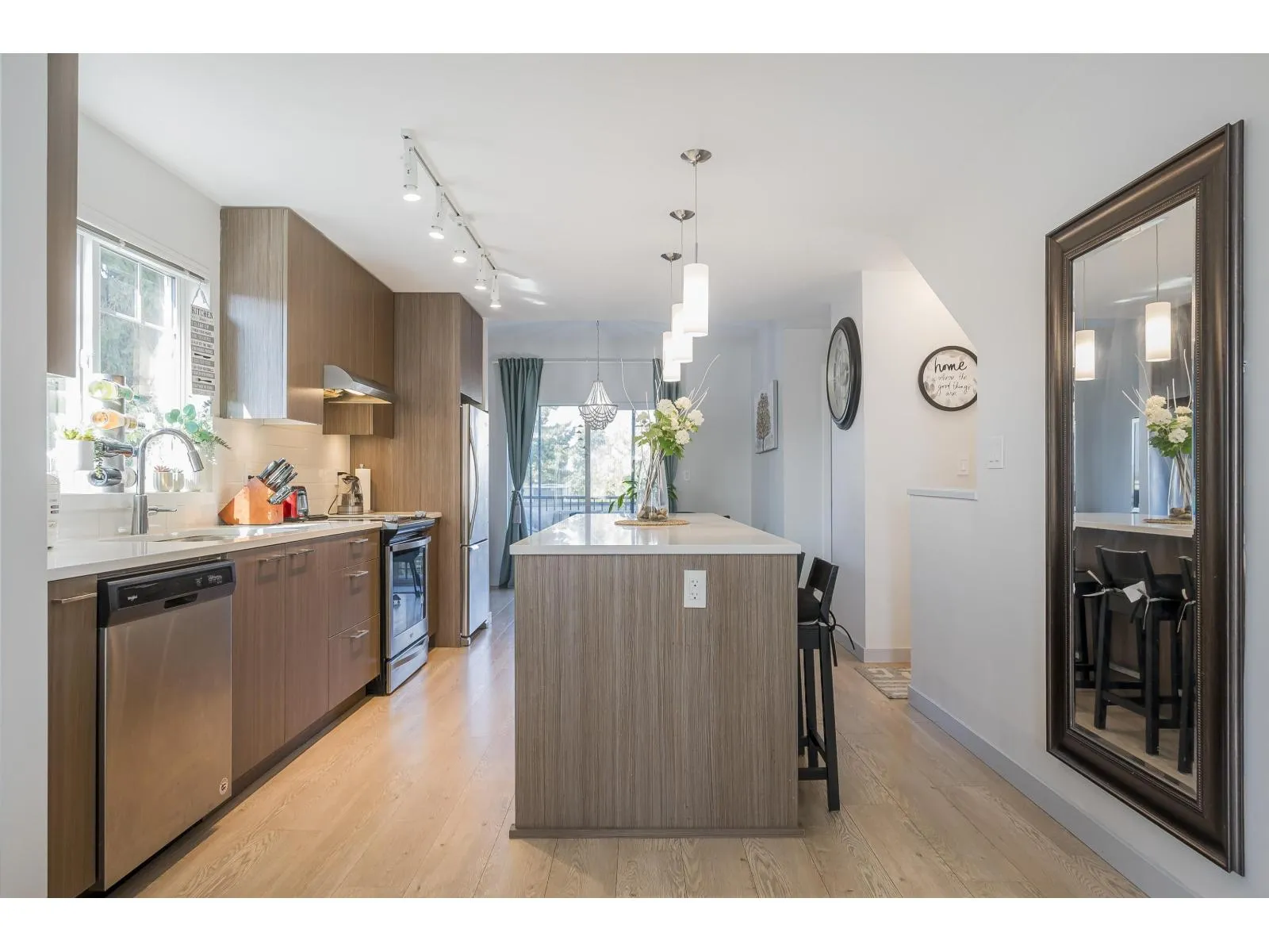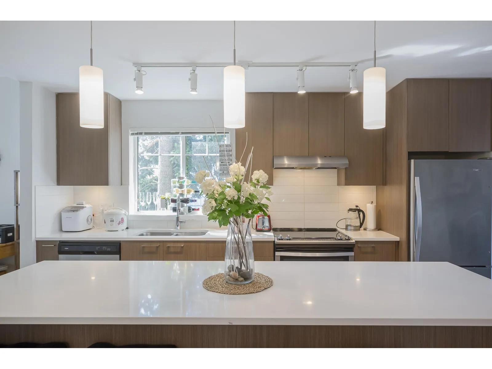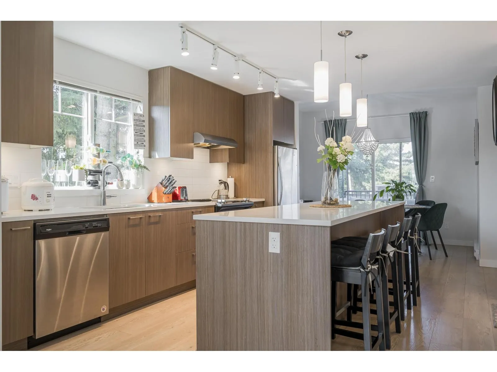 WELCOME TO ALLWOOD PLACE. This 3 bedroom, 3 bathroom townhome is an end corner unit, making it the most desirable location. The oversized yard is one of a kind with the ultimate privacy and space with tall trees that provide you with plenty of shade. There is a powder room on the main floor, large Island with quartz counter tops, built in microwave and stainless appliances. Upstairs provides a nice sized primary with walk in closet, ensuite, and an additional 2 bedrooms with main bathroom. Unit has a tandem garage with exterior exit and epoxy flooring. This complex has a gym, party room, yoga room, theatre and a play park. The perfect home for a growing family, close to stores and restaurants with visitor parking right outside. (id:27476)