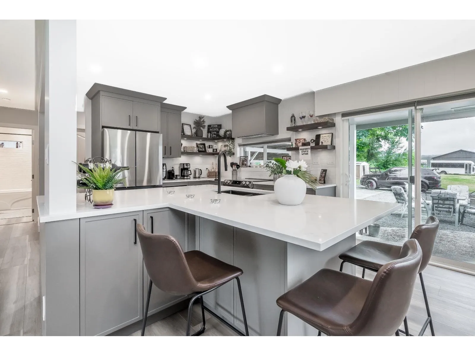 Glen Valley !!! Serene peaceful Modern charm on the edge of the Valley - minutes from Abbotsford and Fort Langley. Tucked away on a quiet farm road this .37-acre property blends peaceful farmland views with a fully renovated interior. This home is move-in ready with a separate entrance to the bsmt, RV parking and stylish updated entrance. Highlights include: Quartz countertops in kitchen & bath, wood fireplace + heat pumps (4 zones), all new kitchen - appliances, cabinets, marble-topped island, new 200 amp panel, plumbing, lighting and flooring, wood-edge bar in basement rec room, roughed-in for a suite: kitchen + bathroom ready, two new decks, fire pit, upgraded yard, fresh paint & more. Roof (10-12 yrs), windows (8-10) and hot water tank (4). (id:27476)
