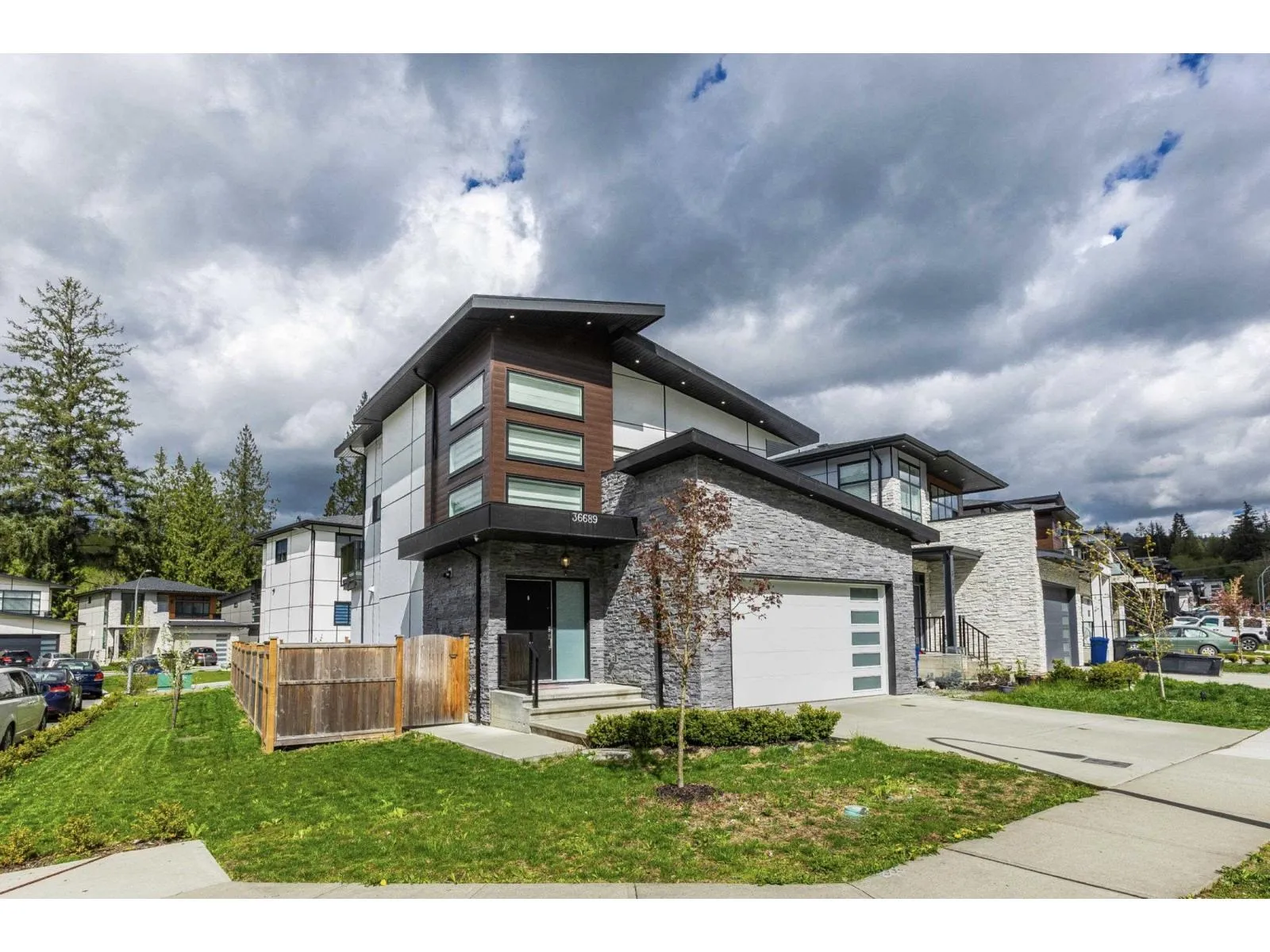 Elegant & modern 5BR 3.5BTH corner-lot home in serene Sumas Mountain. Step inside to a vaulted foyer leading to a chef-inspired kitchen with huge island, quartz counters, gas range, and premium S/S appliances, seamlessly connected to a bright dining area and open living room with expansive windows. Glass door opens to a fully fenced fruit-treed backyard perfect for play, entertaining, gardening and outdoor enjoyment. A light-filled staircase leads you to a spacious loft and 3 bedrooms with soaring ceilings, 2 spa-like bathrooms and 2 private balconies overlooking lush greenscape. The separate-entry basement with 2BR 1BTH and its own laundry offers versatile living options. Enjoy the tranquility of nature while being just minutes from schools, amenities, and Hwy 1. Now showing! (id:27476)