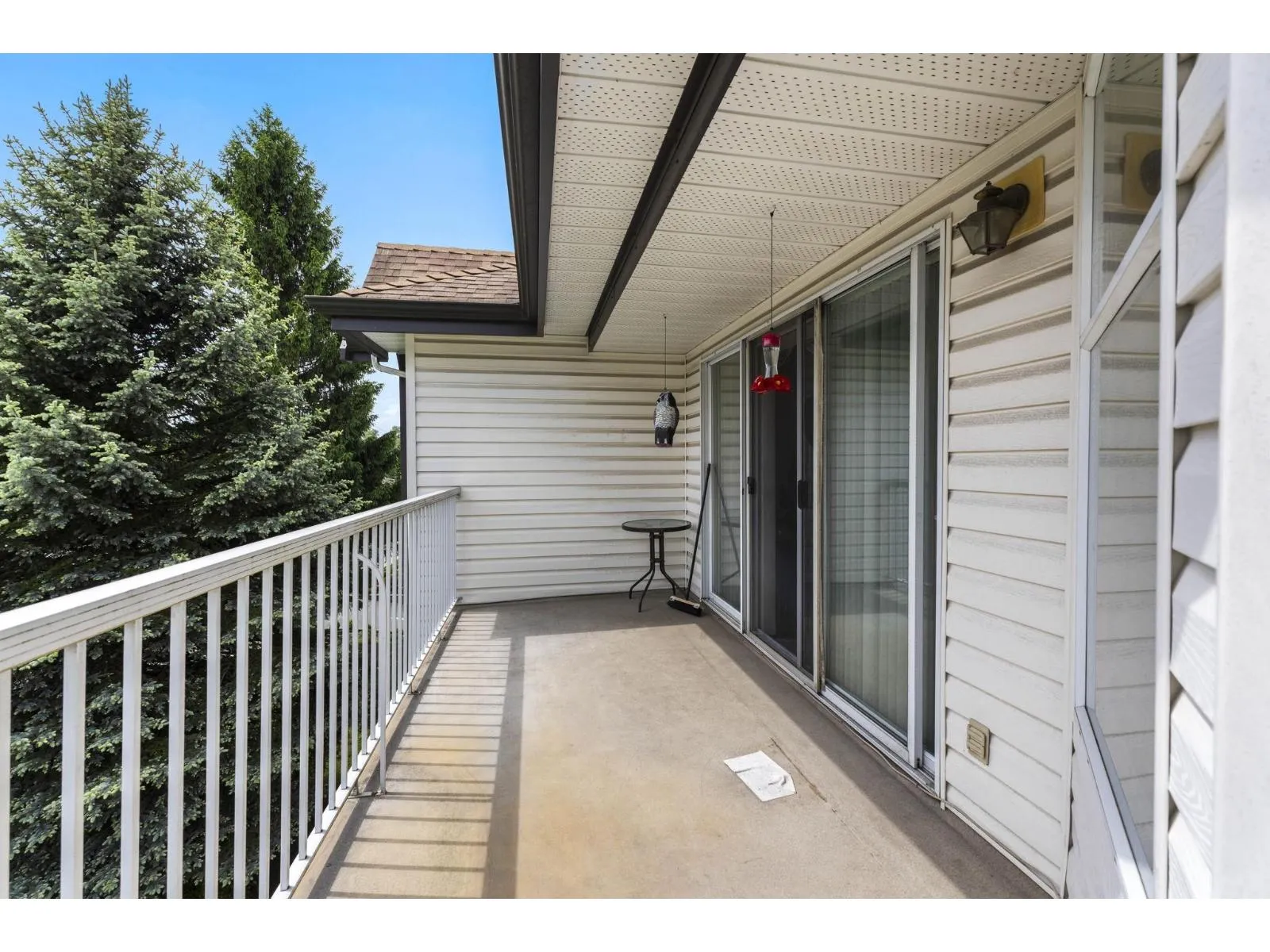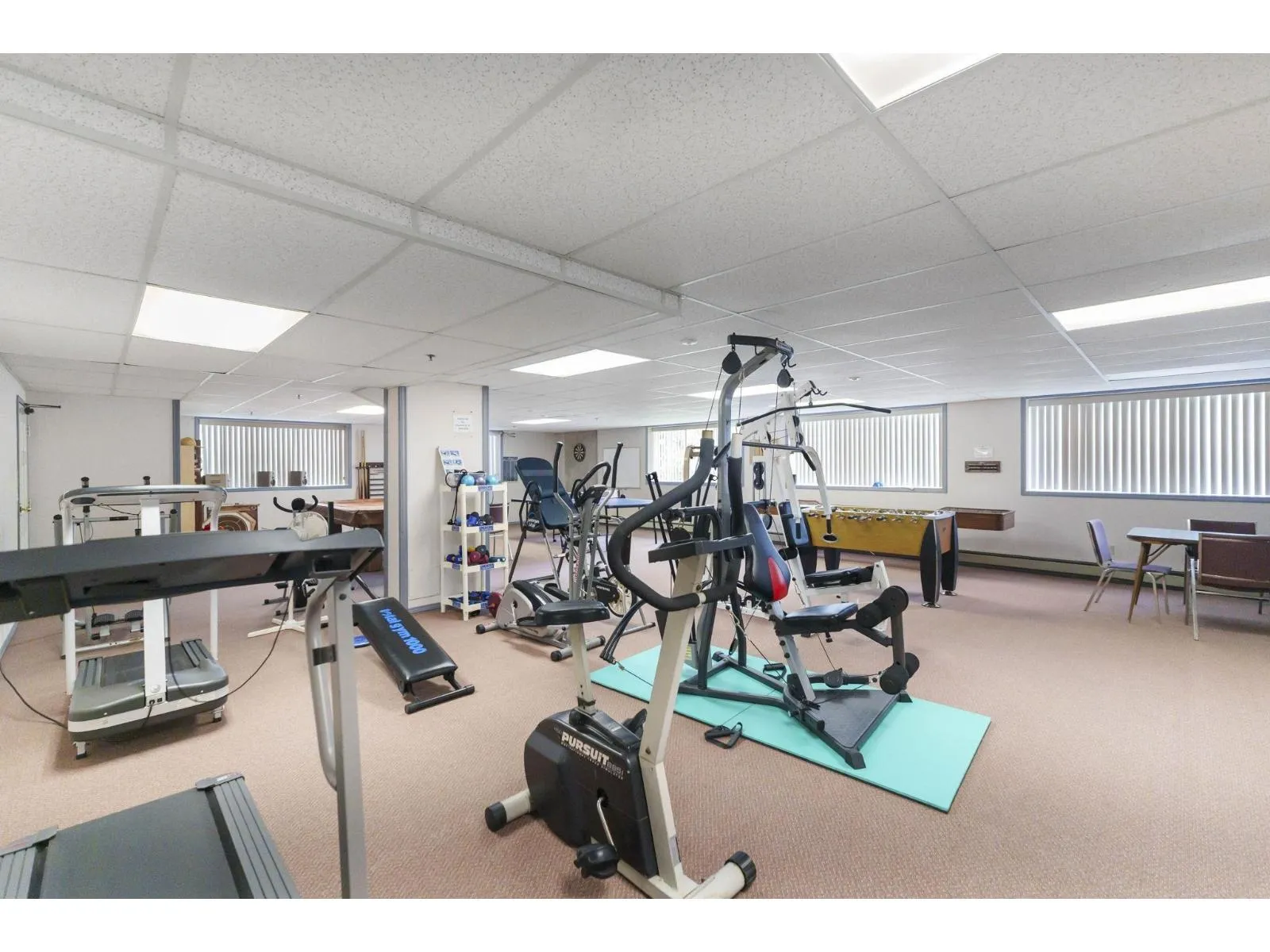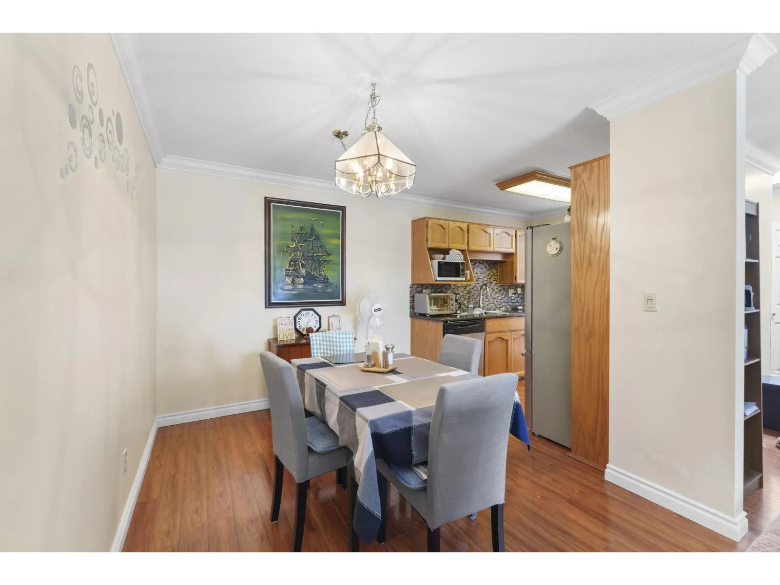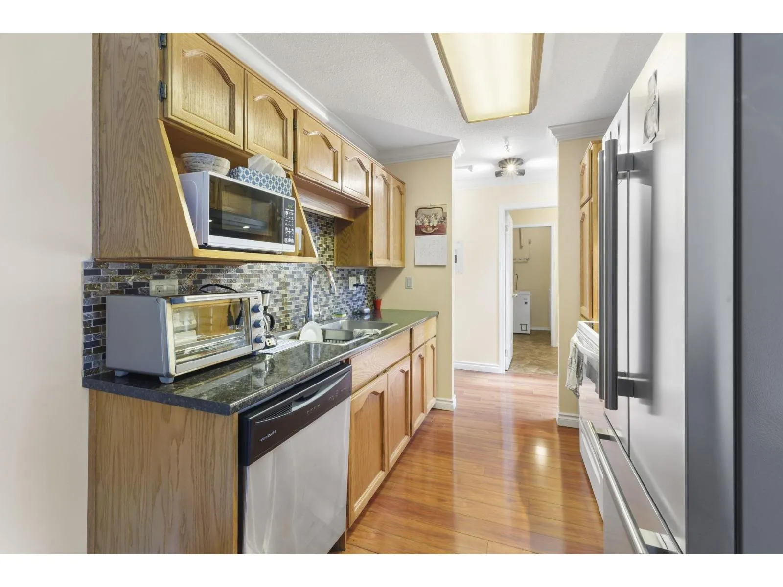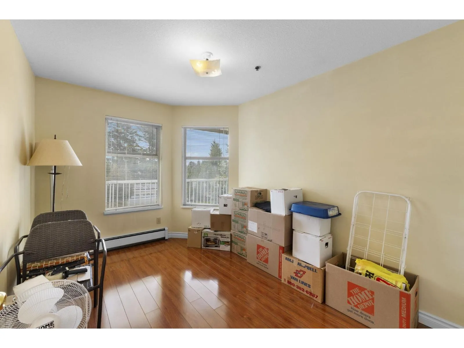 Top-floor charm in Central Heights Manor! This bright 2 bed, 2 bath condo welcomes you with a skylit foyer and stylish laminate floors throughout. Enjoy formal living and dining spaces with elegant crown moulding, rich draperies, and a cozy wall-mounted electric fireplace. Step into the sunny south-facing deck through sliding glass doors. The galley kitchen features sleek stainless steel appliances. Relax in the spacious primary bedroom with vaulted ceilings, walk-in closet, and 4-piece ensuite. The second bedroom is ideal as a guest room, office, or den. In-suite laundry with extra storage, 2 storage lockers, and a secure underground parking stall, and great amenities that include a gym, games room, workshop, art room, coffee area, guest suites, BBQ pit, and a community piano! (id:27476)