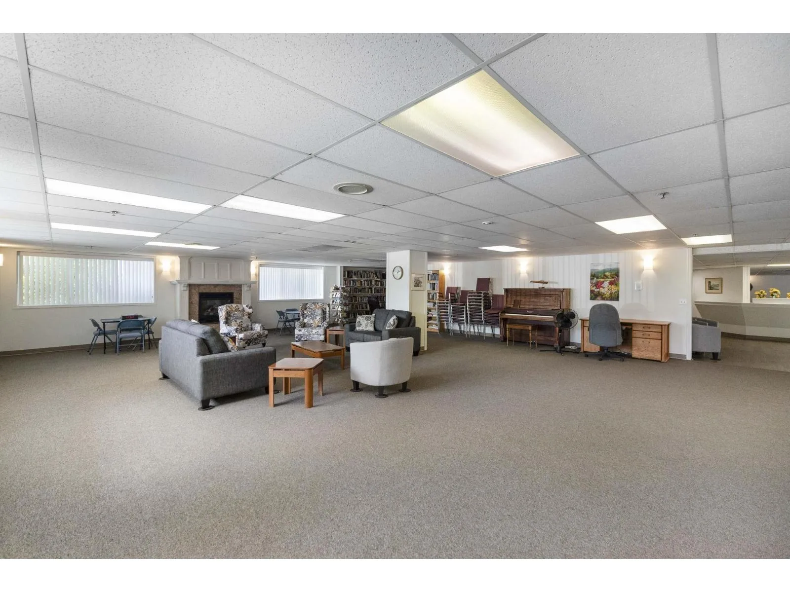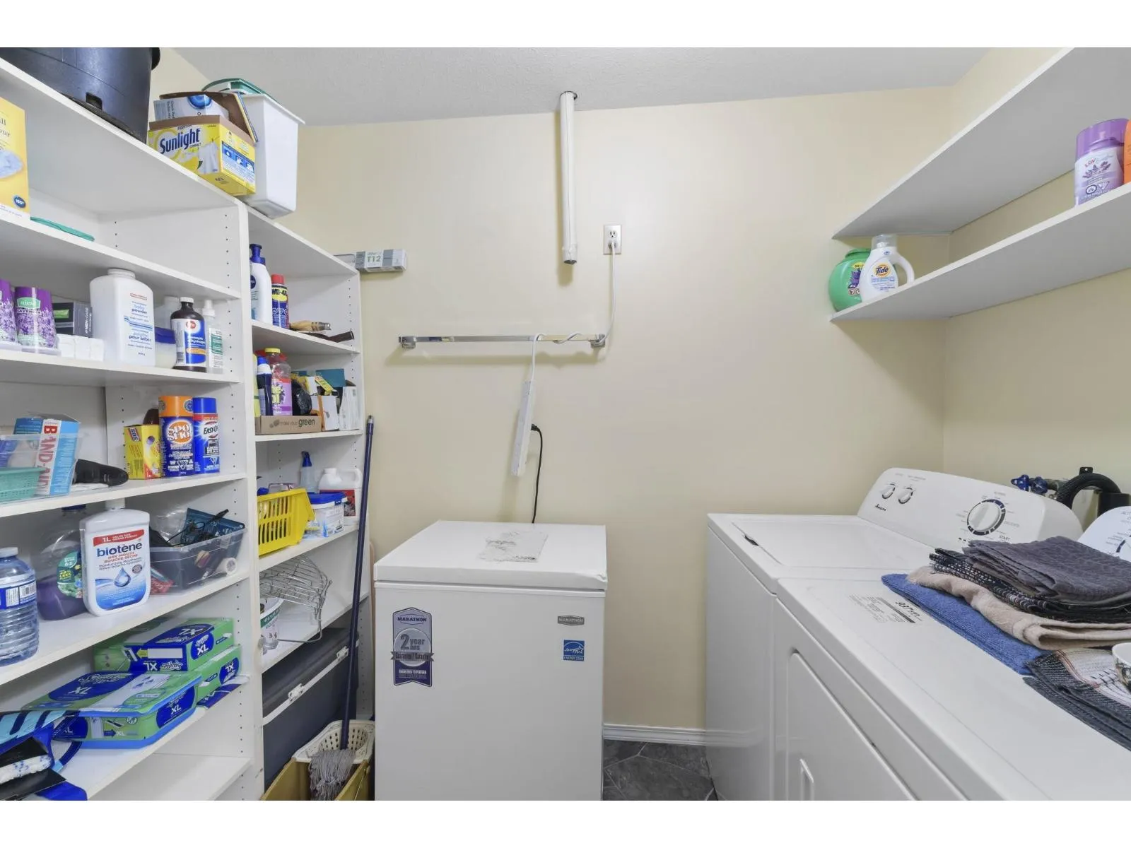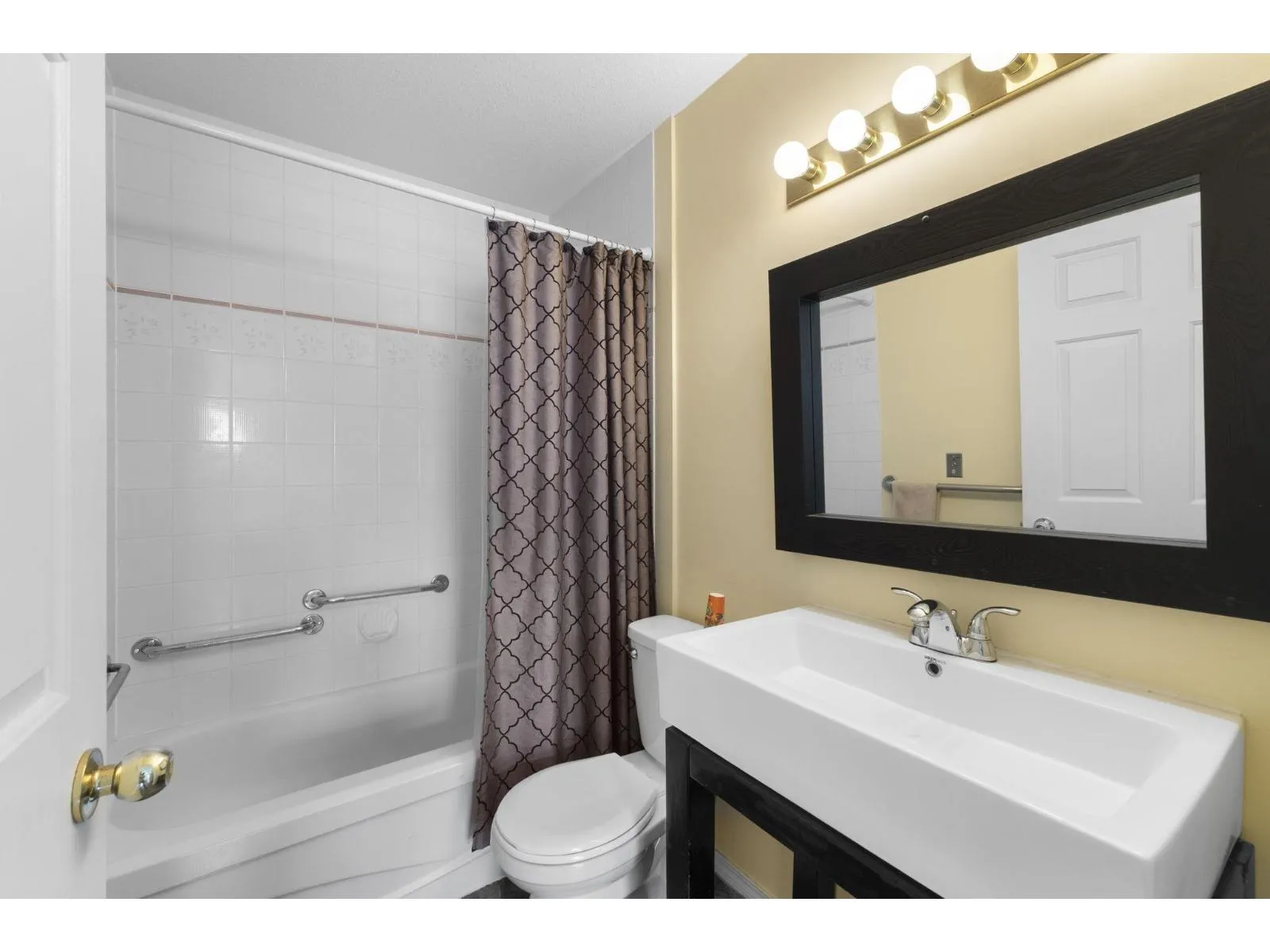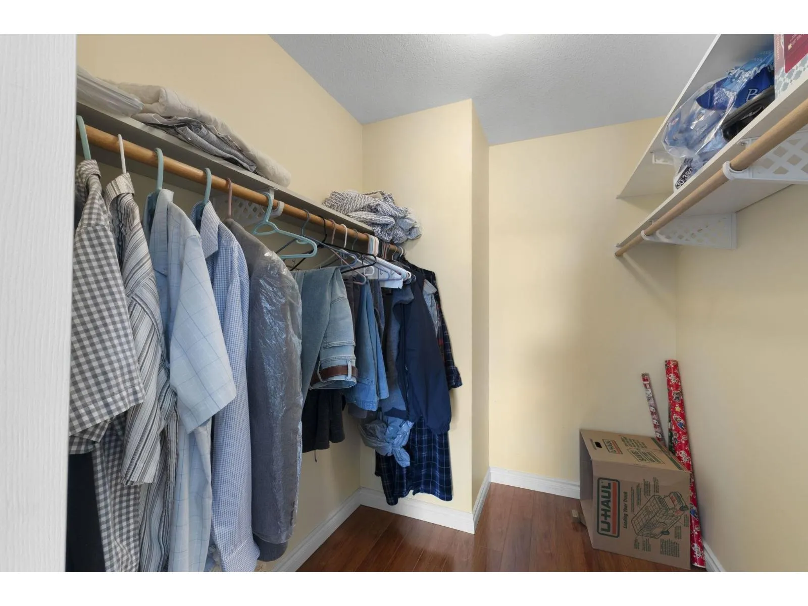 Top-floor charm in Central Heights Manor! This bright 2 bed, 2 bath condo welcomes you with a skylit foyer and stylish laminate floors throughout. Enjoy formal living and dining spaces with elegant crown moulding, rich draperies, and a cozy wall-mounted electric fireplace. Step into the sunny south-facing deck through sliding glass doors. The galley kitchen features sleek stainless steel appliances. Relax in the spacious primary bedroom with vaulted ceilings, walk-in closet, and 4-piece ensuite. The second bedroom is ideal as a guest room, office, or den. In-suite laundry with extra storage, 2 storage lockers, and a secure underground parking stall, and great amenities that include a gym, games room, workshop, art room, coffee area, guest suites, BBQ pit, and a community piano! (id:27476)