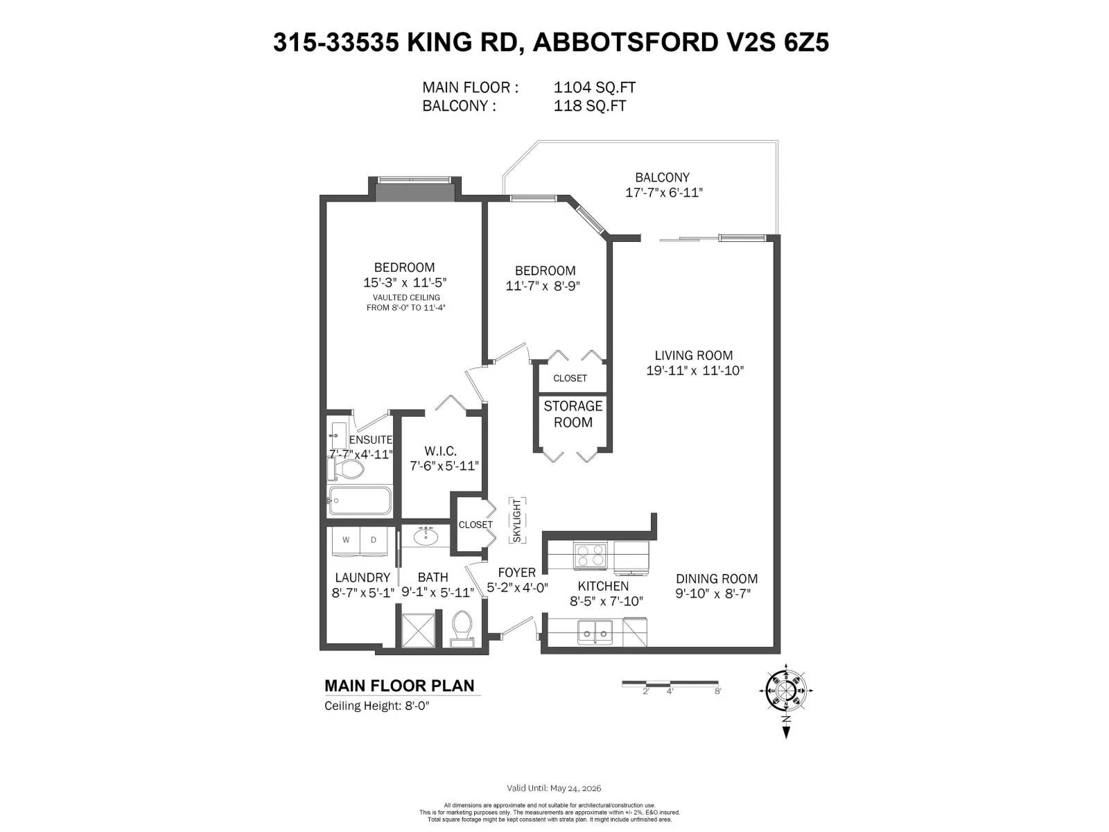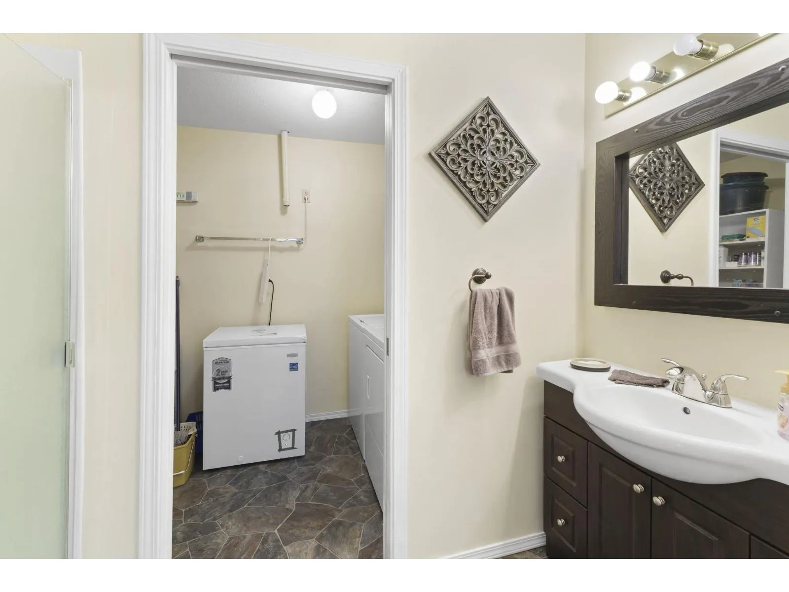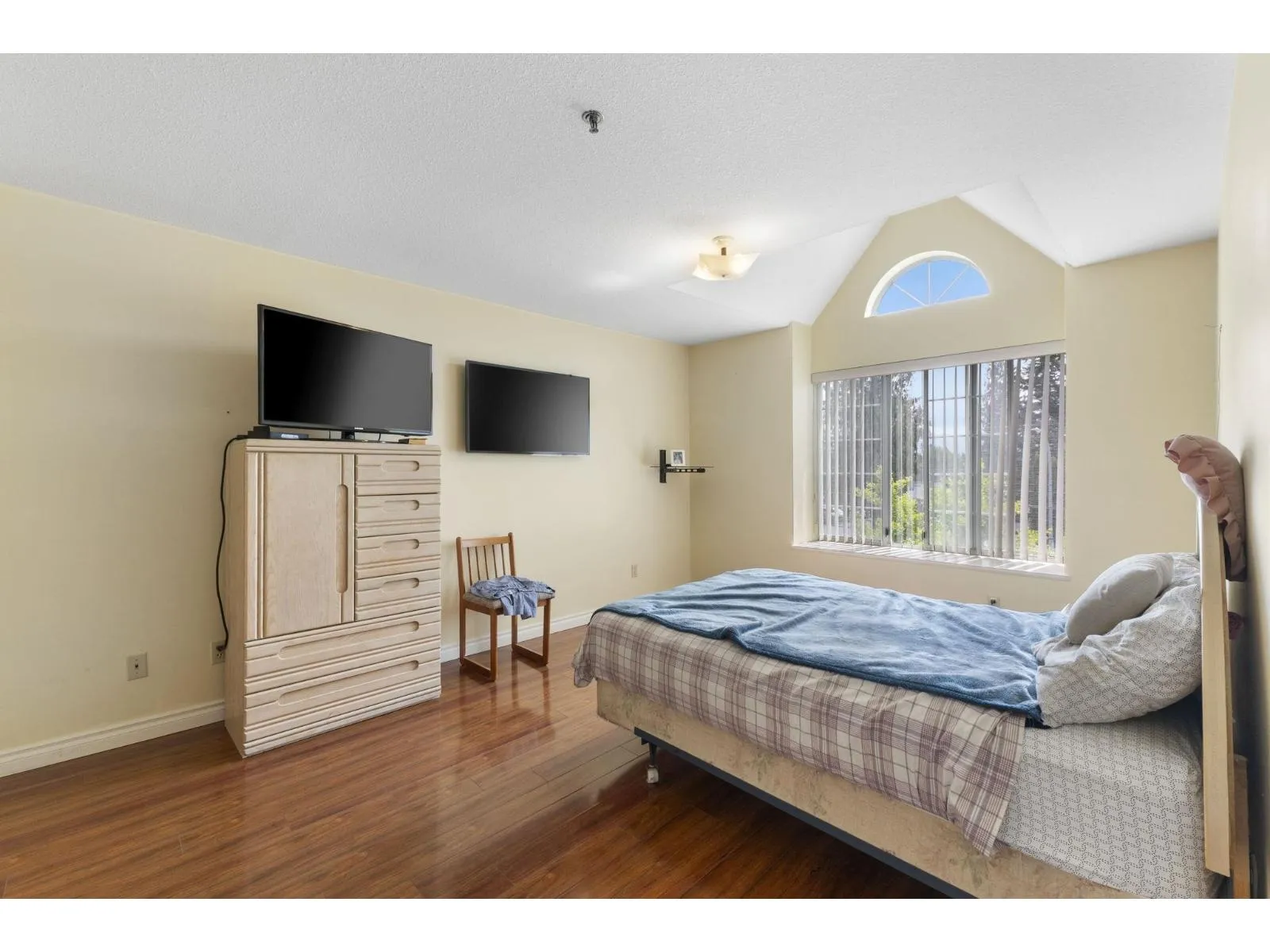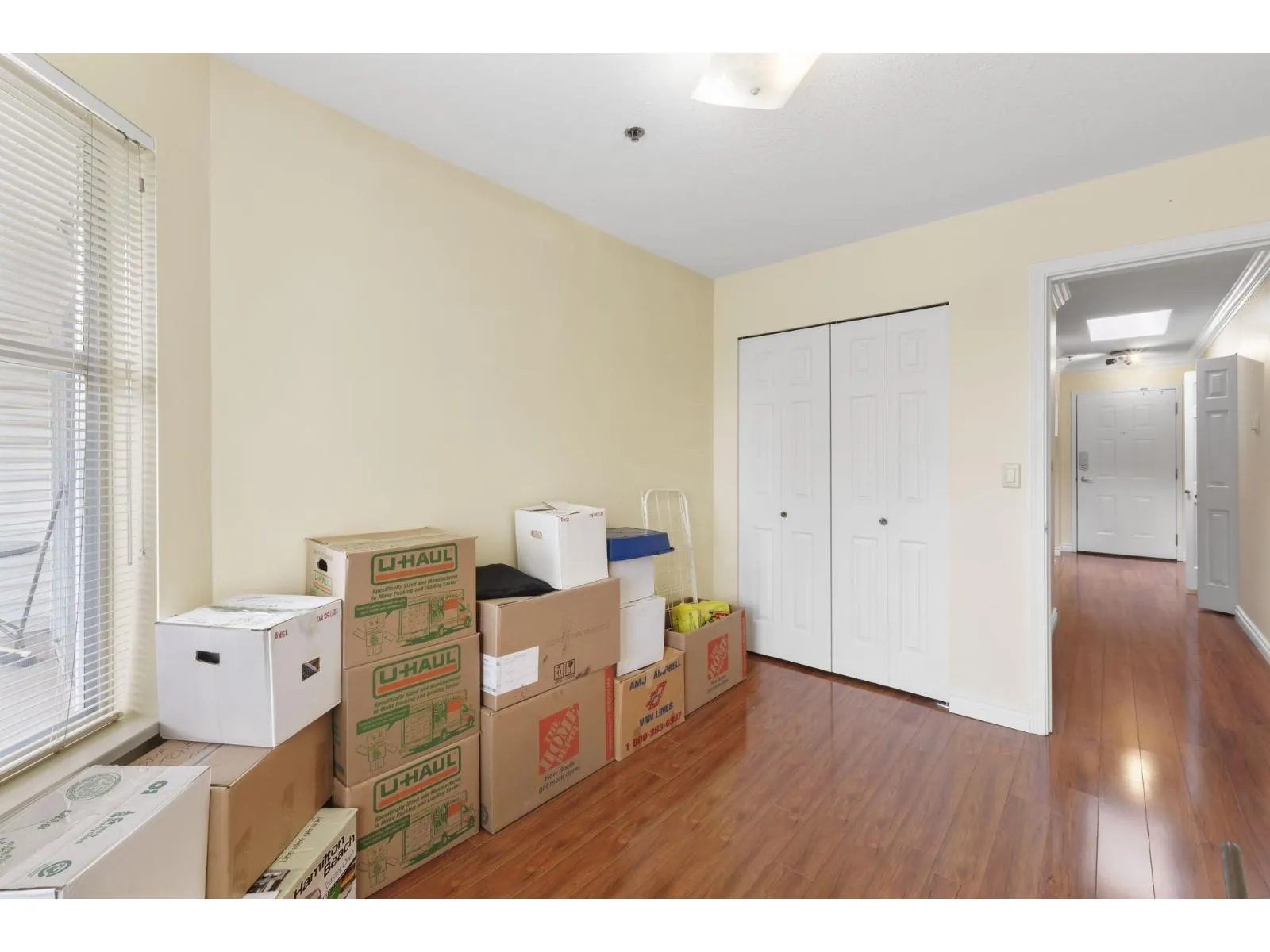 Top-floor charm in Central Heights Manor! This bright 2 bed, 2 bath condo welcomes you with a skylit foyer and stylish laminate floors throughout. Enjoy formal living and dining spaces with elegant crown moulding, rich draperies, and a cozy wall-mounted electric fireplace. Step into the sunny south-facing deck through sliding glass doors. The galley kitchen features sleek stainless steel appliances. Relax in the spacious primary bedroom with vaulted ceilings, walk-in closet, and 4-piece ensuite. The second bedroom is ideal as a guest room, office, or den. In-suite laundry with extra storage, 2 storage lockers, and a secure underground parking stall, and great amenities that include a gym, games room, workshop, art room, coffee area, guest suites, BBQ pit, and a community piano! (id:27476)