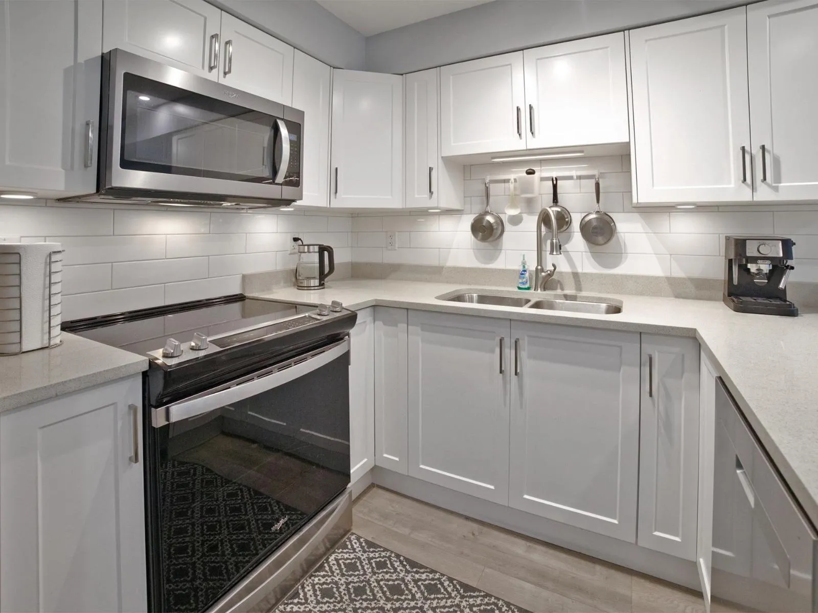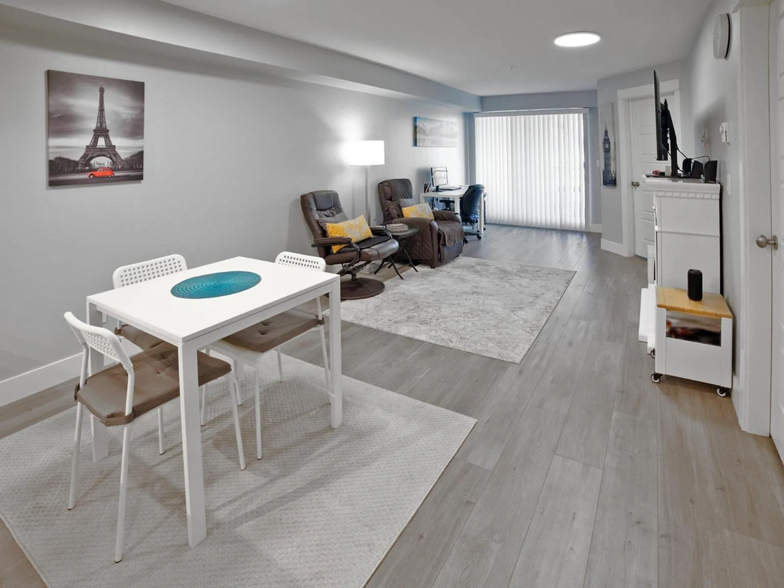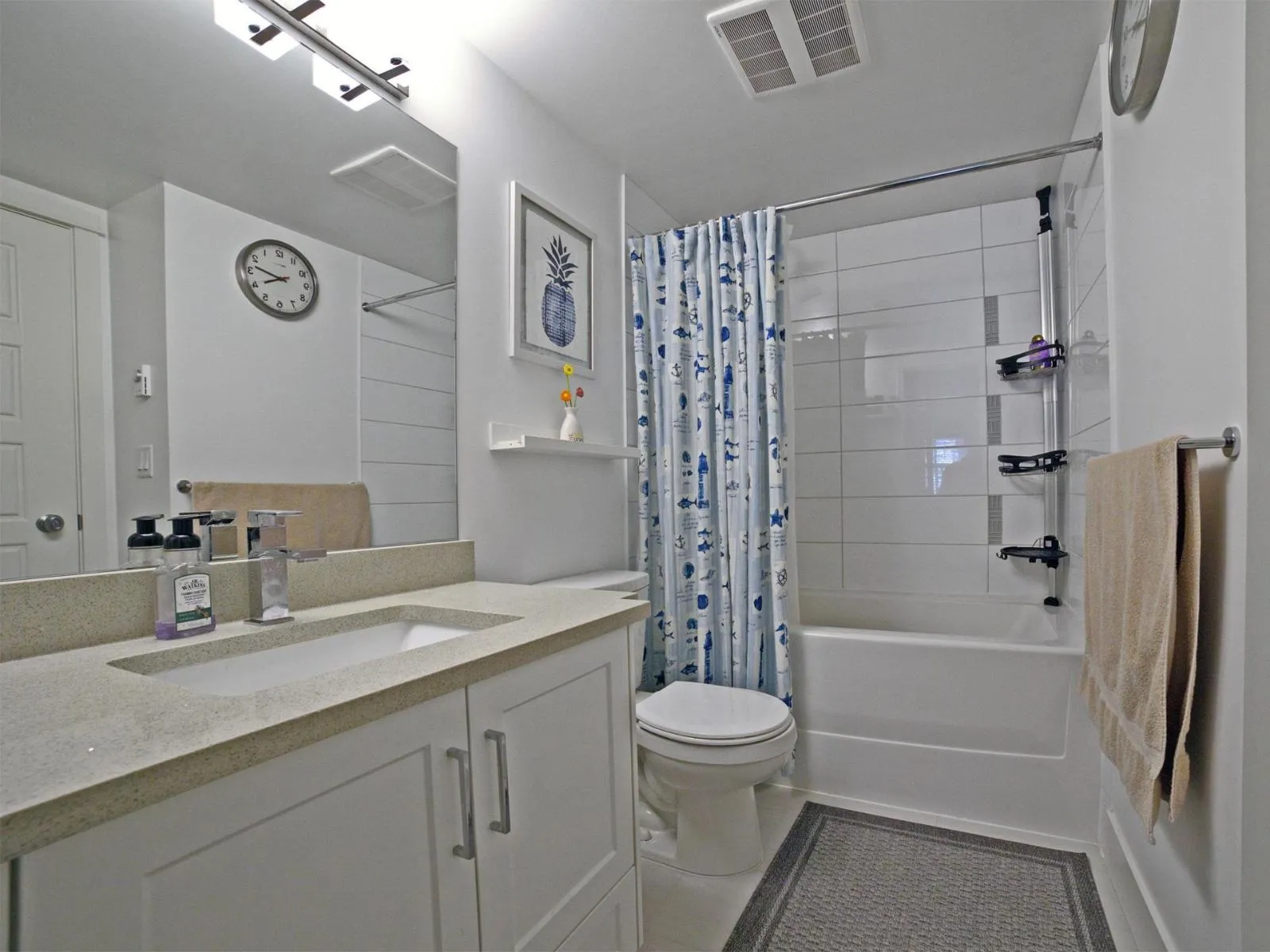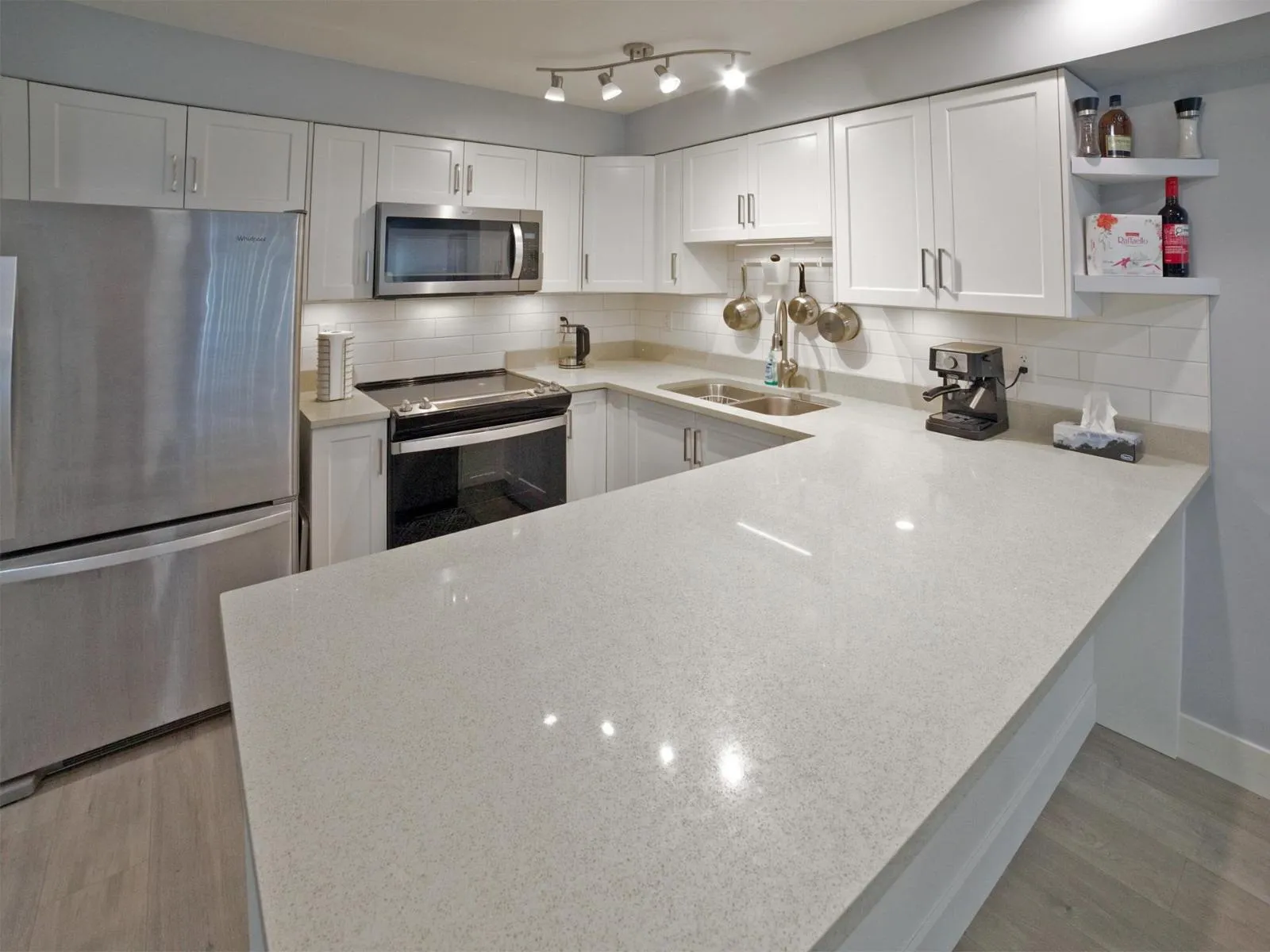 Beautiful Spotless like new 2 bdr 1 bath condo in popular neighbourhood of highly desirable Tamarind Westside. Thoughtfully updated both inside and out, offering open floor plan living space, seamlessly connected with the modern timeless white kitchen, upgraded S/S appliances, undercabinet lights, laminate flooring - ideal for everyday living and entertaining. In-suite laundry and covered front patio. Secured parking and storage-locker. Convenient location just short walk from High Street mall with restaurants & shops, minutes to Highway 1. Fantastic opportunity for first-time Buyer, investor or downsizer. (id:27476)