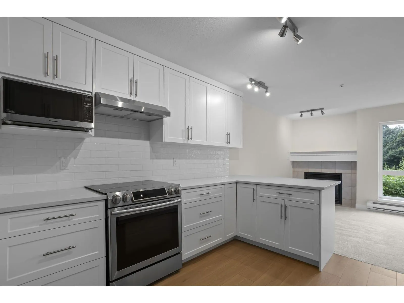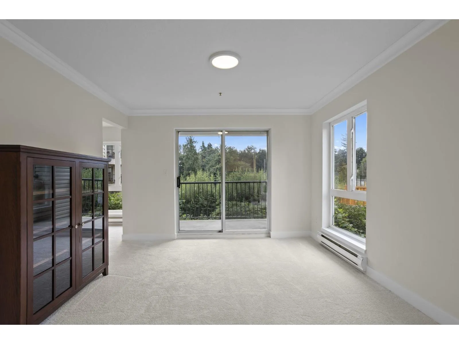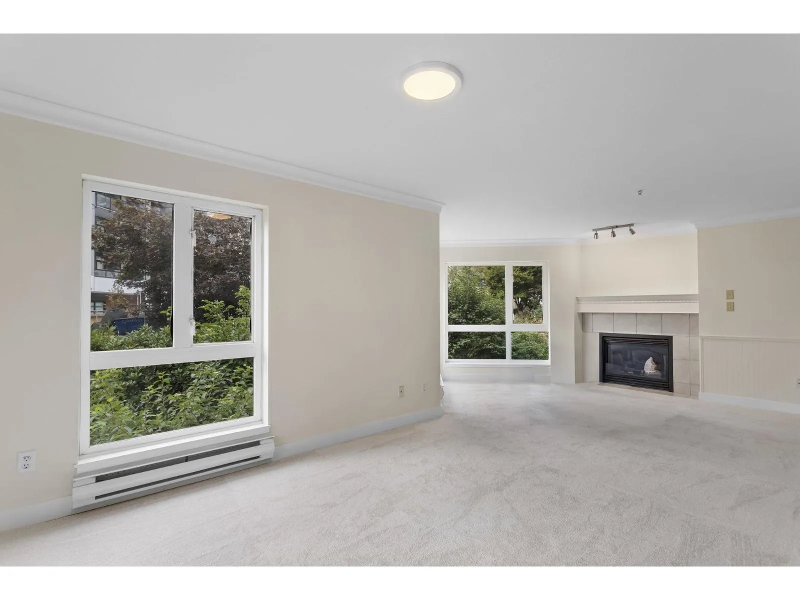 2 BED + DEN | 2 BATH | 1,384 SQ FT | RENOVATED | Welcome to Regency Park, a secure gated community featuring one of the largest condo layouts available - almost 1,400 sq. ft. of updated living space. Quietly positioned off Gladwin Road, this home offers both privacy and tranquility, perfect for morning coffee or evening BBQs. Recent renovations include a refreshed kitchen, new carpet, and fresh paint throughout. Inside, the spacious living area with 2 fireplaces flow seamlessly to a private patio overlooking peaceful green space. The oversized primary suite comes with a full ensuite, while the den offers flexibility for a home office, hobby room, or extra storage. Additional perks include a separate storage locker, and secure underground parking. Also enjoy the pool and hot tub here too! (id:27476)