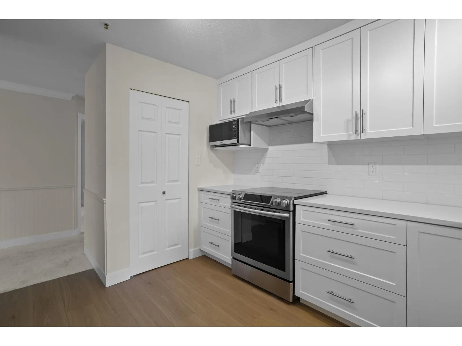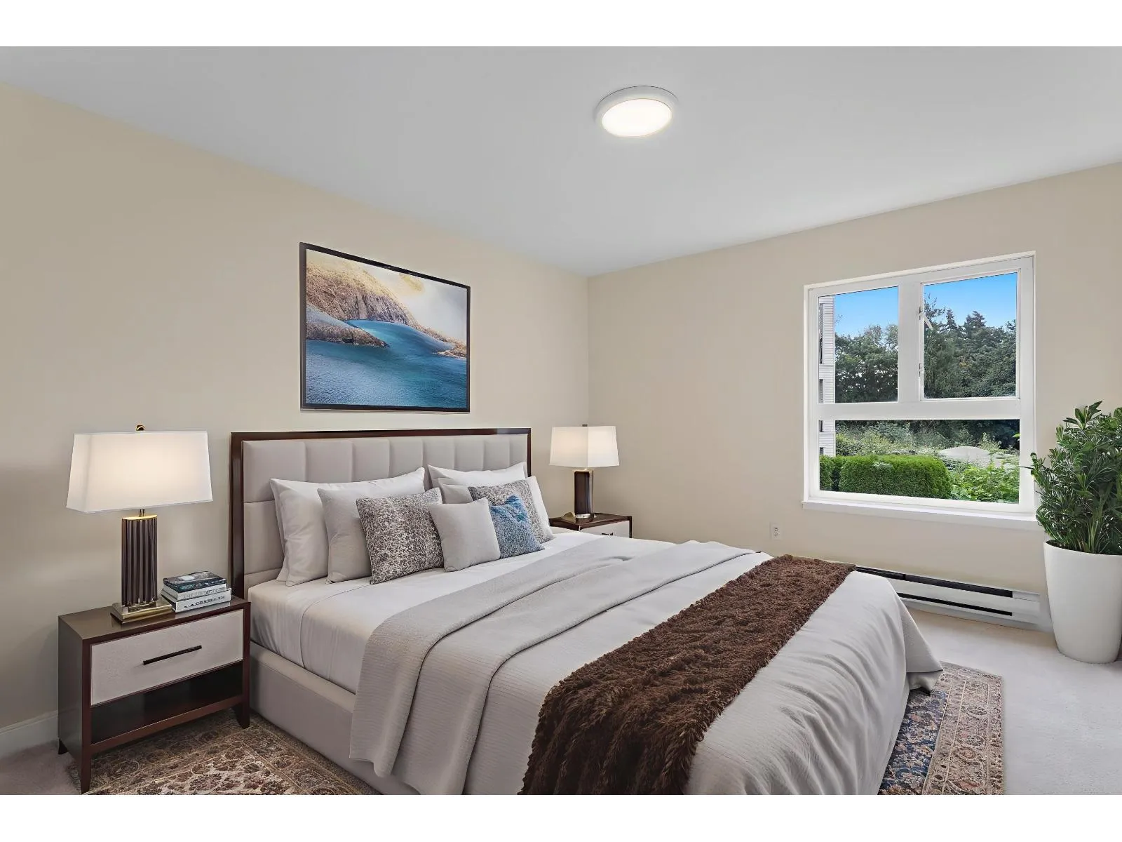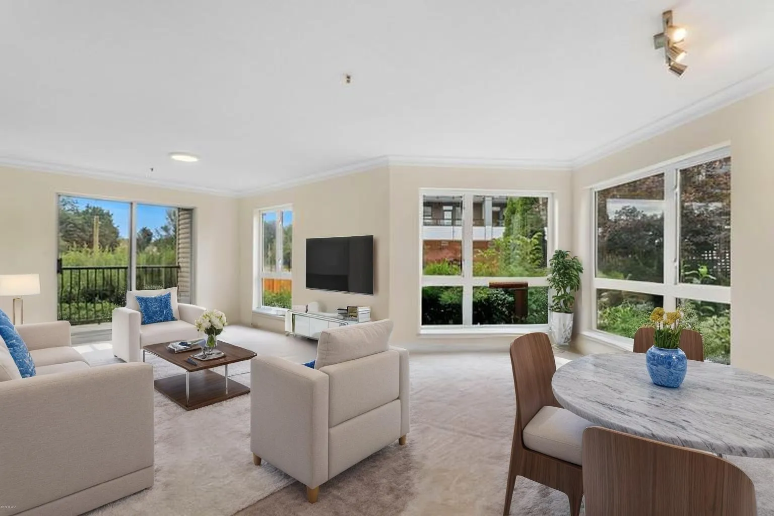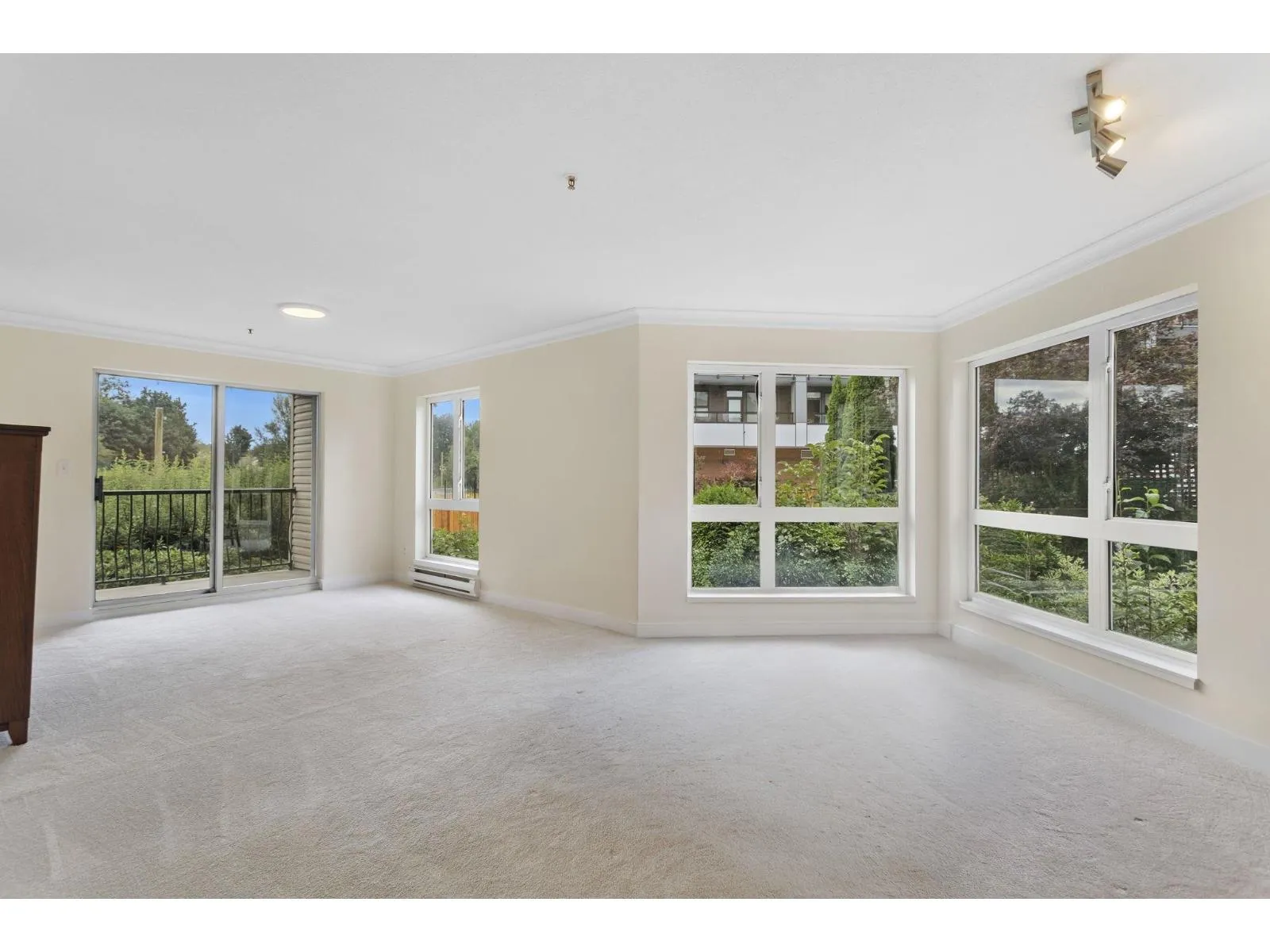 2 BED + DEN | 2 BATH | 1,384 SQ FT | RENOVATED | Welcome to Regency Park, a secure gated community featuring one of the largest condo layouts available - almost 1,400 sq. ft. of updated living space. Quietly positioned off Gladwin Road, this home offers both privacy and tranquility, perfect for morning coffee or evening BBQs. Recent renovations include a refreshed kitchen, new carpet, and fresh paint throughout. Inside, the spacious living area with 2 fireplaces flow seamlessly to a private patio overlooking peaceful green space. The oversized primary suite comes with a full ensuite, while the den offers flexibility for a home office, hobby room, or extra storage. Additional perks include a separate storage locker, and secure underground parking. Also enjoy the pool and hot tub here too! (id:27476)