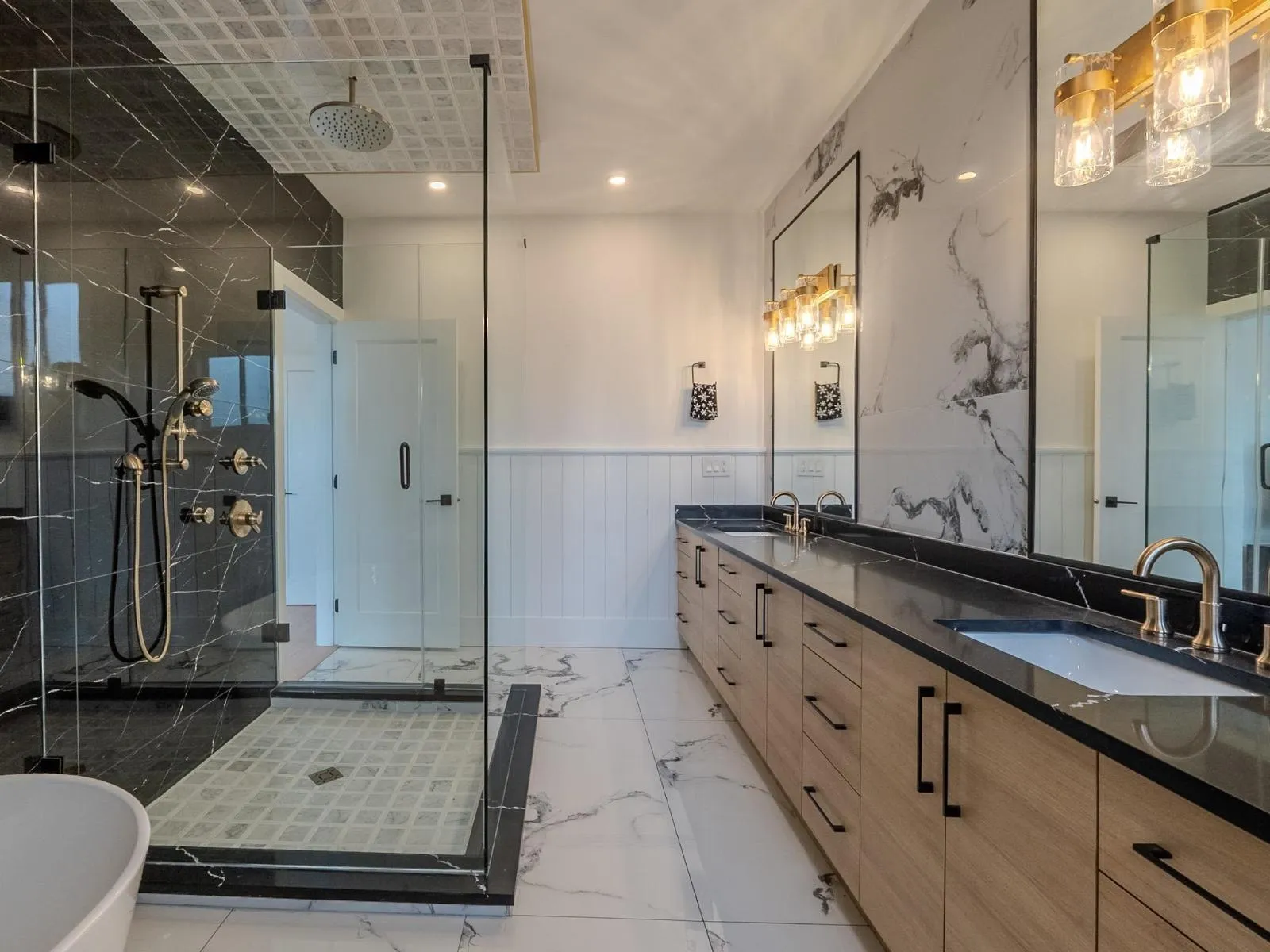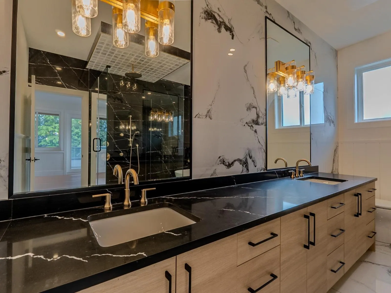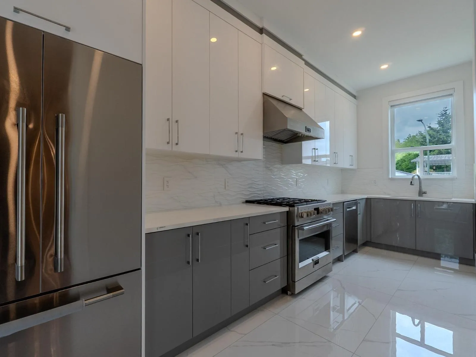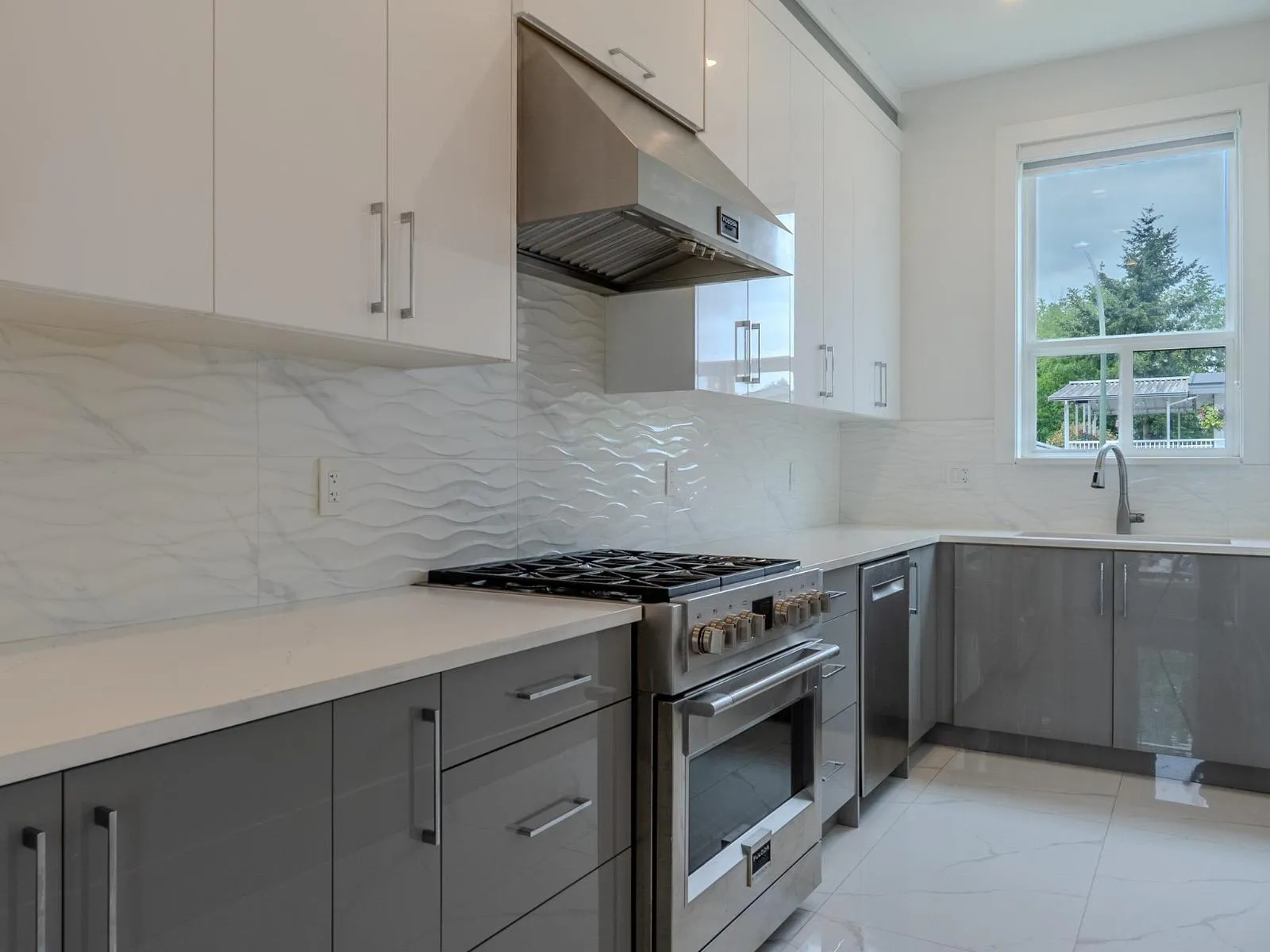 Zen & Luxury meet in this stunning East Abby Home. Large 5100+ sq ft home over 3 levels. Featuring High ceilings, open and tastefully designed layout with quality construction. Warm and sleek colour design flows effortlessly throughout. The Main opens to the living room, a feature wall separates the formal dining and expands to the contemporary Chefs + Wok kitchen's. There's an office for the hustlers in the family, large Primary Bedroom with full ensuite (maybe for the grandparents), large windows throughout offer an abundance of natural sunlight. Upstairs has 3 bedrooms (2 that are Primary's with ensuite and Juliet balconies), and laundry room. Downstairs you have a Rec room for Upstairs use, storage, utility room, and a laundry room for the 2 Suites (2+1). Large Corner Lot. (id:27476)