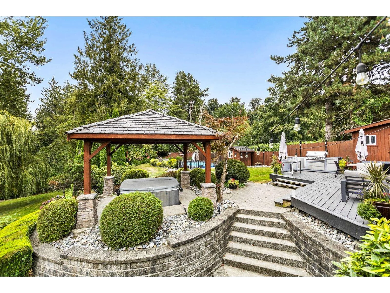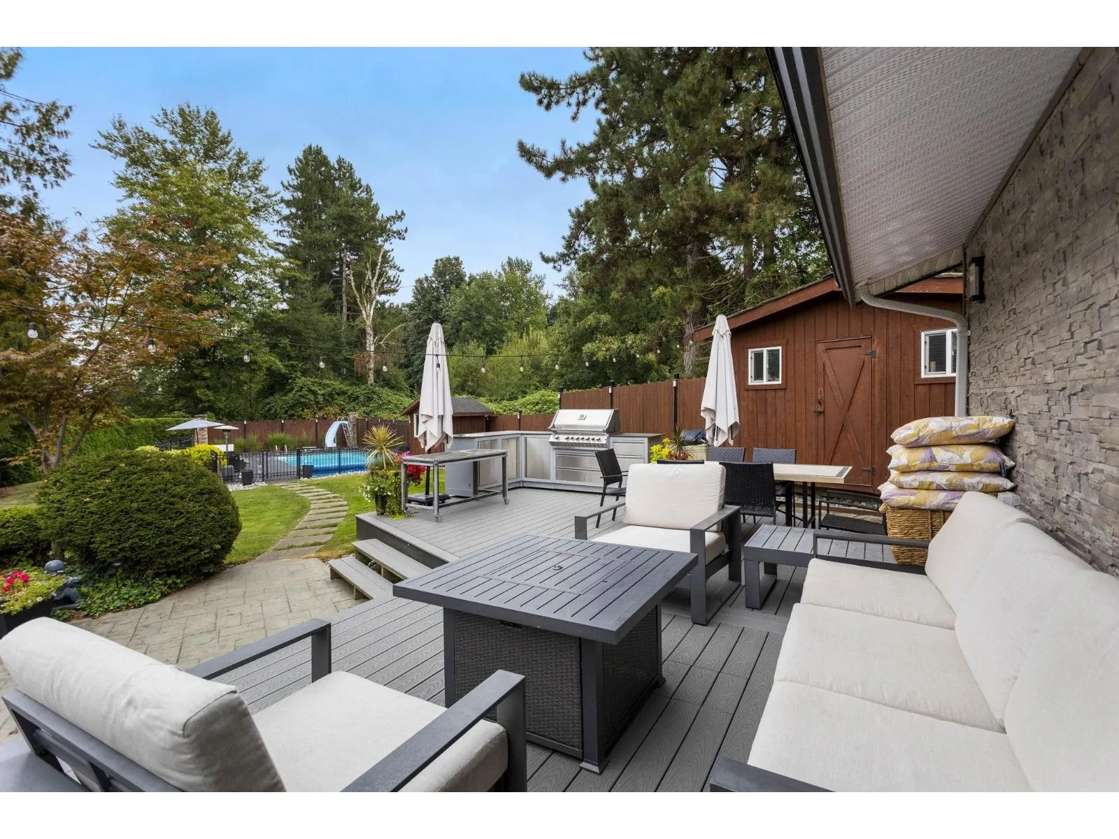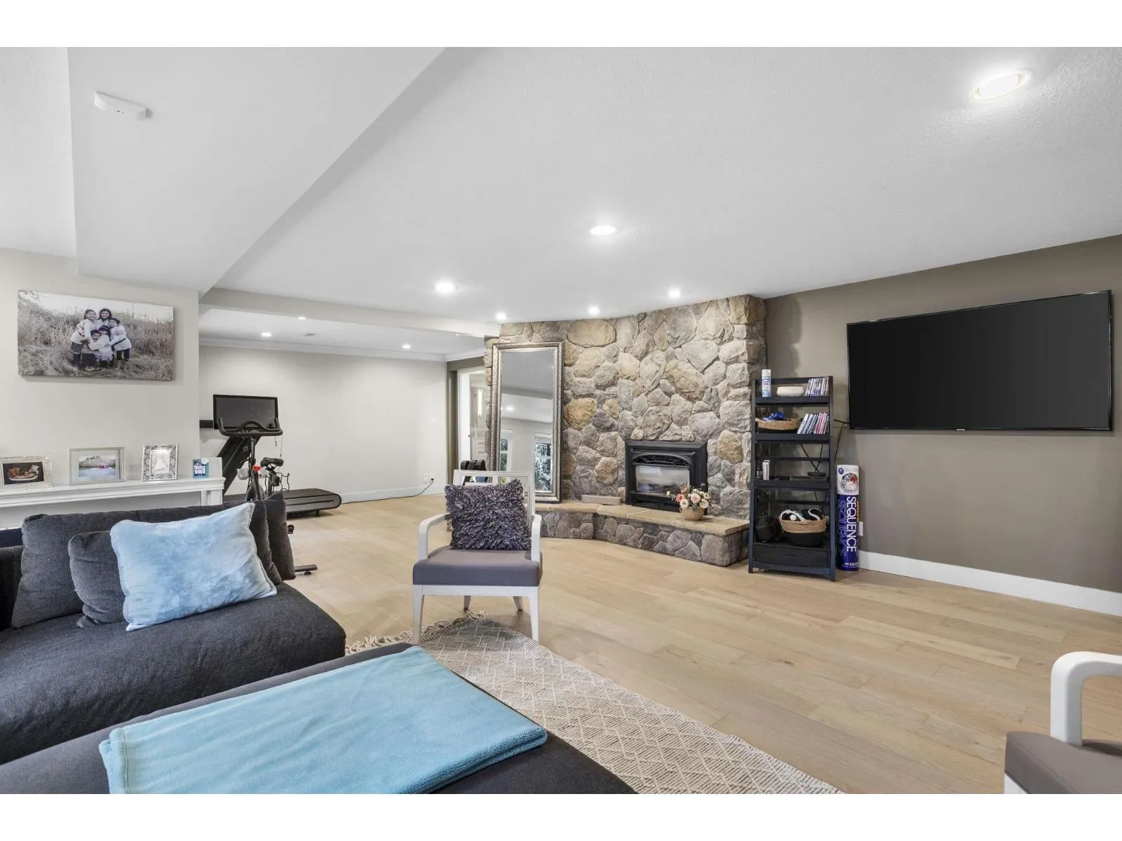 Entertainers look no further! Fully renovated Rancher with Basement on a desirable dead end road. Homes rarely come up for sale on this street. Open concept living boasting expansive & oversized windows in the living room, double sided fireplace upon entry, bright white kitchen with quartz countertops and S/S appliances, 3 bedrooms upstairs with the Primary Bedroom boasting a 5 piece spa ensuite bathroom with WIC and a seperate deck. Basement offers a spacious recreation room, 2 large bedrooms and third room perfect for crafts and hobbies. Sliding door out to the walk out patio. Wine cellar, AC, double garage with 2x EV chargers, mud room with laundry & plenty of storage throughout. Stunning backyard with a massive deck overlooking the yard, securely enclosed saltwater pool, a covered hot tub under a gazebo, along with 2 sheds. Seperate parking down below where yoou can park your 2 trucks also! Close to town and all its amenities but also tucked away where you can enjoy the peace and quiet. Rare to replicate! (id:27476)