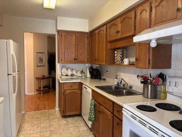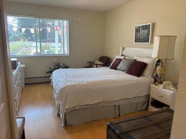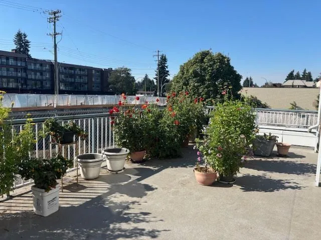 PARKVIEW PLACE.....Centrally located in a cul-de-sac close to the freeway, shopping, recreation and public transport. This spacious condo has a 579 sq.ft patio deck with southern exposure to enjoy gardening or sunbathing. Bright corner unit with loads of windows. It is mostly in original condition but with some updating could be a beautiful home to enjoy. The building is well maintained, 55 plus, not pets, no smoking. Hot water heat is included in your strata fee. Easy to show. (id:27476)