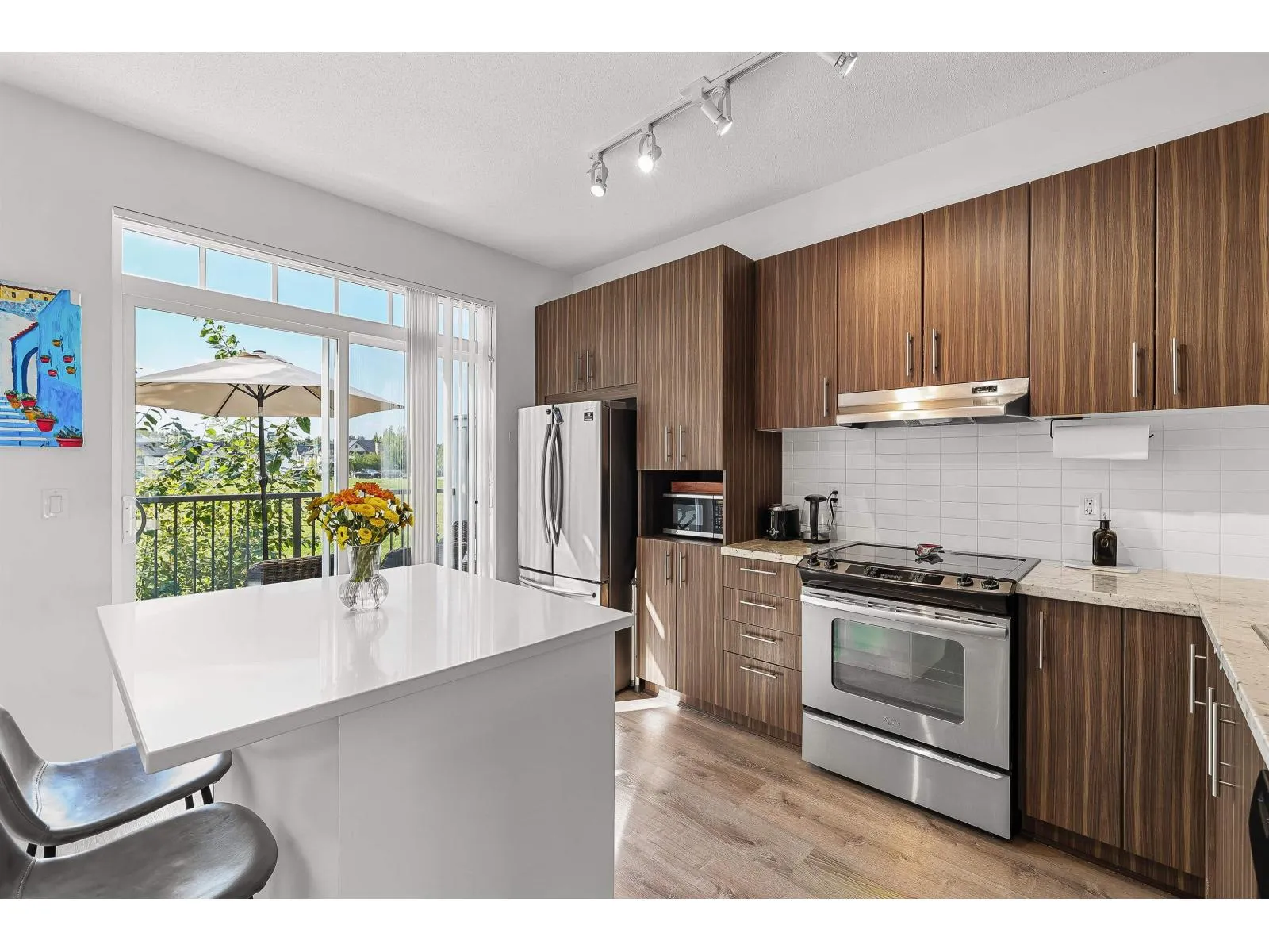 Welcome home to Harvest at Westerleigh by Polygon! This 3bdrm, 2bath townhome combines modern comfort with family-friendly living in a master-planned community featuring award-winning amenities like a pool, lounge, hockey rink, theatre room and more. Inside, you'll love the open-concept main floor with laminate flooring & thoughtful upgrades. A custom fireplace surround creates a warm focal point in the living area, while the full kitchen island & added shelving & cabinetry offer style and extra storage. Upstairs are three generously sized bedrooms, perfect for families or guests. One of this home's most unique features is its location backing onto the future Westridge Park, giving you extra privacy & an exciting recreational space just beyond your door. (id:27476)