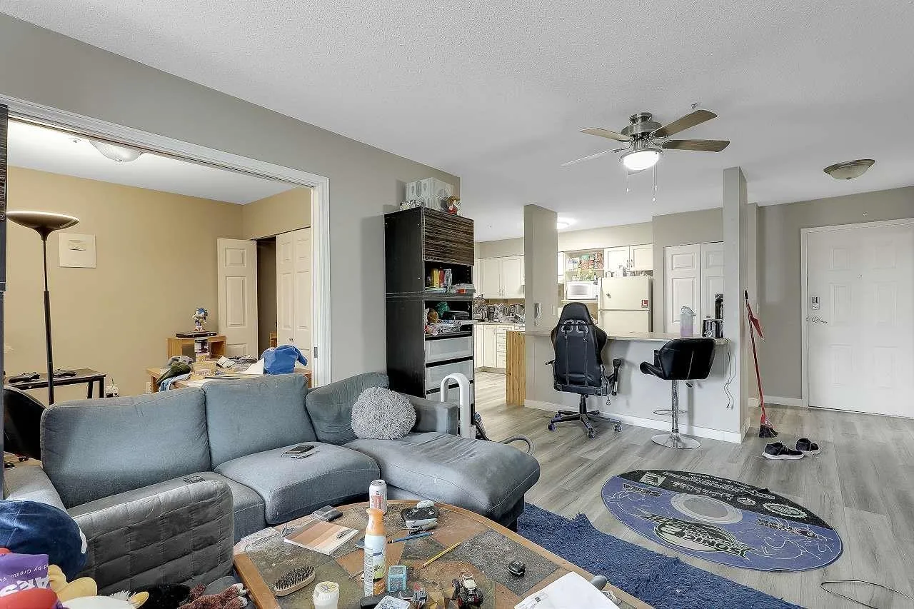 The Seasons - Court Ordered Sale - Spacious 2 bedroom and 1 full bathroom home, boasting over 900 sq. ft. of living space. Located on upper floor with mountain and downtown city views. This unit features updated kitchen with white shaker cabinetry and lage island with loads of storage. Large master will fit king size bed and large furniture. Heat and Hot-Water is included in maintenance fee. 1 underground parking with additional open stall included, plus 1 storage locker. Owner occupied. Sold on a "As is Where is basis only" Located close to everything Abby. Located in Building # 1. New photos's and floor plan coming later this week (id:27476)