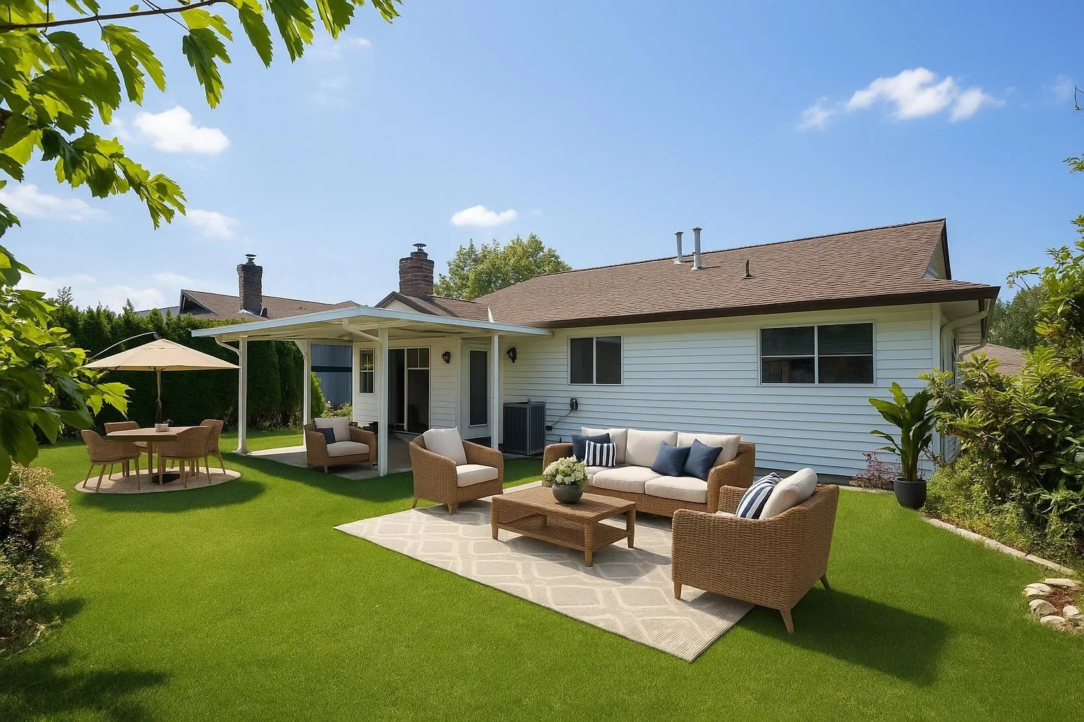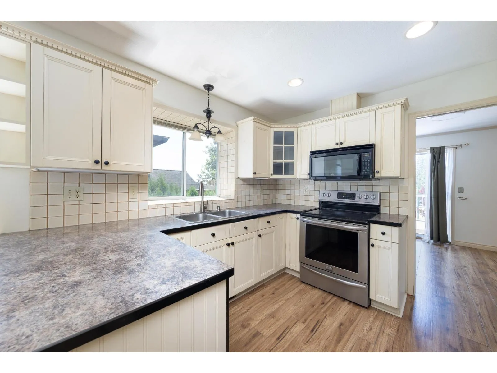 Beautifully updated 4 bdrm, 3 bathrm home located in the highly sought-after Everett Estates. From the living room, kitchen & primary bdrm, enjoy stunning west-facing views. Spacious two-level layout includes a lrg rec room, bdrm & full bath downstairs-perfect for a potential rental suite. Updates include carpet replaced w/laminate flooring, giving the home a modern touch. Step outside to the landscaped bkyrd, complete w/raised gazebo ideal for relaxing summer evenings. Central air conditioning ensures year-round comfort, while the dble garage & RV prKg provide added convenience. This quiet location is just minutes from top schools such as McMillan Elementary & Yale Secondary, as well as shopping & highway access. Book your showing today! (id:27476)