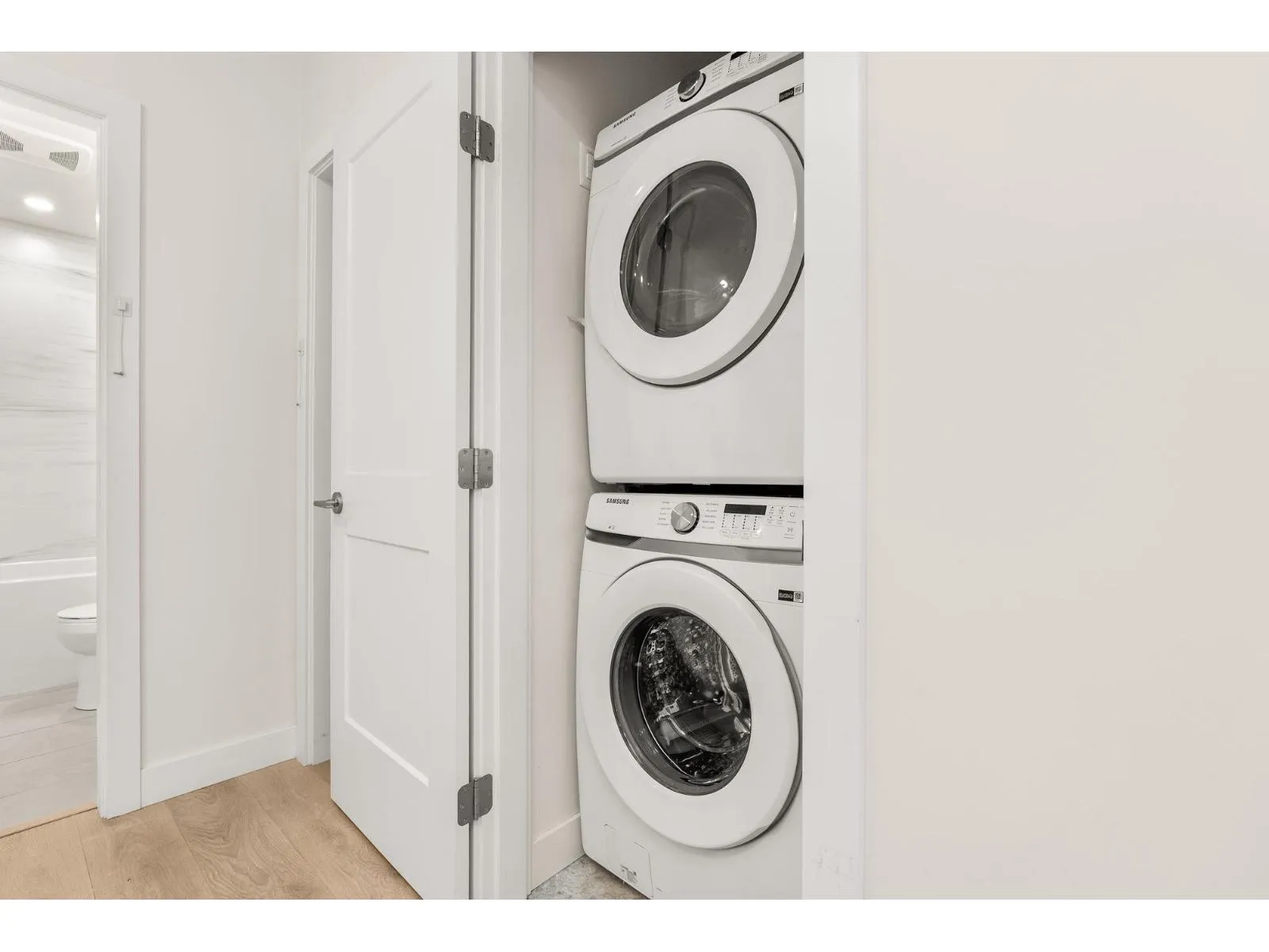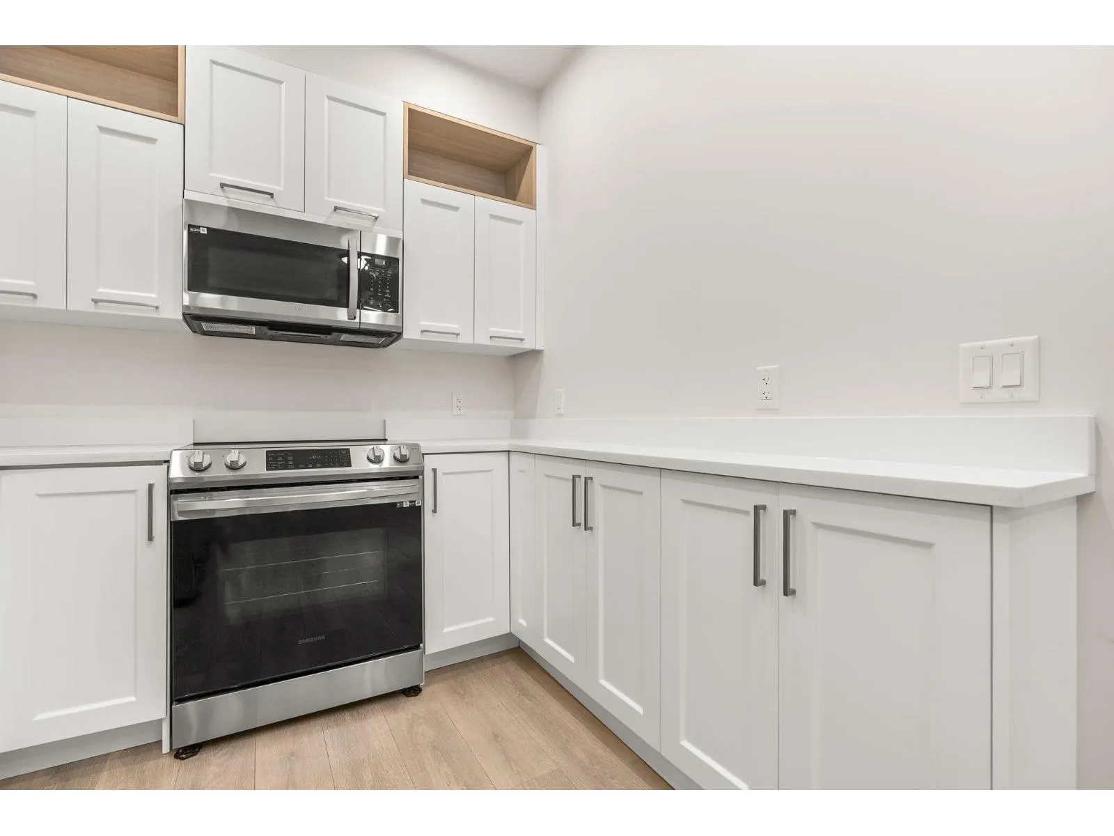 **ATTN' INVESTORS & FIRST TIME HOME BUYERS** Welcome to Unity, located in one of Abbotsford's fastest-growing communities! This MOVE IN READY unit is 2bed/2 bath w/a spacious, open concept interior designed to compliment everyday living by combing modern trends w/the traditional comforts of a home. It features beautiful almond creme colored flooring & a traditional kitchen design. It also features 9ft ceiling, quartz countertops & high efficiency stainless steel appliances. Located in the UDistrict is only a few mins walk to UFV, Abbotsford Sport & Entertainment Centre, shops, cafes, restaurants & a quick drive to the #1 Hwy. Top it all off this unit has 2 parking stalls and an outdoor patio! (id:27476)