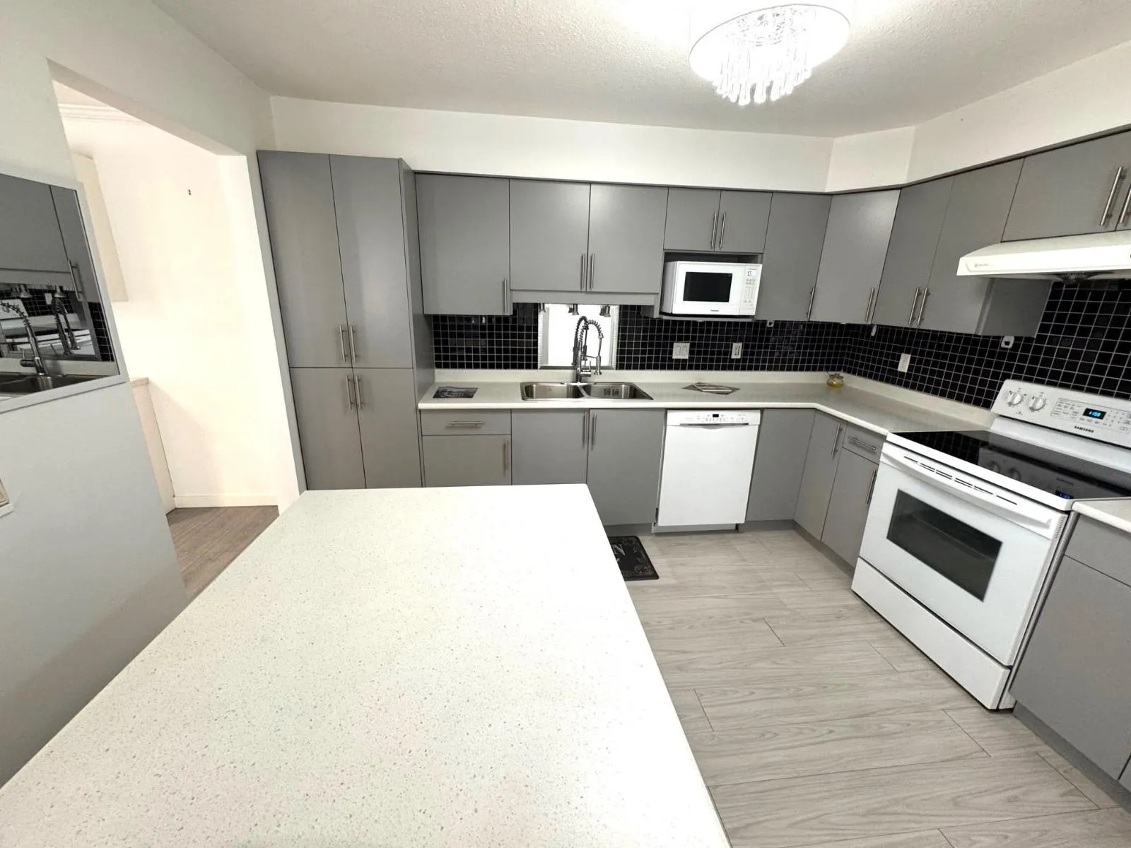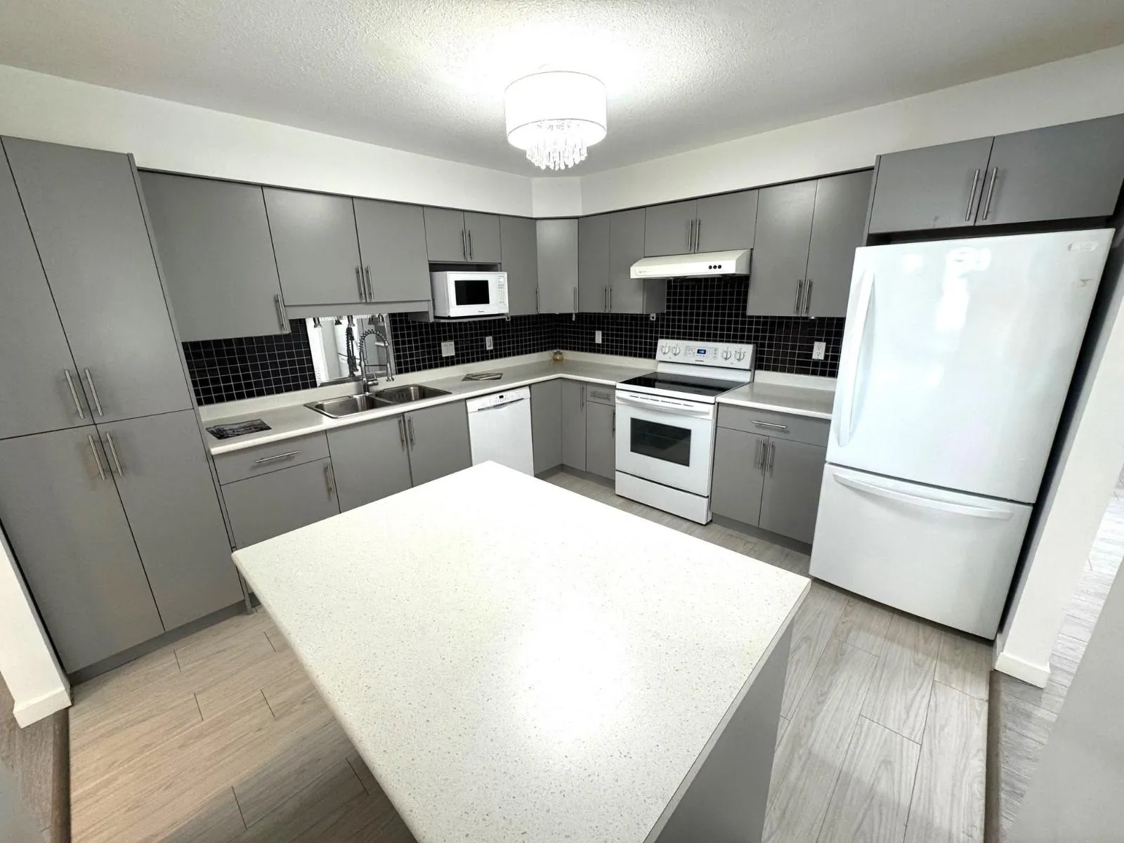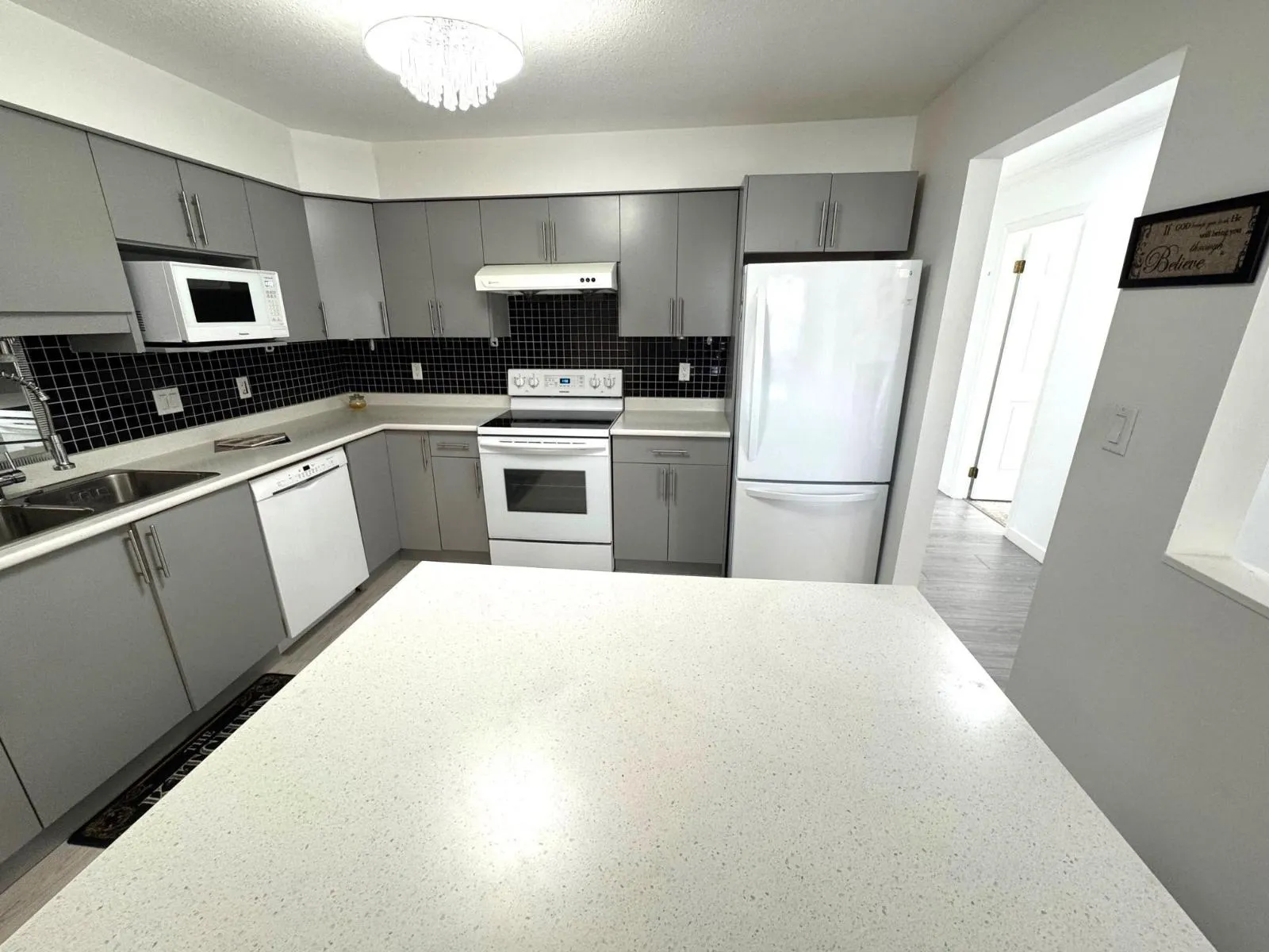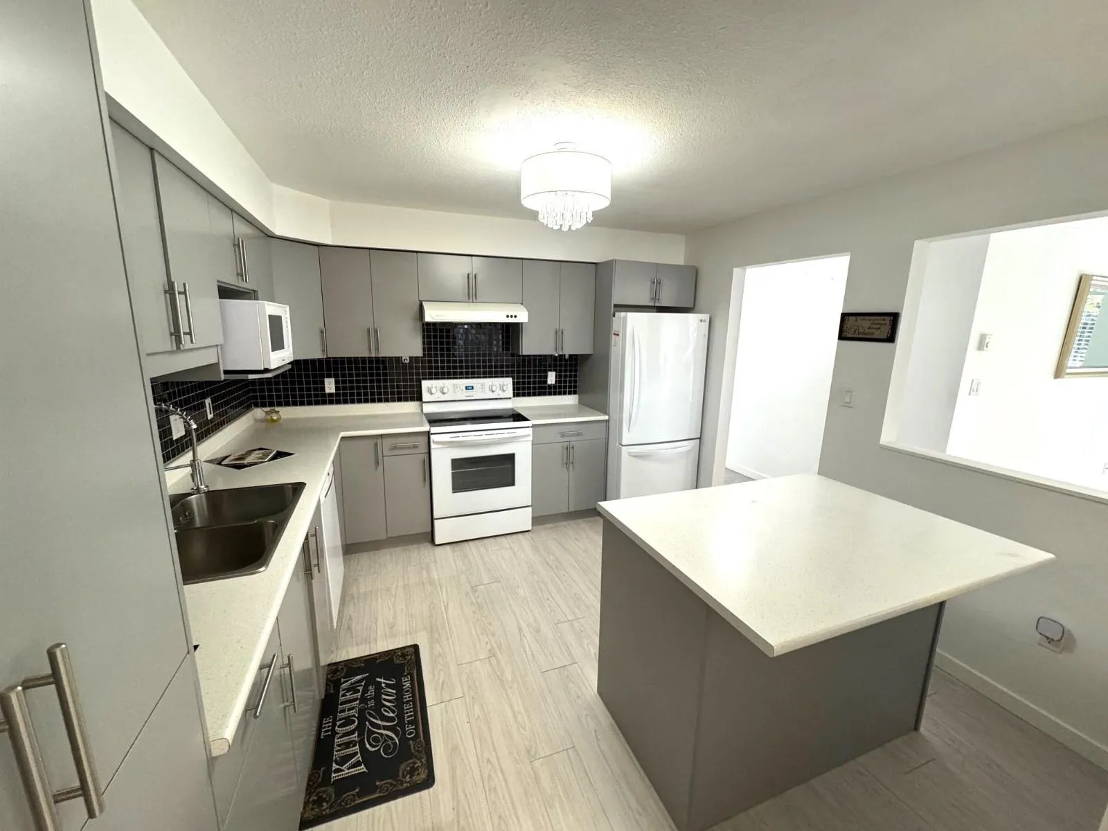 Move in ready fully renovated corner unit at Tiffany Park! This stunning 1217 sq. ft. 2 bed, 2 bath home has a great layout with generous sized rooms and tons of storage space. Tastefully updated featuring a new gourmet kitchen with island, new appliances, new flooring, new light fixtures, updated bathrooms. Being a corner unit you get lots of additional windows which provide great natural light . Situated on the quiet side of the building. This 55+ adult oriented complex is centrally located, walking distance to shopping, restaurants, parks, recreation & a short walk to Mill Lake. 1 underground parking stall included, pets are not allowed. Bonus: Heat, hot water, gas & electricity are included in the Strata fee! (id:27476)