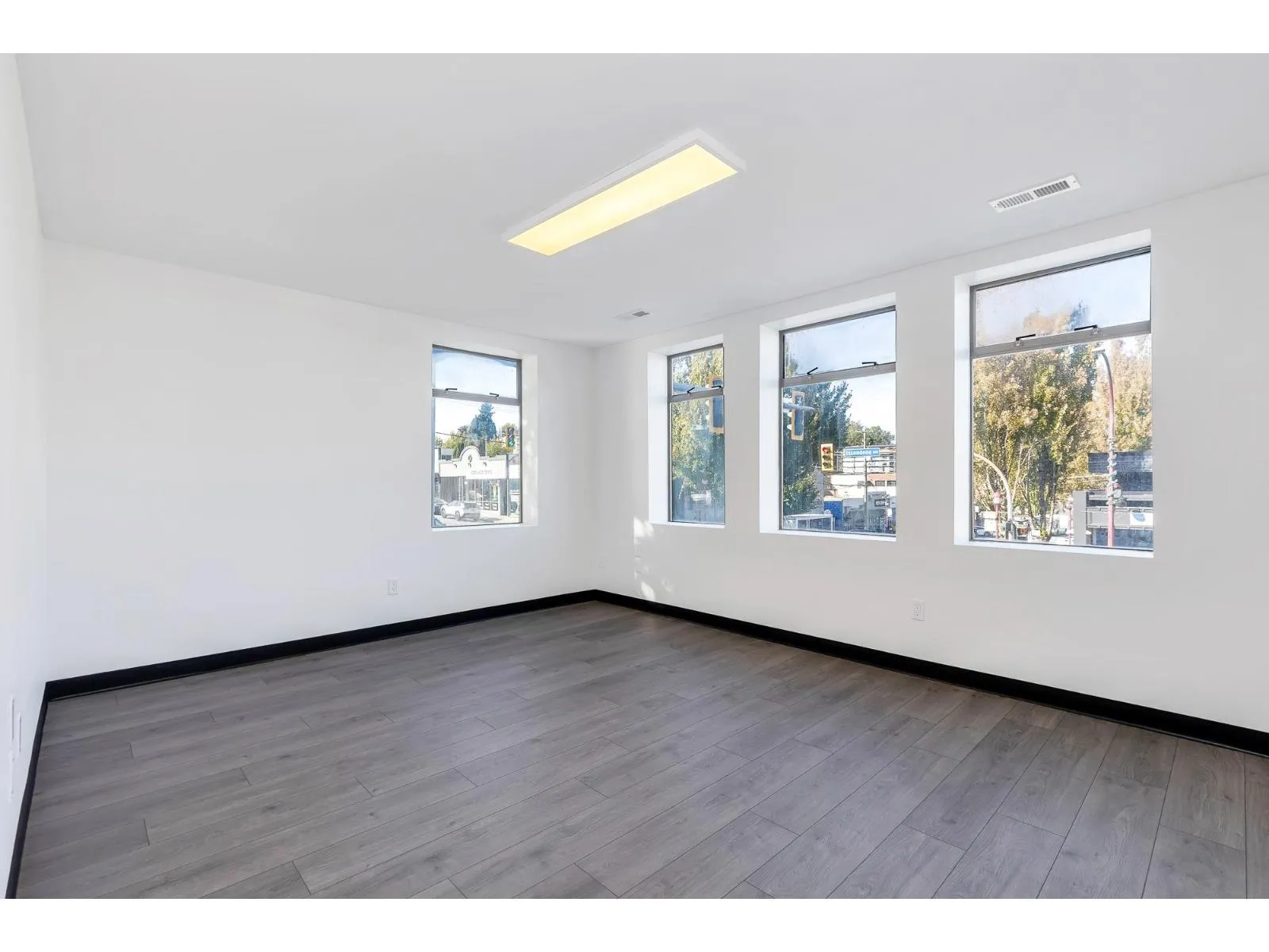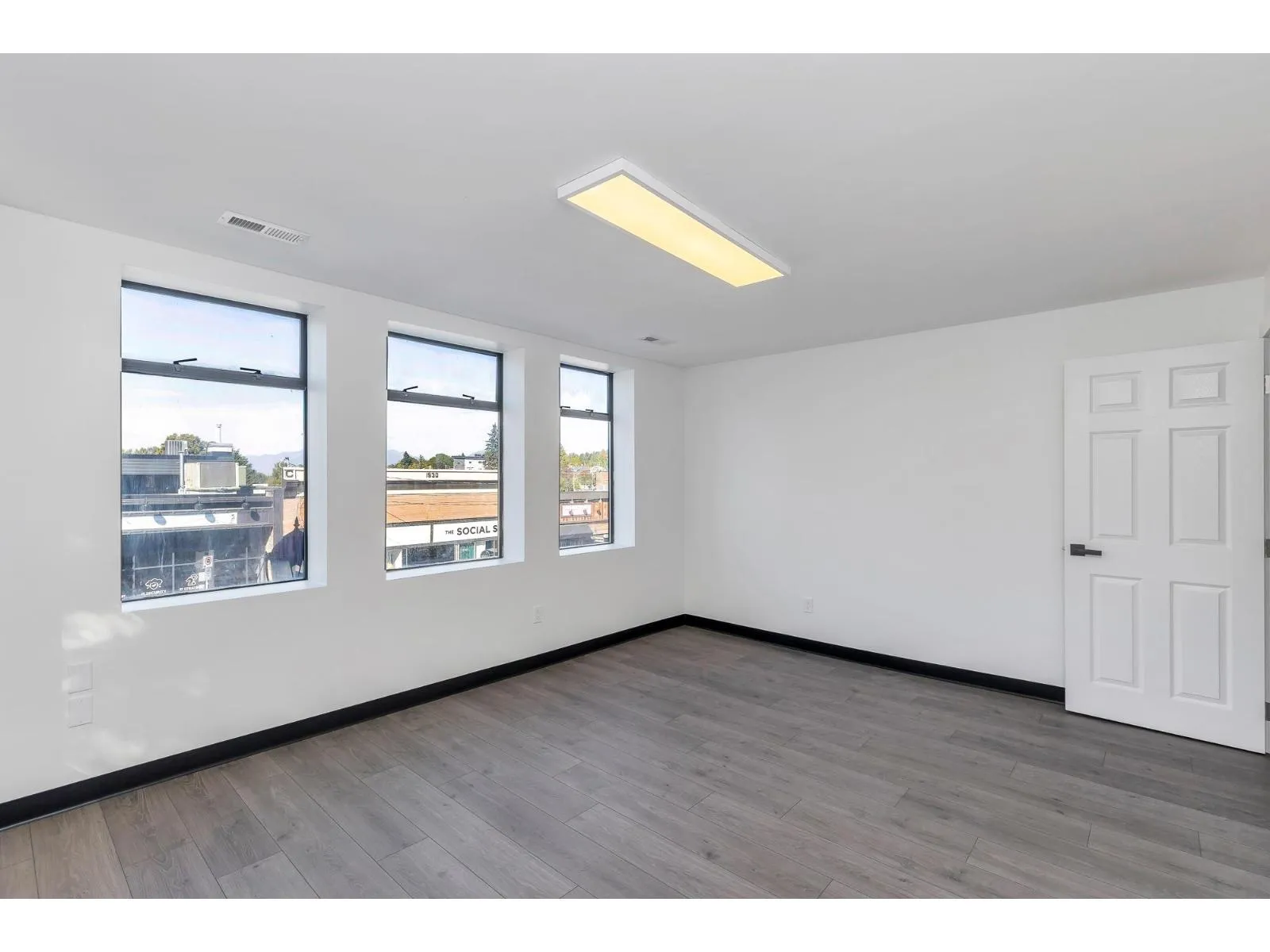 An attractive and functional second-floor office space ideally situated on one of Downtown Abbotsford's most active corners. With ±861 square feet of professionally renovated workspace, this unit is an exceptional opportunity for businesses seeking a move-in-ready environment in a walkable, high-visibility location. Located above street-level retail, this walk-up office suite offers both privacy and prominence. A perfect match for professionals, creatives, consultants, or small teams, the suite is designed to maximize efficiency, comfort, and natural light. Nestled in the vibrant Downtown Abbotsford core, Unit 200 enjoys excellent access to nearby cafes, restaurants, boutique retail, and professional services. Montrose Avenue is a pedestrian-friendly street known for its heritage character and urban renewal. -Transit accessible with bus routes within steps -Public and street parking available nearby -Surrounded by growing residential density (id:27476)