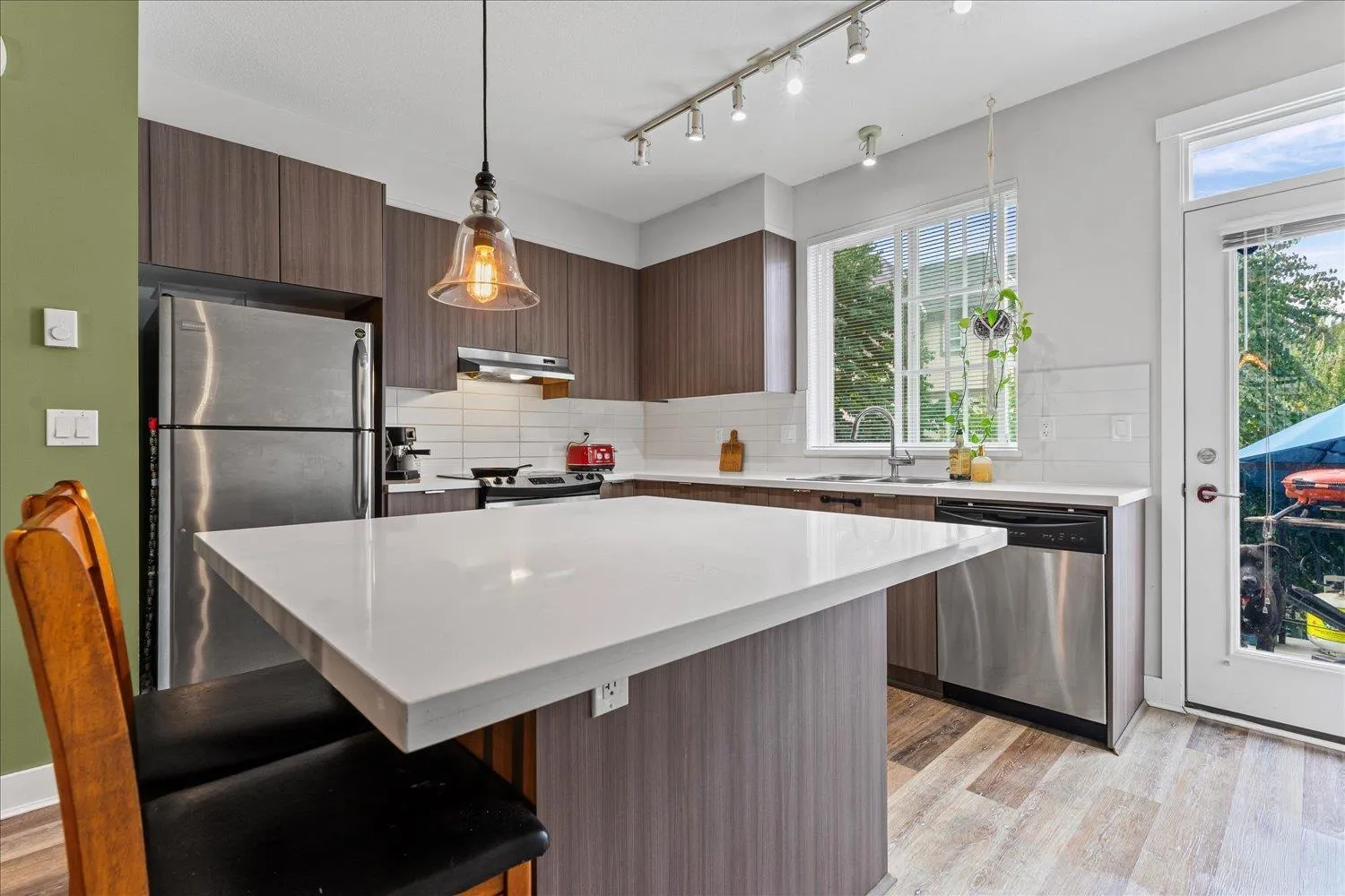 This Brighton townhome offers updates throughout, including brand new flooring and lots of fresh paint that gives the space an open, welcoming feel. The kitchen flows into a spacious dining and living area complete with beautiful feature wall. Enjoy the west facing patio for BBQ'ing of soaking up sunsets. Upstairs you'll find 2 huge bedrooms, one with a 4 piece ensuite with walk-in shower, as well laundry and a second 4 piece bathroom. The double tandem garage offers plenty of storage and opens to a fully fenced backyard. This unit has an additional parking stall in front of the garage door. This complex offers exclusive access to Club West's 8,400+ sq ft of resort-style amenities, including an outdoor pool, hot tub, fireside lounge, games room, and more! (id:27476)