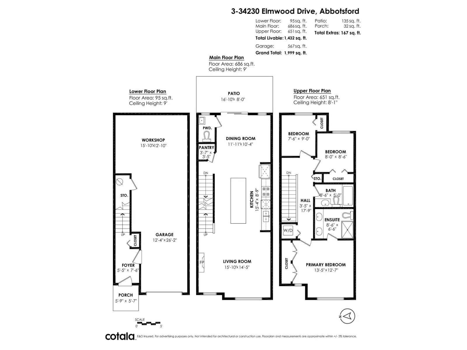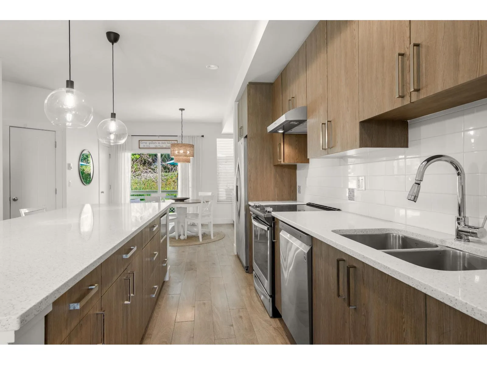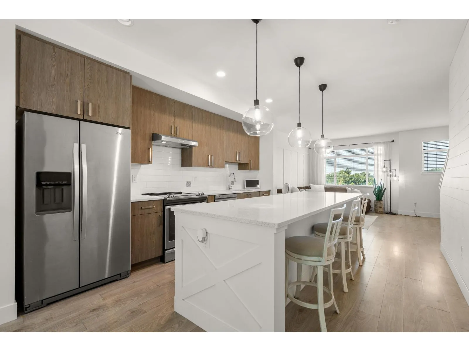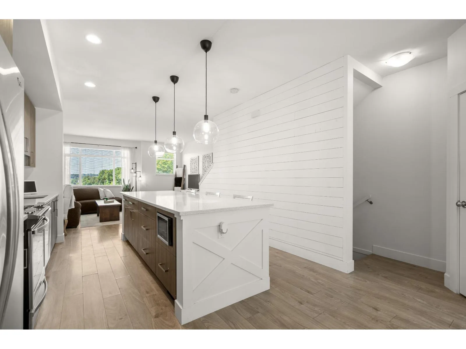 Modern 3-storey townhome is located in East Abbotsford's highly sought after Ten Oaks Development by Pacific Hills. Bright, light & fresh with a spacious Open Floorplan, high ceilings, & unobstructed views from the living room & massive kitchen island. The top level has all 3 bedrooms, making sure you have enough room for the whole family; a MUST in this SUPER Family Friendly complex! Walk out of your dining room, and enjoy evening BBQs in your semi-private backyard with a grassed area for kids & pets to utilize safely. Out front is your Driveway, and a Double Tandem Garage that can be partially converted to be a workshop, flex-room, or workout area. All this ONLY minutes from shopping and all 3-levels of school. LOW Strata Fees! (id:27476)