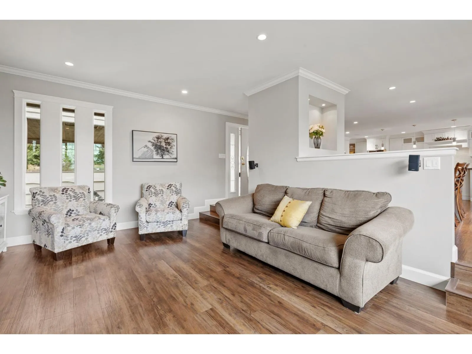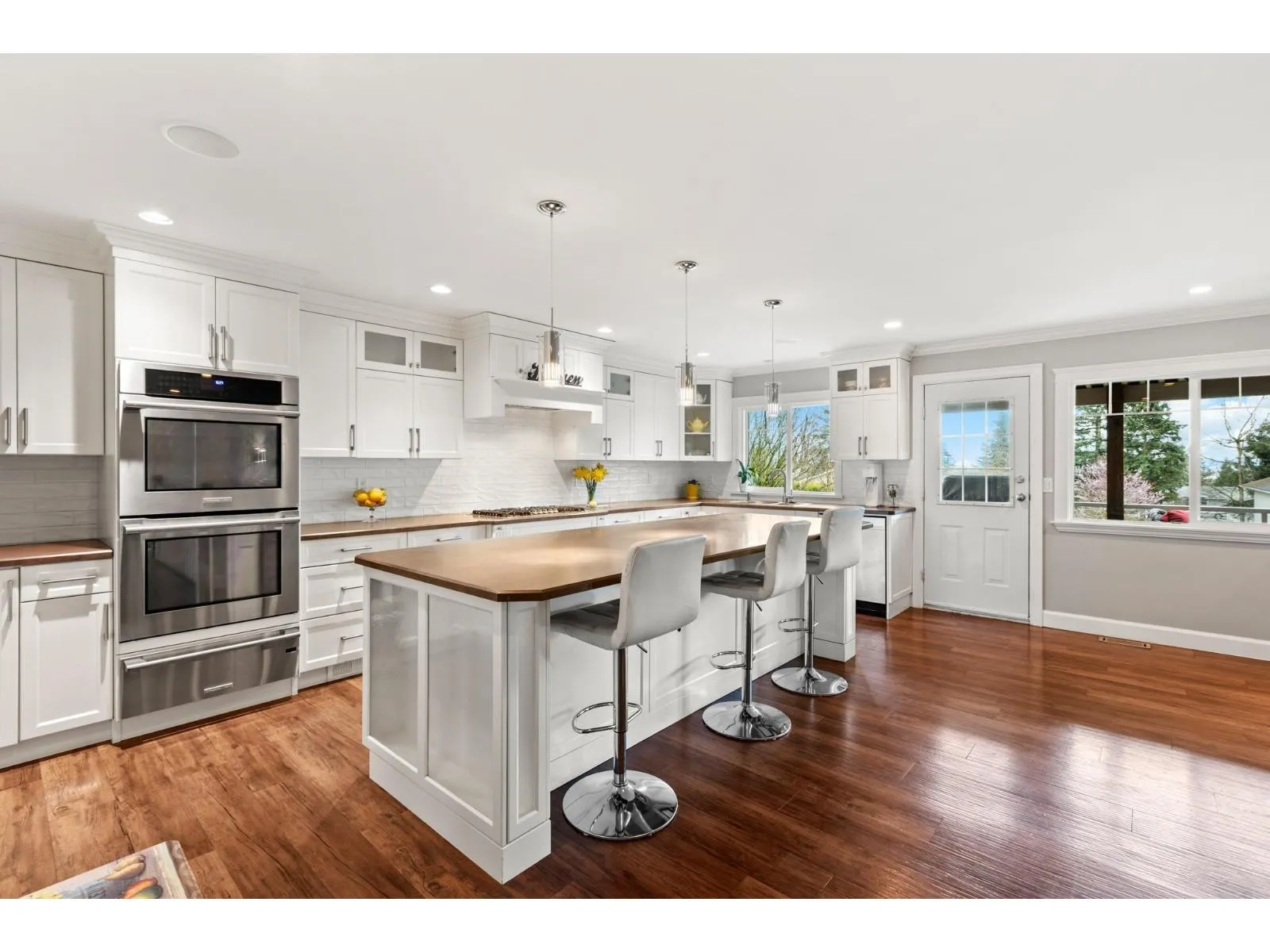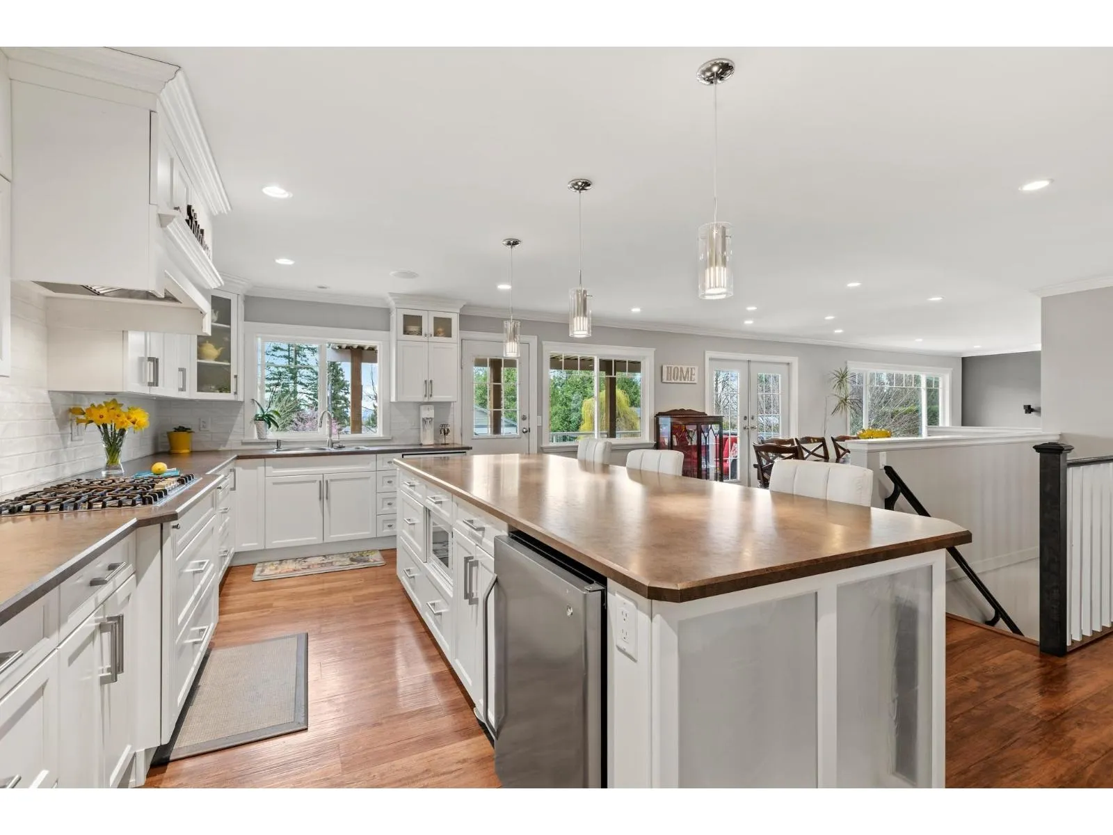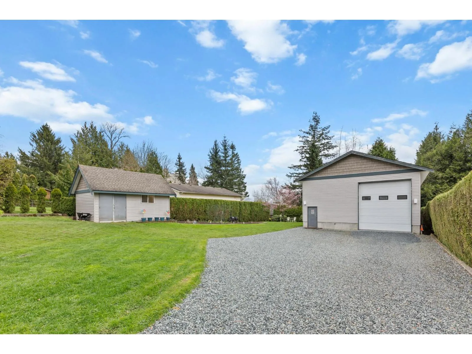 This stunning home, set on a spacious half-acre lot, perfectly blends modern design with functionality. The open-concept kitchen is a standout, featuring a large oversized island that flows seamlessly into the bright and airy living space, ideal for both entertaining and everyday living. Large windows throughout fill the home with natural light and offer views of the expansive, private backyard. The main level includes two generously sized bedrooms, while the basement features a third bedroom and a versatile flex space, easily adaptable to suit your needs. A true highlight of this property is the massive detached garage providing ample space for vehicles, storage, a workshop, or even a home-based business. This home offers the perfect mix of privacy and convenience in a prime location!! (id:27476)
