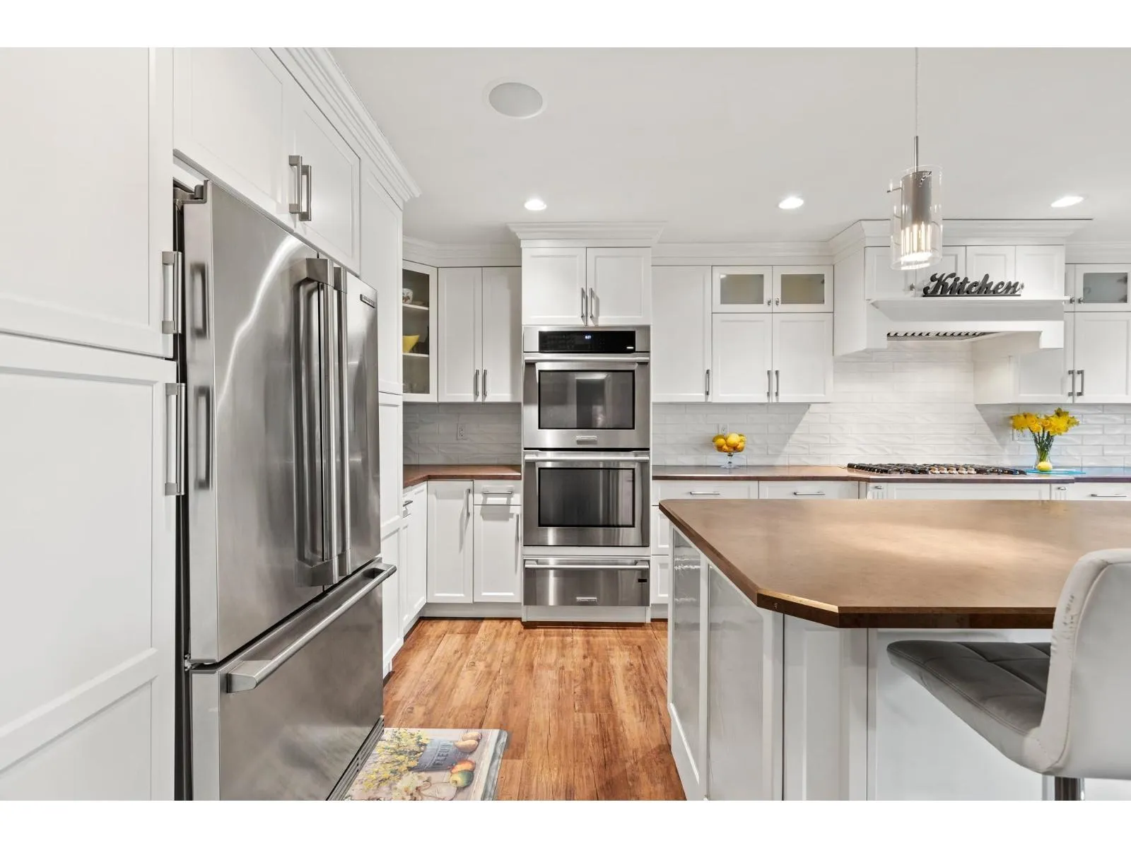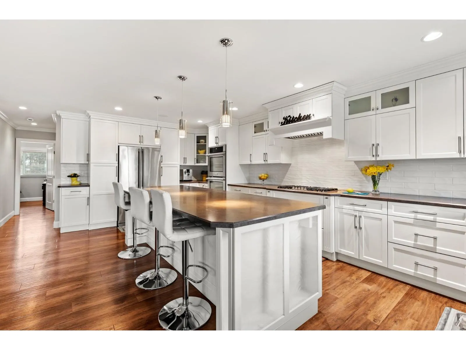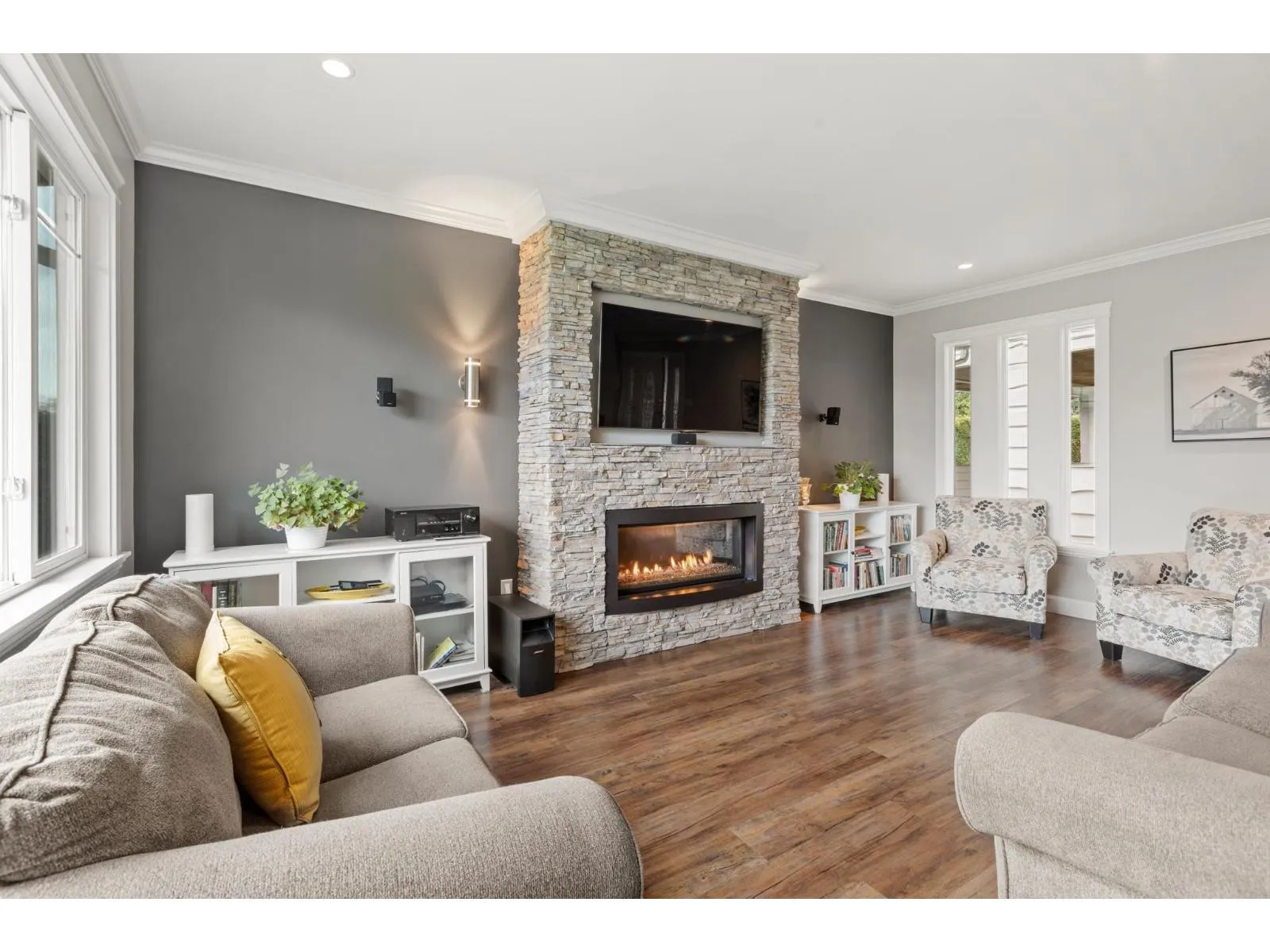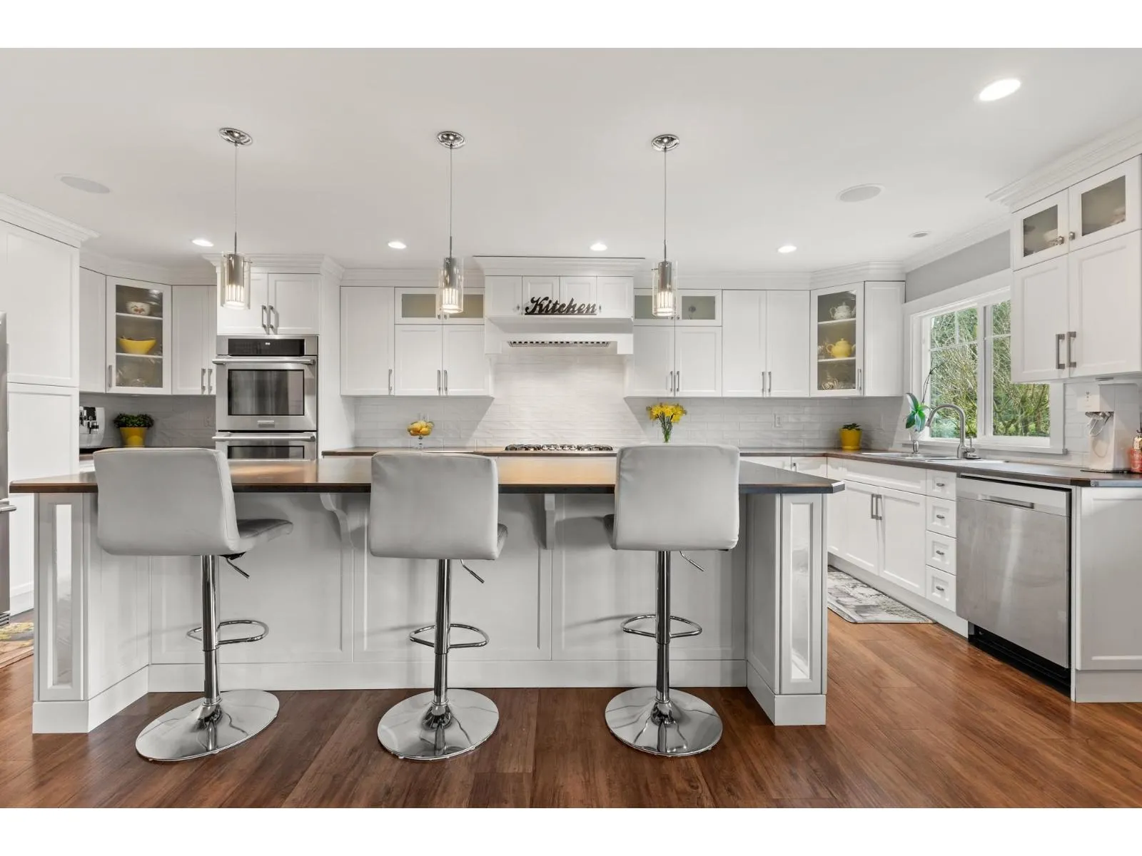 This stunning home, set on a spacious half-acre lot, perfectly blends modern design with functionality. The open-concept kitchen is a standout, featuring a large oversized island that flows seamlessly into the bright and airy living space, ideal for both entertaining and everyday living. Large windows throughout fill the home with natural light and offer views of the expansive, private backyard. The main level includes two generously sized bedrooms, while the basement features a third bedroom and a versatile flex space, easily adaptable to suit your needs. A true highlight of this property is the massive detached garage providing ample space for vehicles, storage, a workshop, or even a home-based business. This home offers the perfect mix of privacy and convenience in a prime location!! (id:27476)