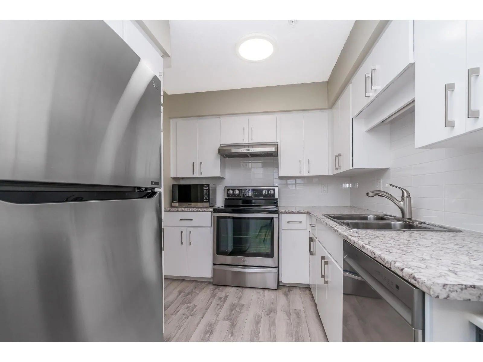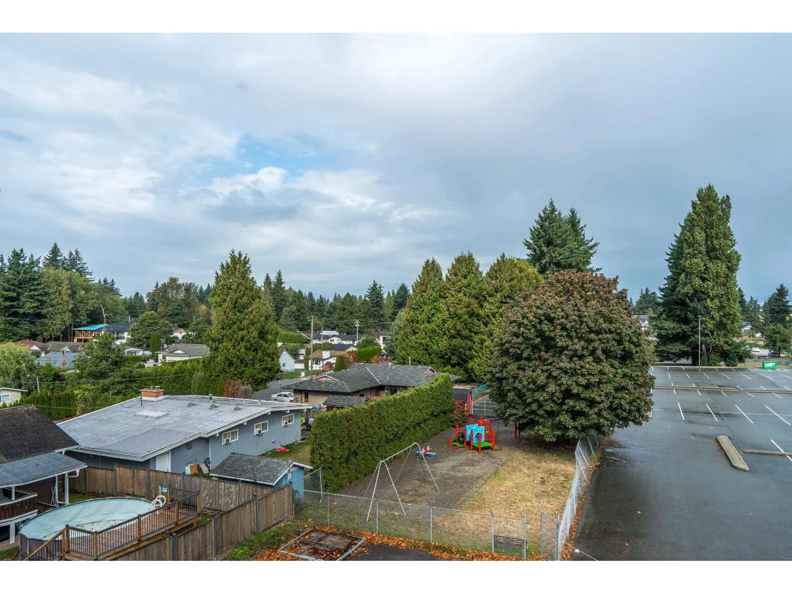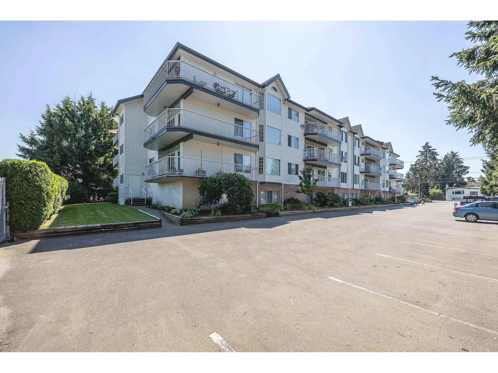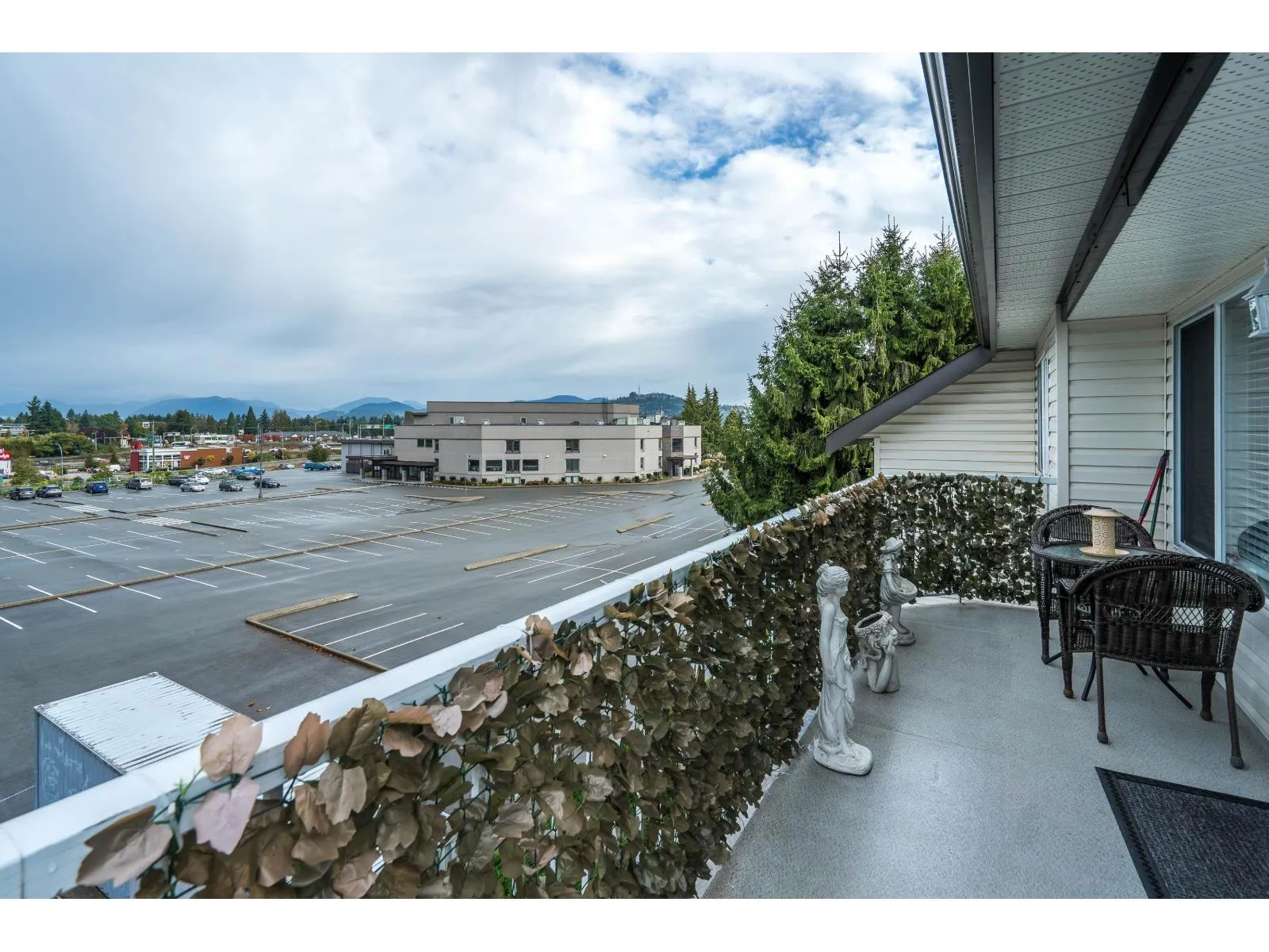 Wow! Top floor corner unit with fabulous view of North Shore Mountains. Absolutely spotless & bright boasting a wraparound balcony facing northwest. Newer floors & paint. Tons of kitchen cupboards. Secure underground parking plus lots of visitor parking. Just steps from Central Heights Manor and UFV, and only 5 minutes to Costco and the U.S. border. 55+ Building. (id:27476)