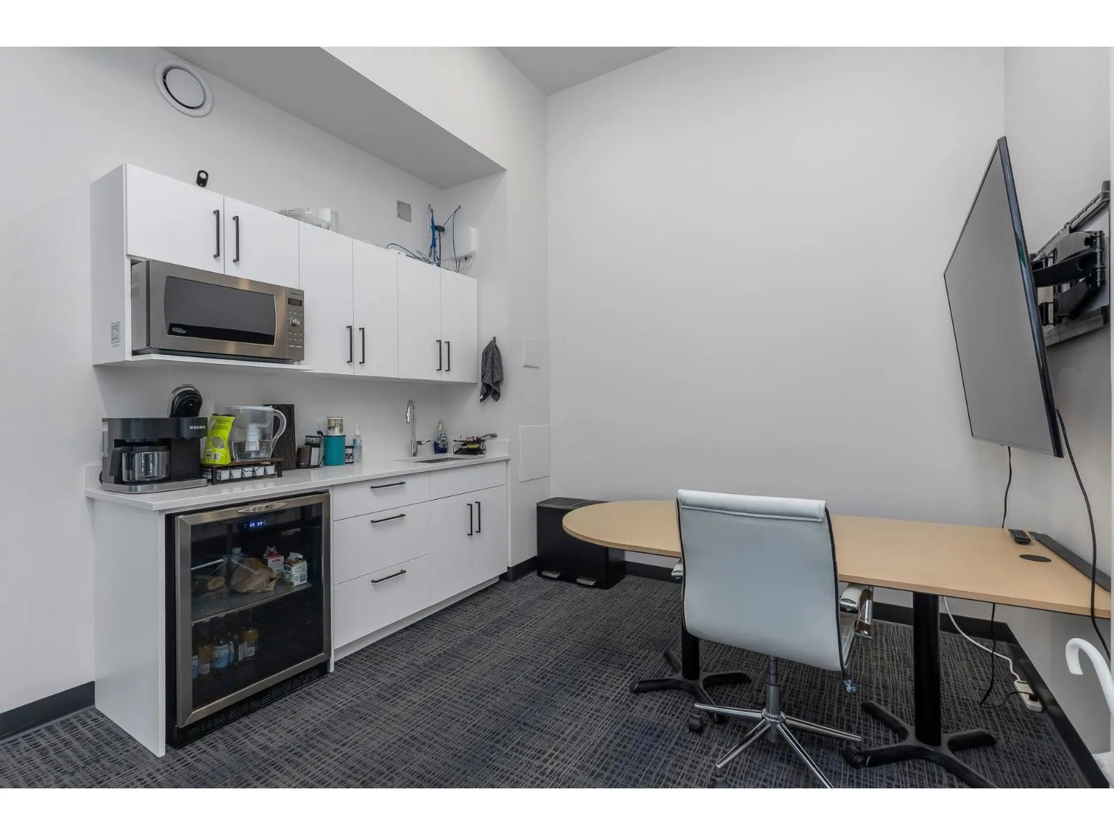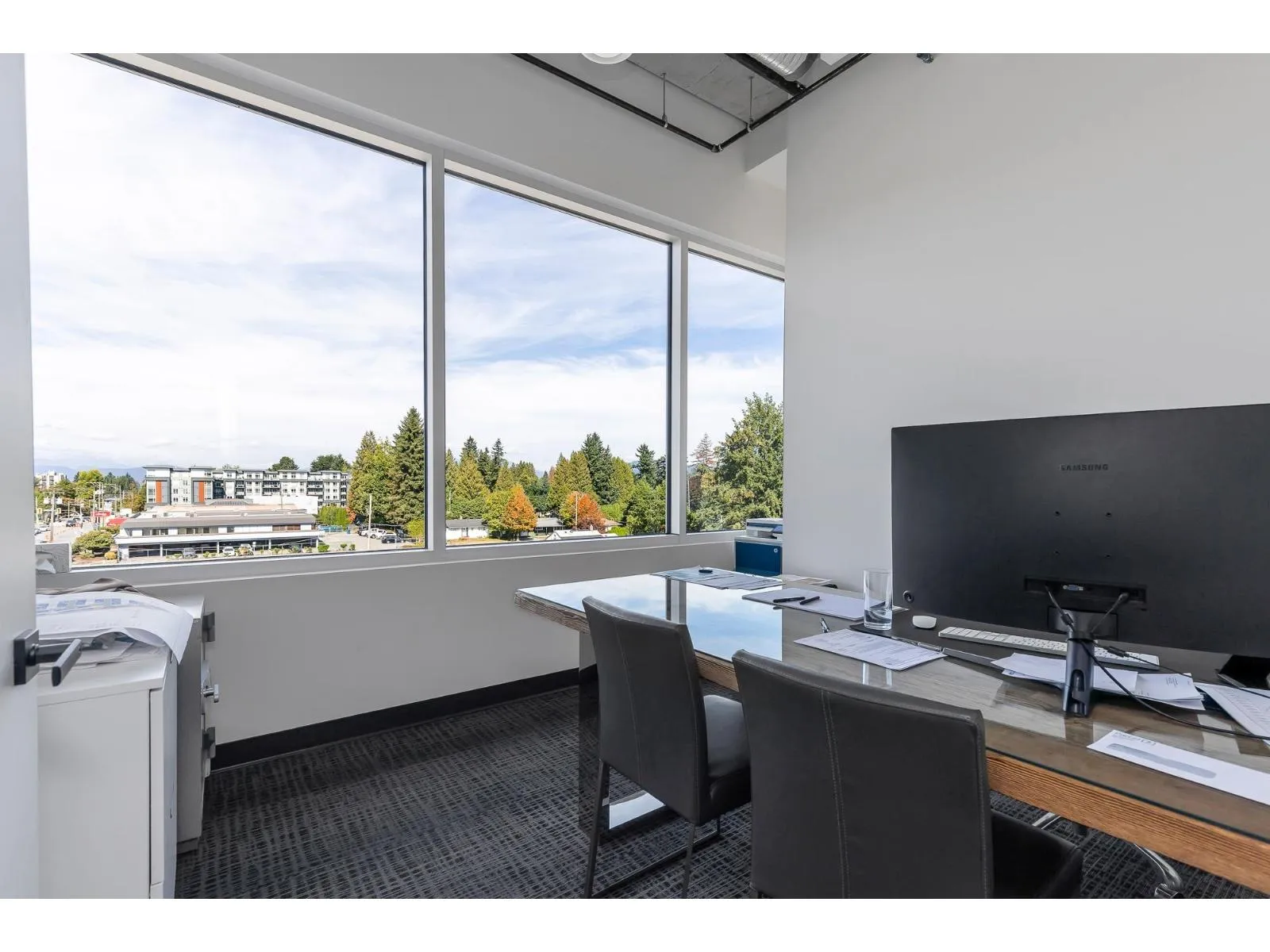 Top Floor Office with Natural Light, City Views & Prime Location Located at 400 - 2060 McCallum Road in Abbotsford, this professionally finished office space offers both functionality and convenience. The layout includes three private offices, a modern kitchenette, and a flexible open area that can be tailored to suit your business needs. Expansive windows fill the space with natural light, while its top-floor position provides sweeping views of Abbotsford's city centre. Beyond the space itself, the location is a major advantage - just minutes from Highway 1, directly connected to the city's commercial core, and in close proximity to Abbotsford Regional Hospital and a wide variety of restaurants, shops, and professional services. Perfectly balancing professional design with accessibility, this space offers an ideal opportunity for businesses seeking a central, connected, and turnkey office environment. (id:27476)