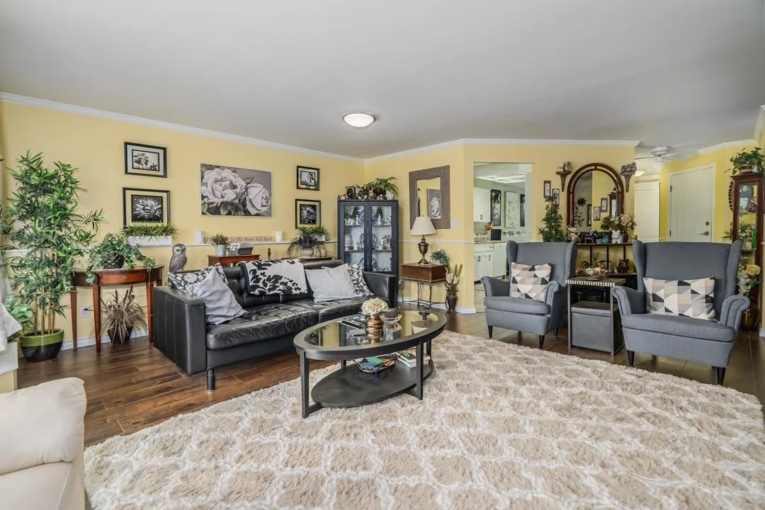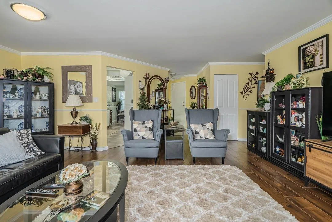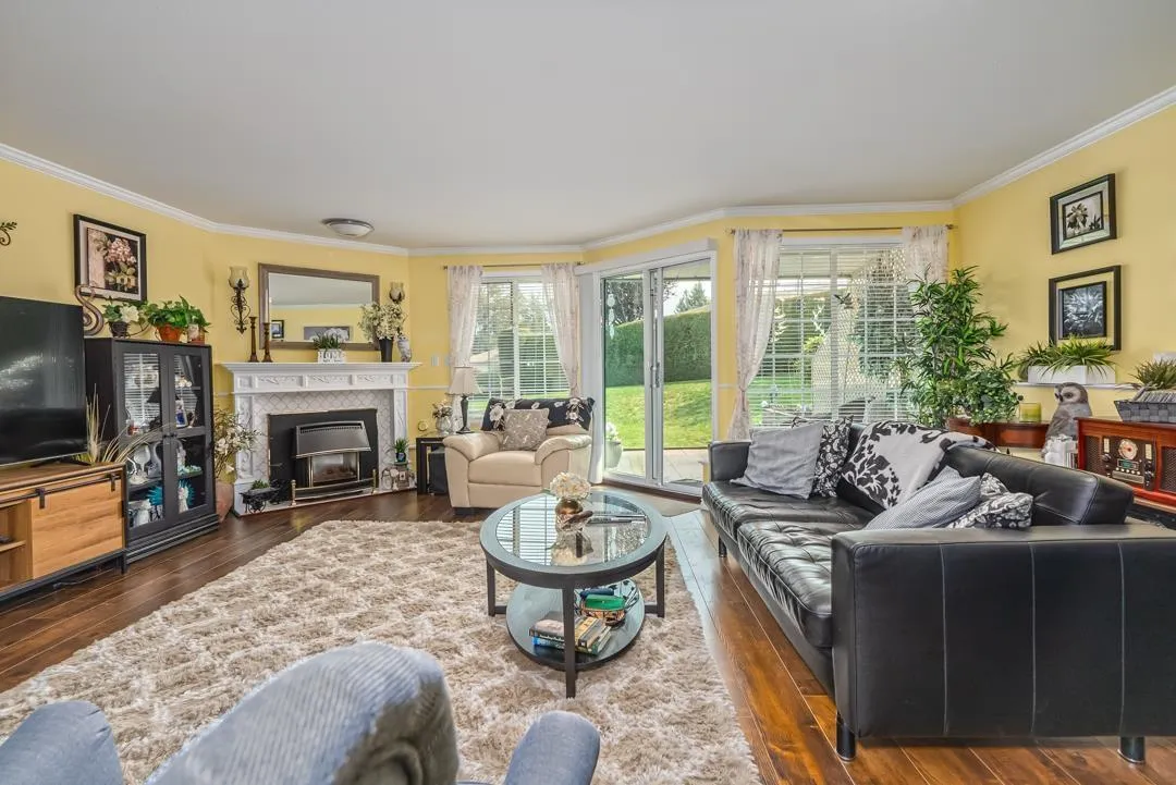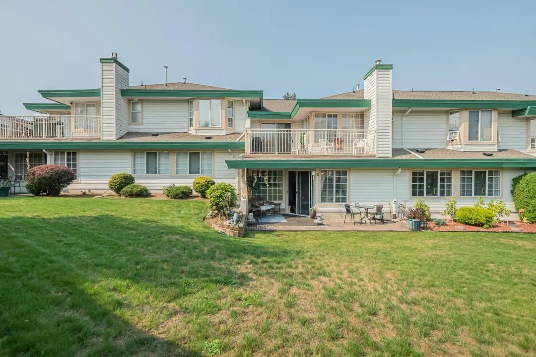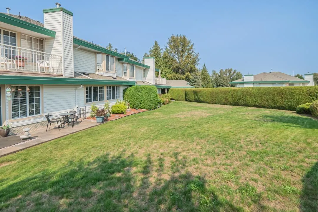 LOCATED in the highly sought-after CEDARBROOK VILLAGE, this charming ground-level, 1-storey townhome offers the perfect blend of convenience and comfort. Situated in a prime location close to shopping, dining, hospital and transit. Originally the show home, it features 2 bedrooms, 2 bathrooms, and a bright white kitchen with updated countertops, newer laminate flooring. The living room has a cozy gas fireplace, and the front and back patios offer a wonderful outdoor space, with the back patio overlooking a private common yard. Located in a well-maintained complex, it's perfect for those seeking a stair-free, low maintenance lifestyle. 55 plus complex. Replaced hot water heater 2023, new pressure regulating valve June 2024,New roofs being done. This home is ready to move into. (id:27476)