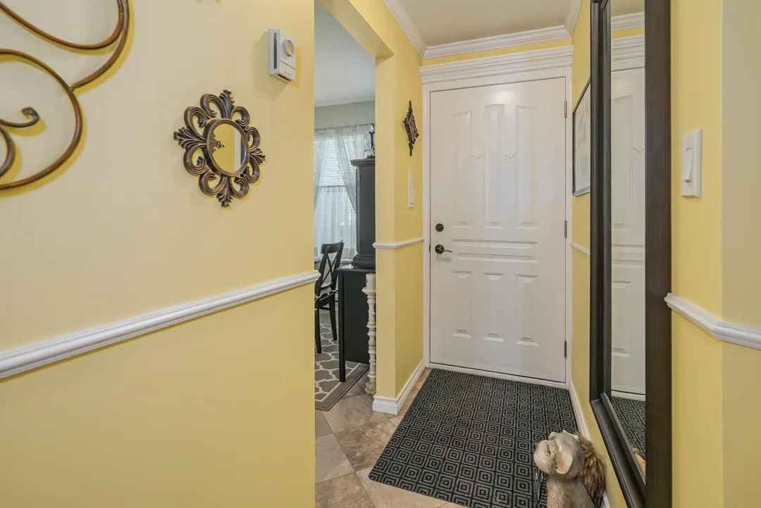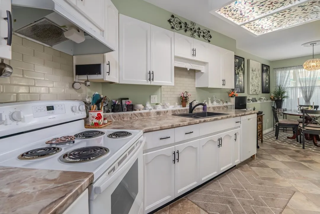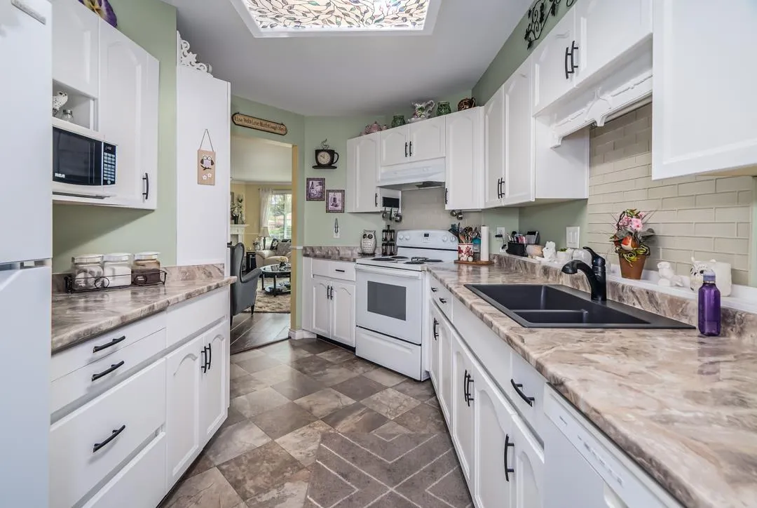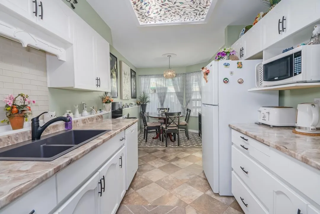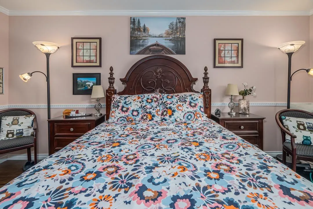 LOCATED in the highly sought-after CEDARBROOK VILLAGE, this charming ground-level, 1-storey townhome offers the perfect blend of convenience and comfort. Situated in a prime location close to shopping, dining, hospital and transit. Originally the show home, it features 2 bedrooms, 2 bathrooms, and a bright white kitchen with updated countertops, newer laminate flooring. The living room has a cozy gas fireplace, and the front and back patios offer a wonderful outdoor space, with the back patio overlooking a private common yard. Located in a well-maintained complex, it's perfect for those seeking a stair-free, low maintenance lifestyle. 55 plus complex. Replaced hot water heater 2023, new pressure regulating valve June 2024,New roofs being done. This home is ready to move into. (id:27476)