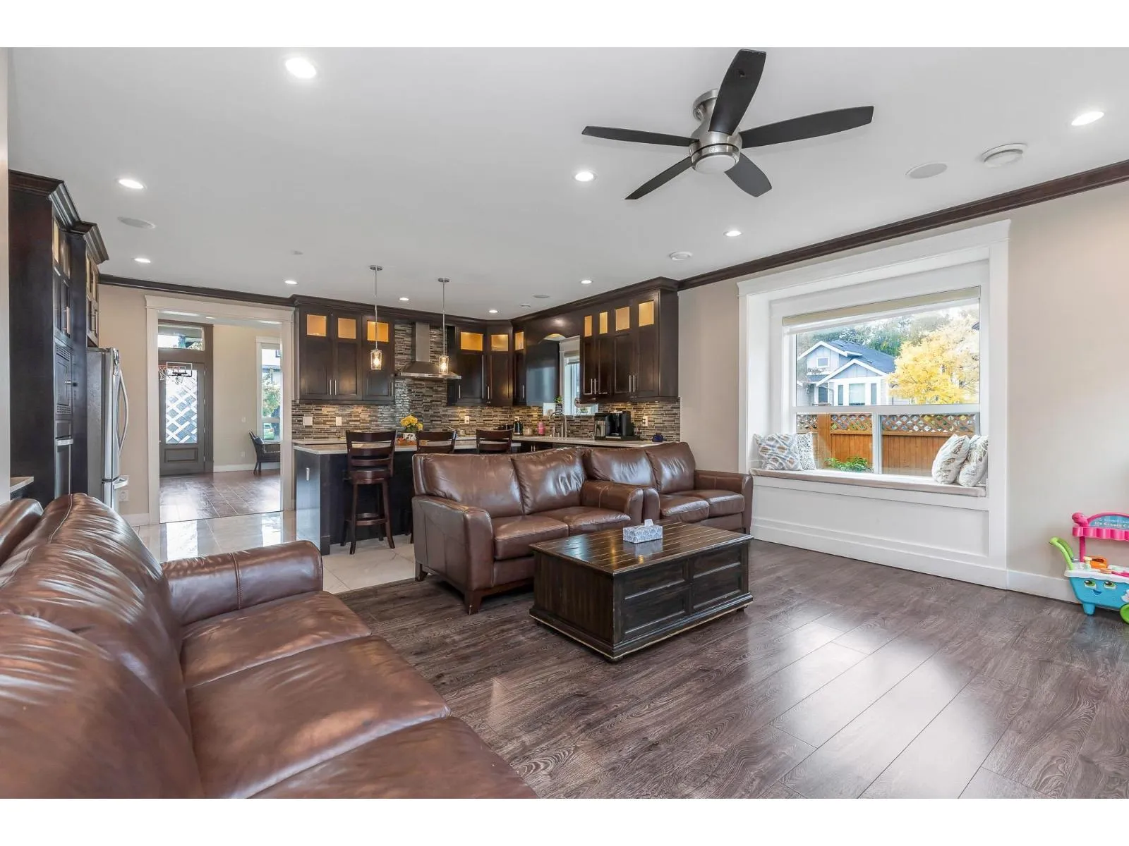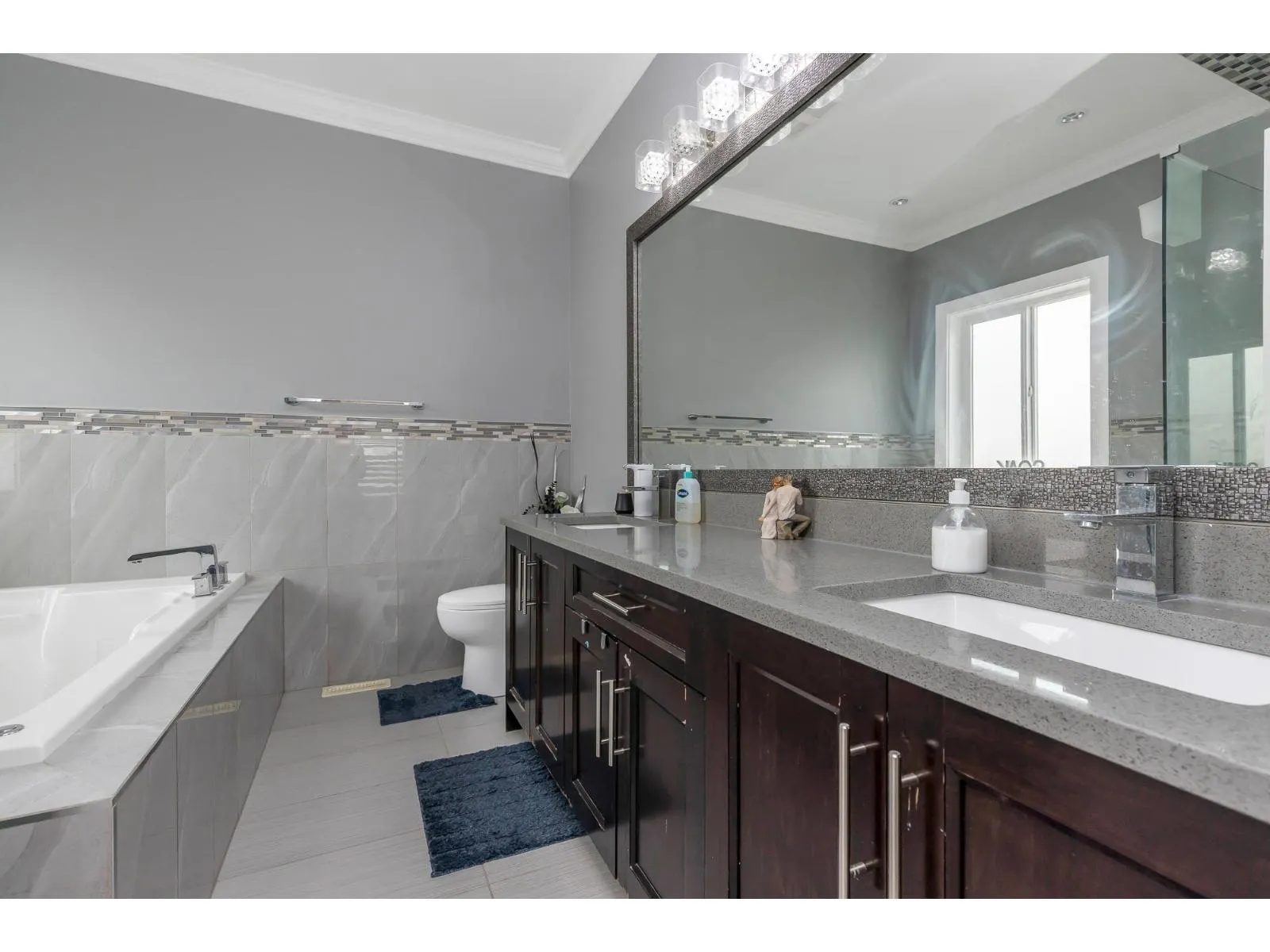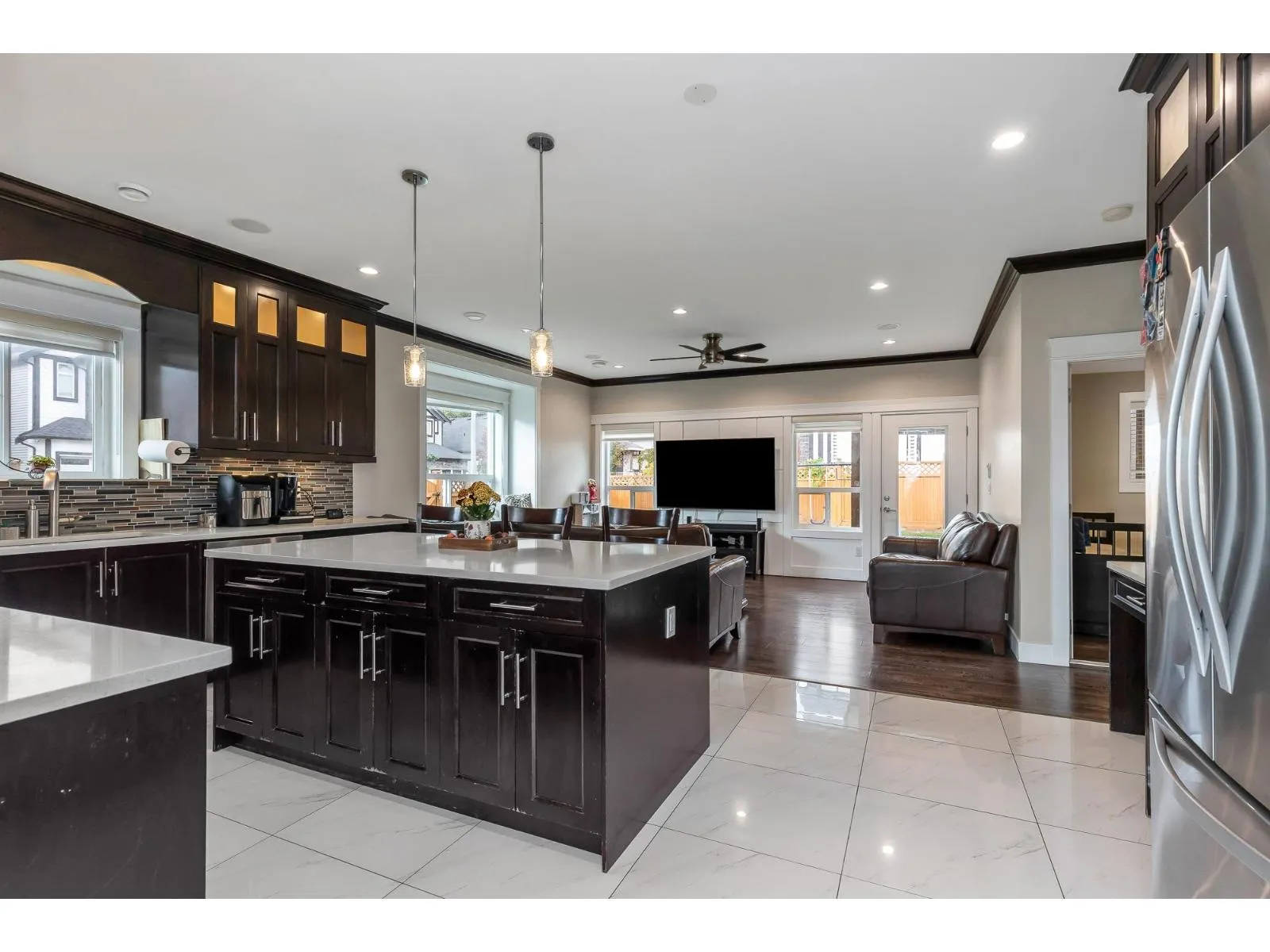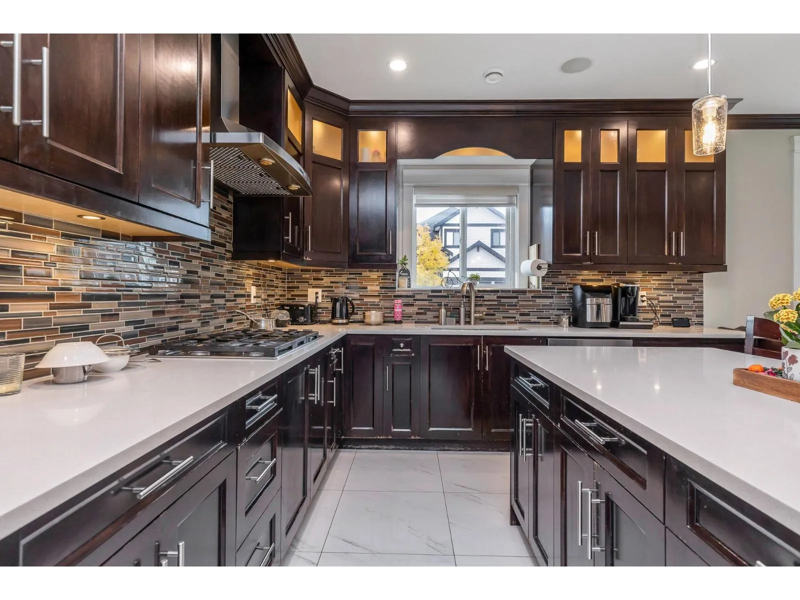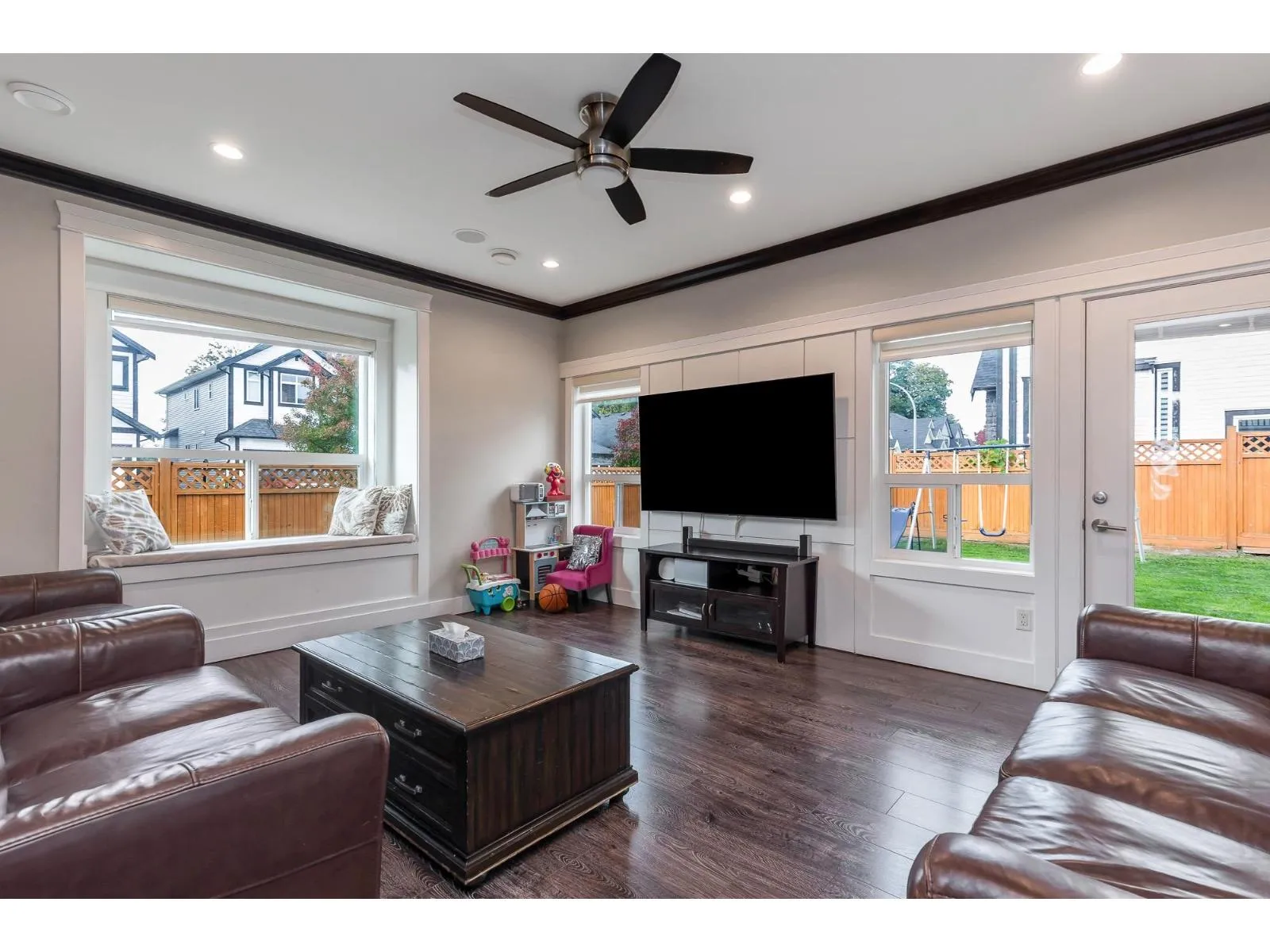 This custom two-story corner lot home features six bedrooms and five bathrooms. The main floor includes a living room with a vaulted ceiling and gas fireplace, a dining room, a family room, and a chef's kitchen. Upstairs are four spacious bedrooms and three bathrooms. The property also includes a separate two-bedroom basement suite with in-suite laundry. Exterior highlights are an oversized garage and a private, fenced yard. (id:27476)