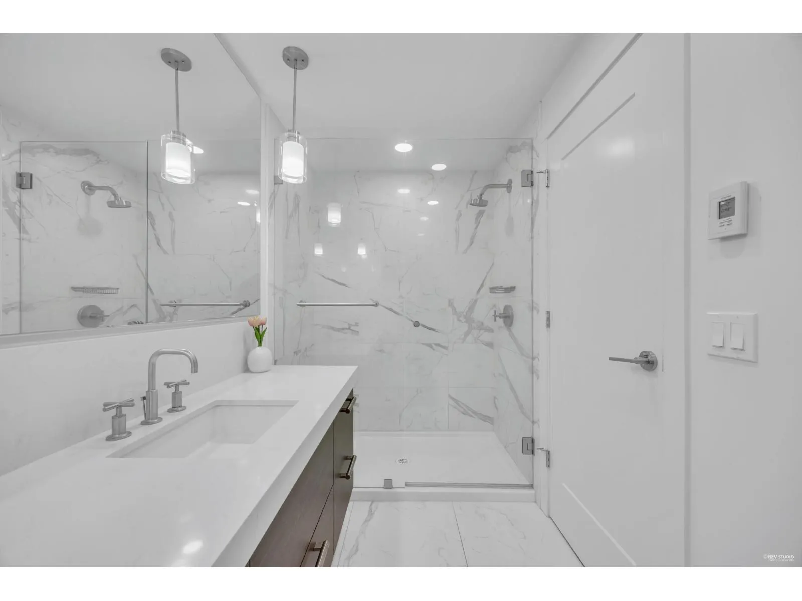 Corner unit in Abbotsford's luxury building, The Residences at Gateway. This spacious 2-bedroom, 2-bath suite offers premium finishes with a 9-foot ceiling, full laundry room, radiant bathroom floors, and heat pump/AC. Enjoy marble backsplash, wide plank flooring, and a balcony with a gas BBQ hookup. High-end appliances include a Bertazzoni gas range, Fisher & Paykel fridge, Bosch dishwasher, and built-in wine storage. Comes with 2 secure underground parking spaces and a large 8' x 8' storage locker next to your parking. Covered by New Home Warranty. Close to downtown Abbotsford, Highway 1, shopping, and dining. (id:27476)