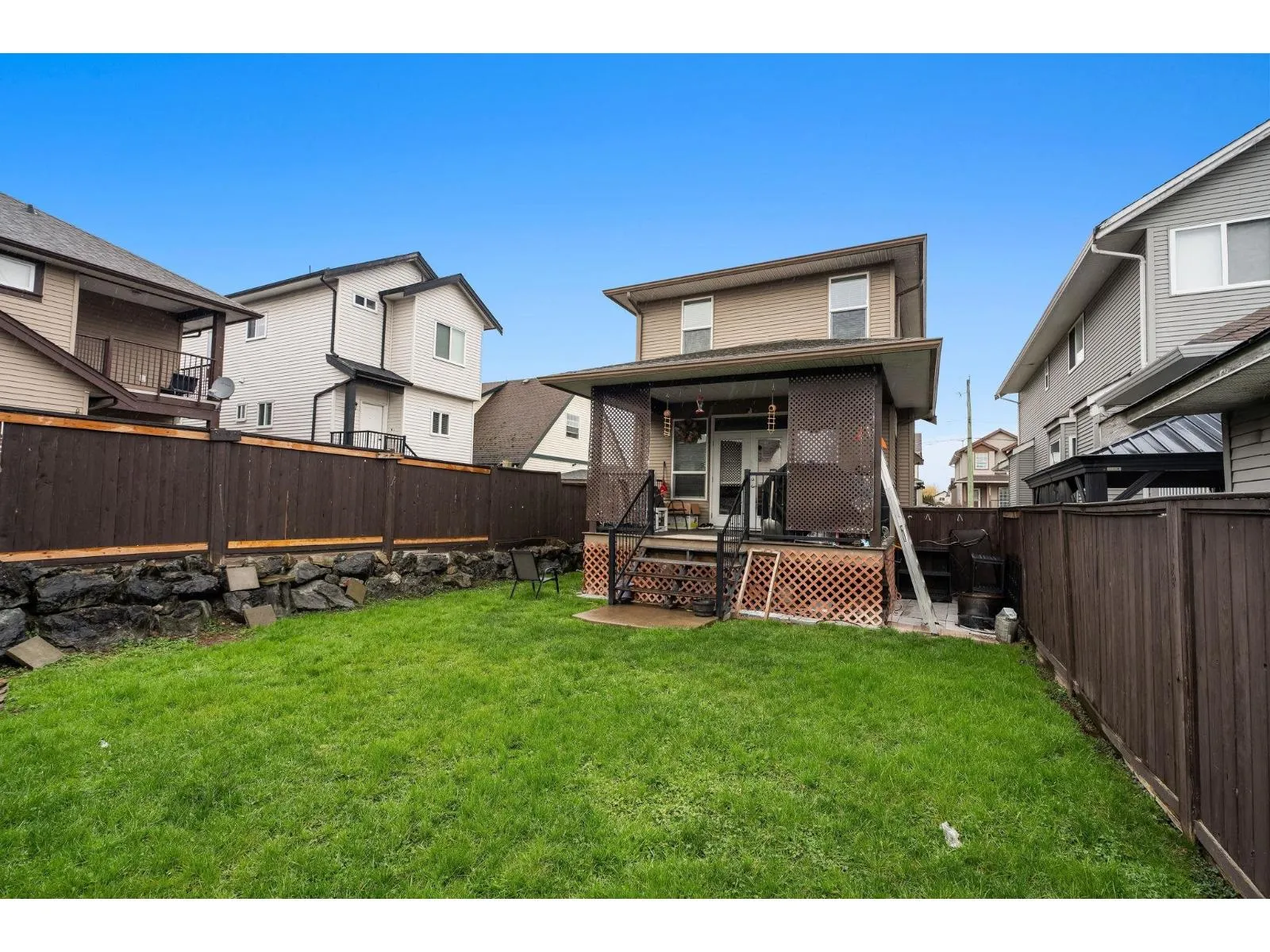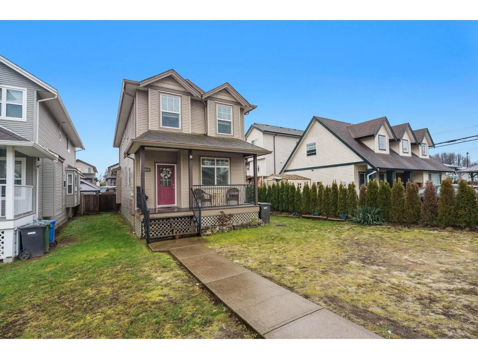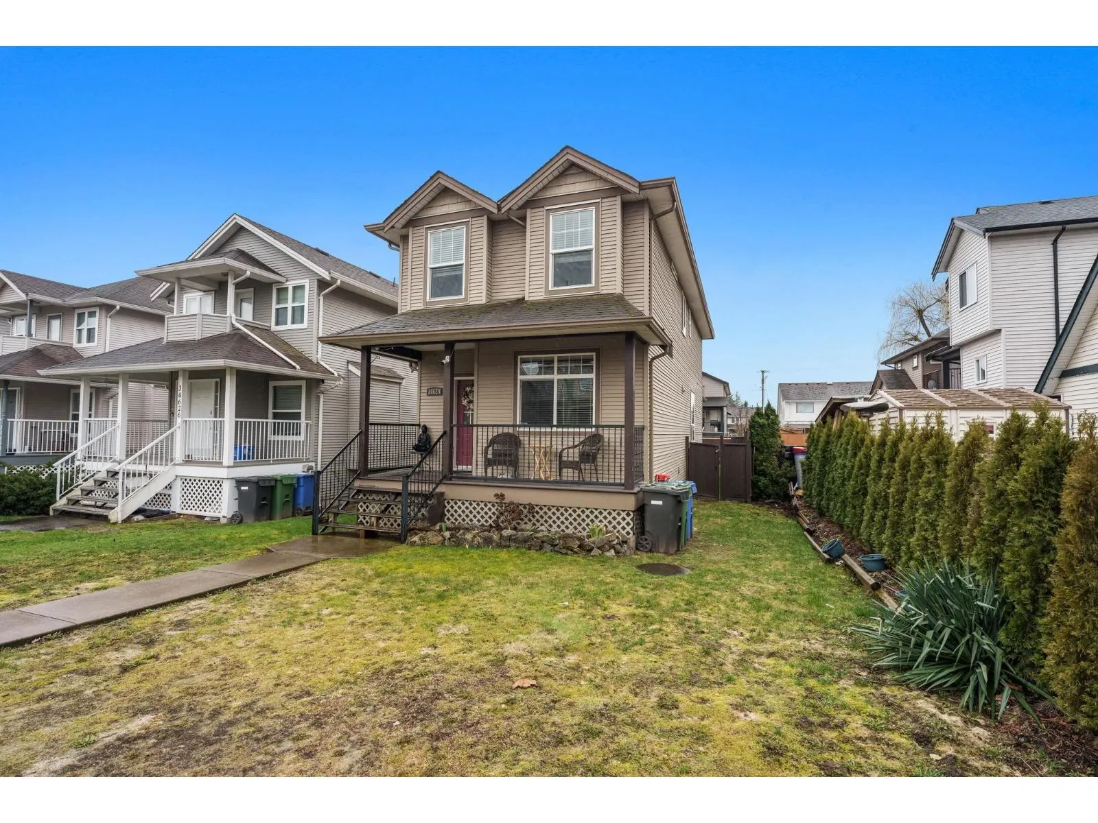 Welcome to your new home in the desirable Huntingdon Village! This 3 Bedroom + 3 Bathroom home offers both charm & comfort on a generous 30x125 lot. Step onto the large covered decks, both at the front & back in any weather. Formal living room upon entry which is a great flex space. Open living room with gas fireplace feature and dark brown kitchen with S/S appliances & island. All of the bedrooms are located upstairs along with the laundry. Relax into a laid-back atmosphere where the backyard is fully fenced for your leisure and comfort. In the basement you'll discover a crawl space boasting nearly 6 ft of height providing ample storage for your convenience. Conveniently located close to Sumas border, highway access, shopping centers & much more. Bonus there's a park nearby for the kids! (id:27476)