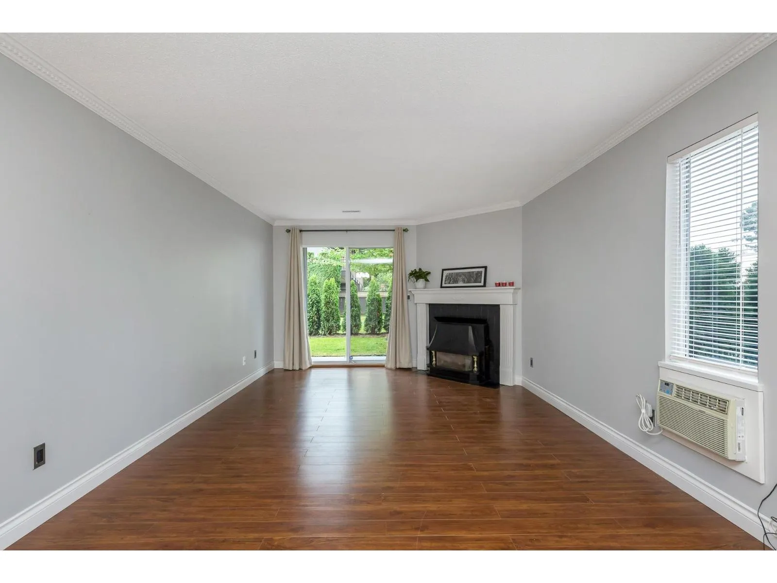 Beautifully updated 2-bedroom, 1.5-bath ground-floor corner townhouse in the sought-after Gardens complex in McMillan! This bright and sunny unit features fresh paint, stainless steel appliances, modern lighting, updated cabinets and counters, crown moulding, a cozy gas fireplace, and in-suite laundry. The bathroom includes a relaxing soaker tub. Enjoy the private covered patio that backs onto a lush green space, offering a peaceful, park-like setting. There's also a good-sized storage room for added convenience. Located near the complex entrance with good access to the private outdoor pool-perfect for summer! Just a short walk to schools, parks, shopping, and recreation facilities, and only 6 minutes to the highway. 1 cat allowed. (id:27476)