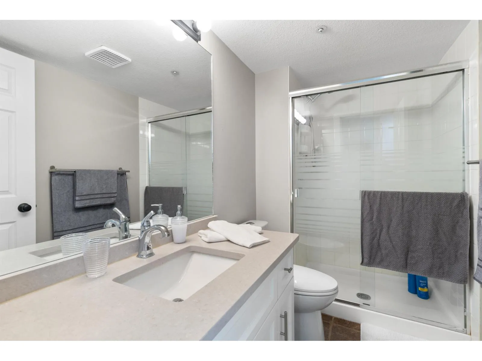 Welcome to this bright and spacious 2-bedroom, 2-bathroom condo in the heart of Abbotsford! Boasting 1,040 sqft of comfortable living space, this well-maintained unit offers a large open-concept living and dining area with plenty of natural light. Featuring an updated kitchen with quartz counters, ample storage, and a functional layout that flows seamlessly into the living space. Both bedrooms are generously sized, with the primary suite offering a private ensuite bathroom. The second bedroom is ideal for guests or a as a home office. This well maintained building offers an indoor pool, hot tub, gym, large games room with kitchen, pool table, shuffle board, tv, seating area, 2 guest suites, storage locker, open air courtyard, and a great community. Book your showing today! (id:27476)