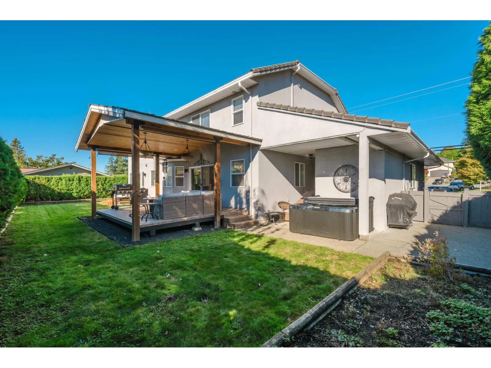 Gorgeous East Abbotsford 2-Storey Home! Situated on a large 10,000 sq. ft. lot, this home features a 3-car garage and plenty of extra parking. Perfectly located near all levels of schools, shopping, the Abbotsford Rec Centre, and quick freeway access. The beautifully renovated main floor offers new kitchen cabinets, stone countertops, updated flooring, a refreshed powder room, and smart lighting throughout. Step out to the covered deck-ideal for year-round enjoyment in your private, fenced backyard. Upstairs boasts 4 spacious bedrooms, including 2 ensuites plus a main bathroom. The master suite is an impressive 27' x 24' retreat! Additional highlights include a tile roof, hot water on demand, a hot tub, and much more. Don't miss this incredible home-book your showing today! (id:27476)