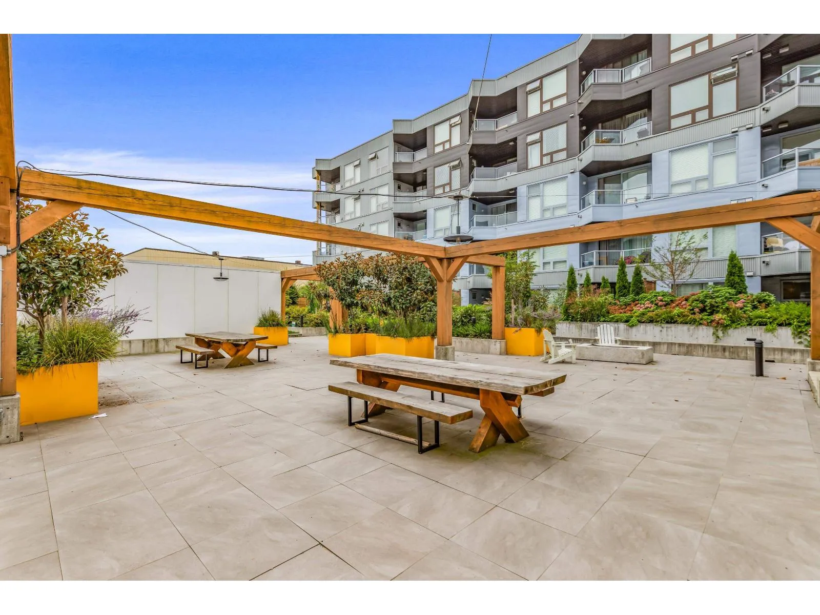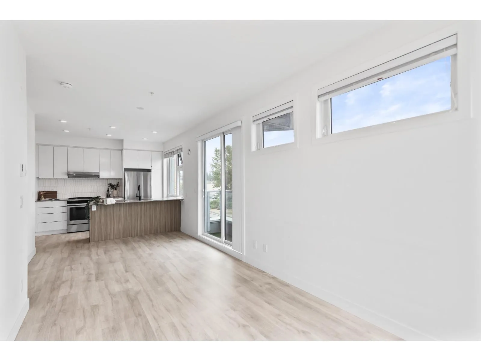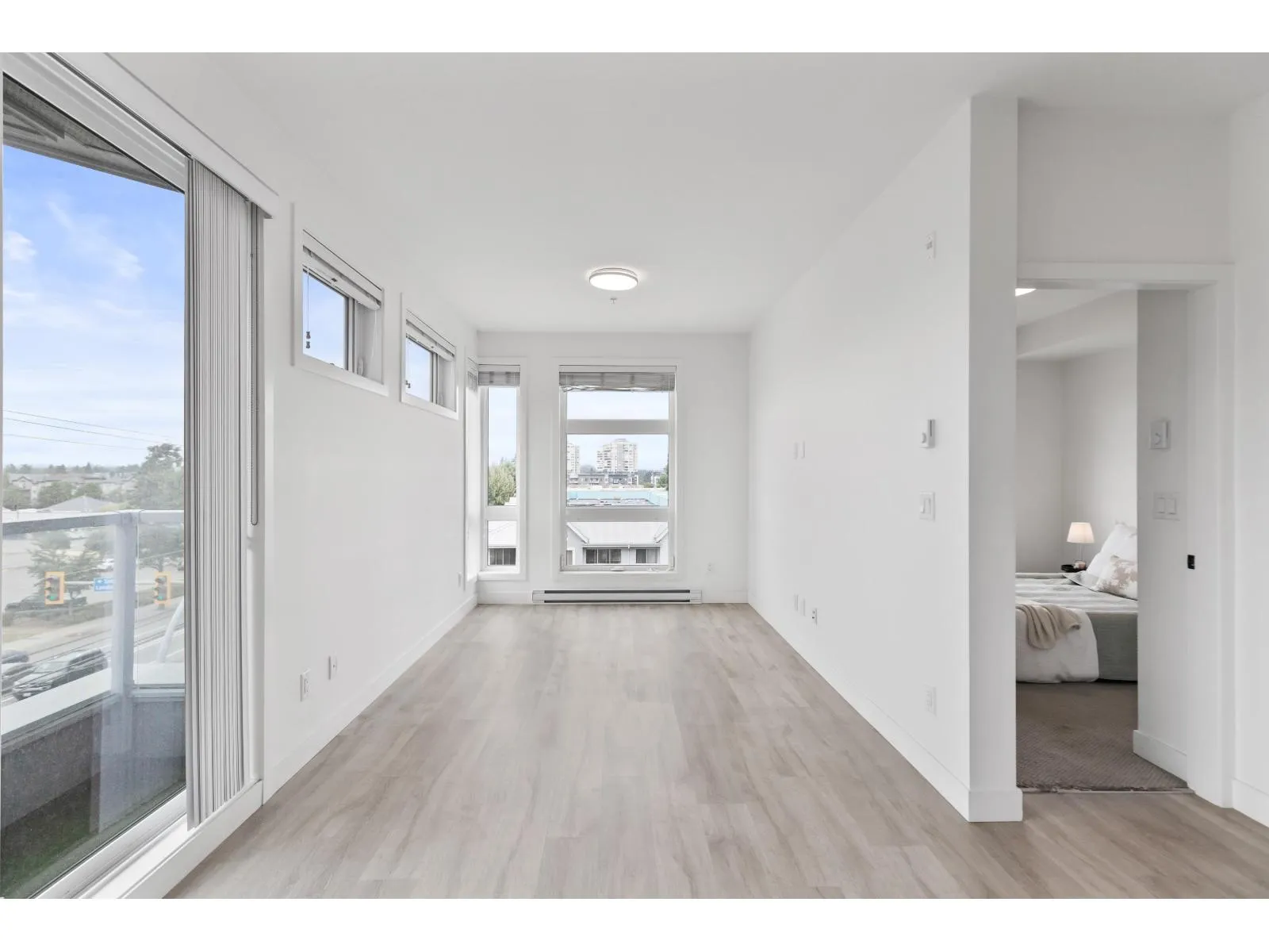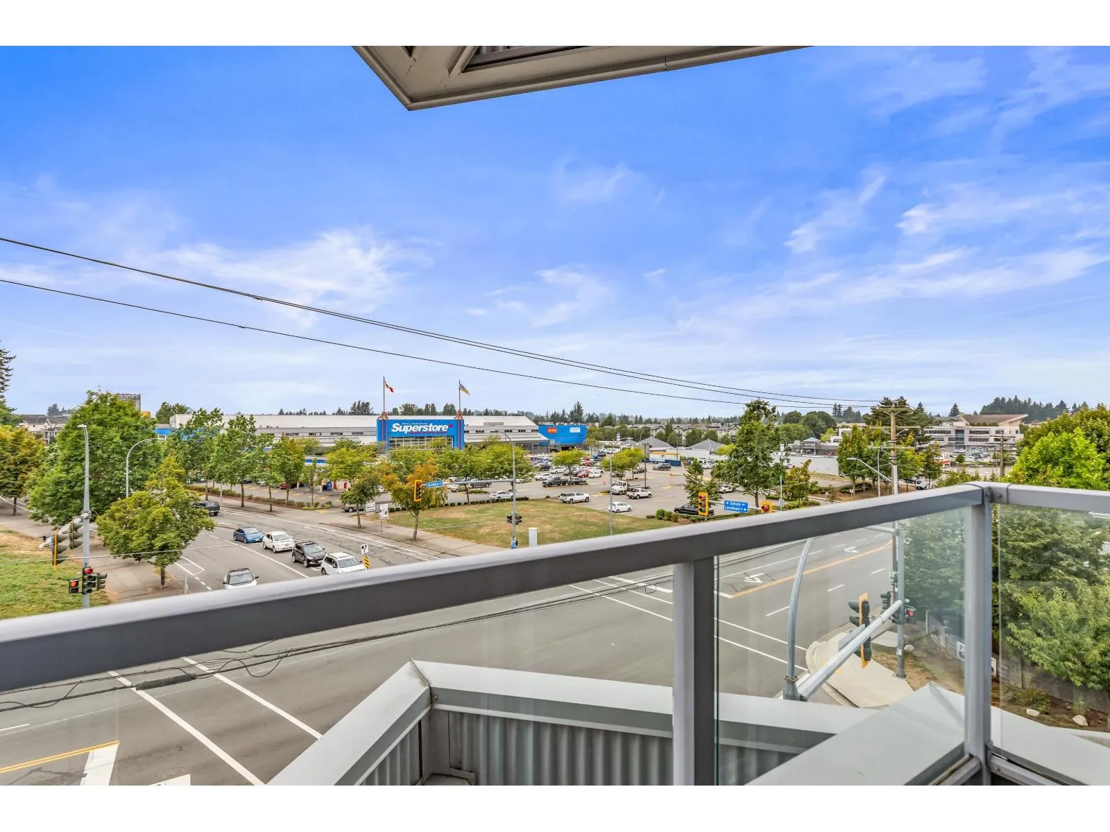 Light-filled and stylish, this Scandinavian-inspired corner condo pairs contemporary design with a prime location. Wide-plank floors and large windows flood the space with natural light, while a Juliette balcony adds fresh air. The kitchen shines with Fisher & Paykel + Whirlpool appliances, quartz counters, and an eating bar. Enjoy in-suite laundry, a versatile pantry/closet, spacious entry, and a quality primary closet organizer. COURT WEST allows 2 pets and offers a massive courtyard with movie nights, shared EV chargers, secure bike room, 1 parking stall, and a large locker-steps to Seven Oaks Mall, Superstore, Trading Post Brewing, Cora's, transit, and minutes to Mill Lake Park. QUICK COMPLETION POSSIBLE (id:27476)