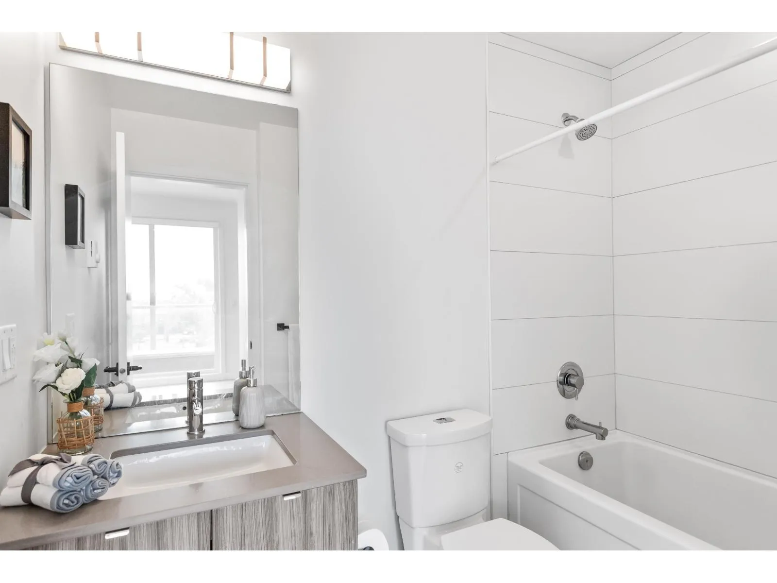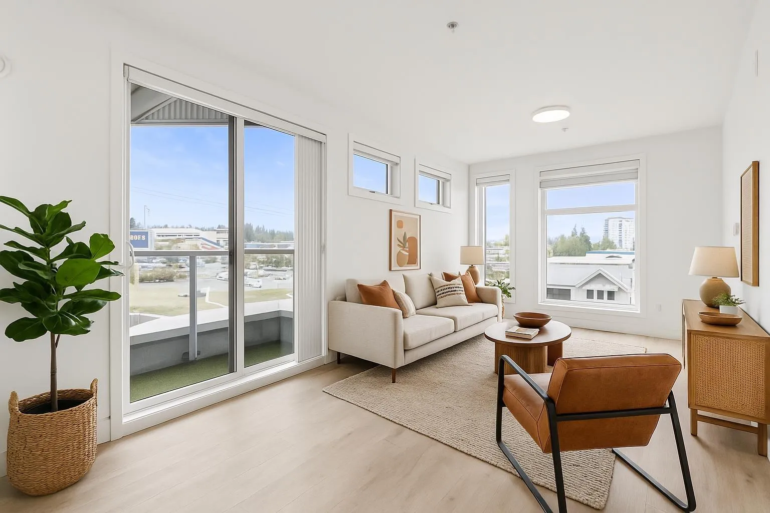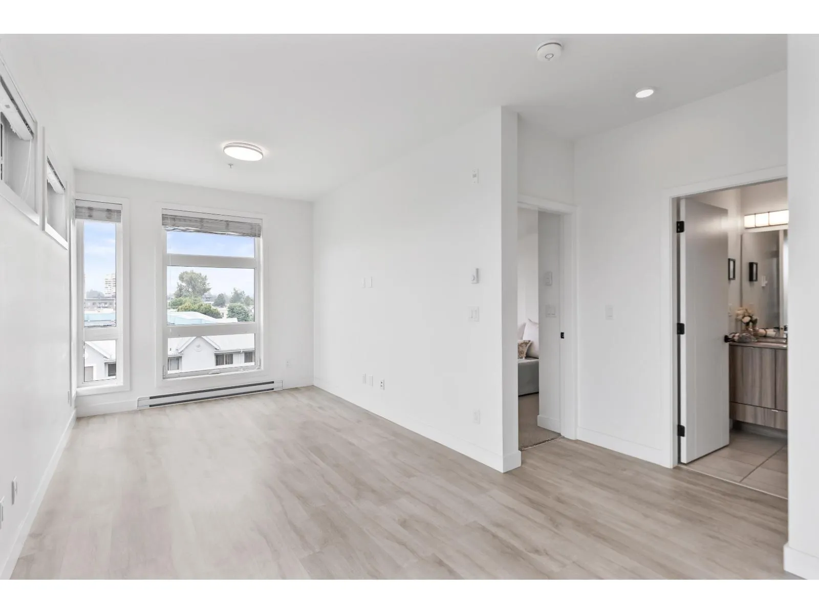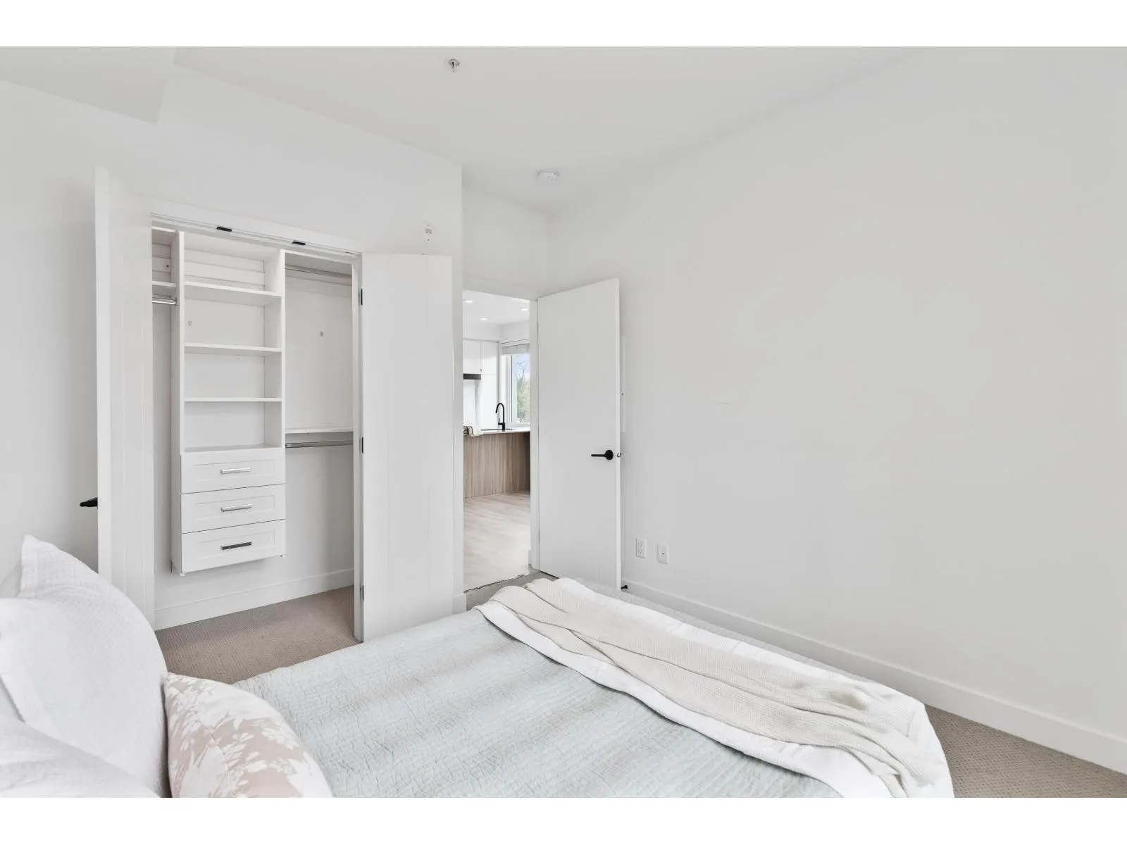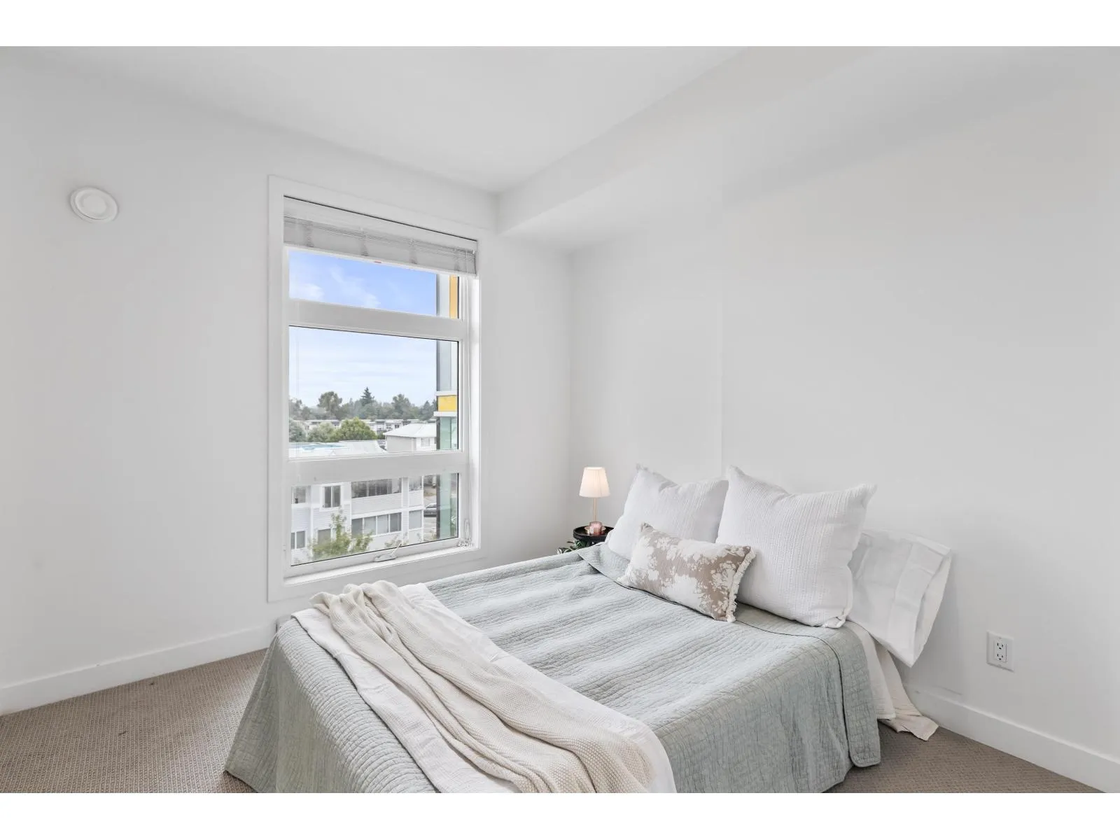Light-filled and stylish, this Scandinavian-inspired corner condo pairs contemporary design with a prime location. Wide-plank floors and large windows flood the space with natural light, while a Juliette balcony adds fresh air. The kitchen shines with Fisher & Paykel + Whirlpool appliances, quartz counters, and an eating bar. Enjoy in-suite laundry, a versatile pantry/closet, spacious entry, and a quality primary closet organizer. COURT WEST allows 2 pets and offers a massive courtyard with movie nights, shared EV chargers, secure bike room, 1 parking stall, and a large locker-steps to Seven Oaks Mall, Superstore, Trading Post Brewing, Cora's, transit, and minutes to Mill Lake Park. QUICK COMPLETION POSSIBLE (id:27476)