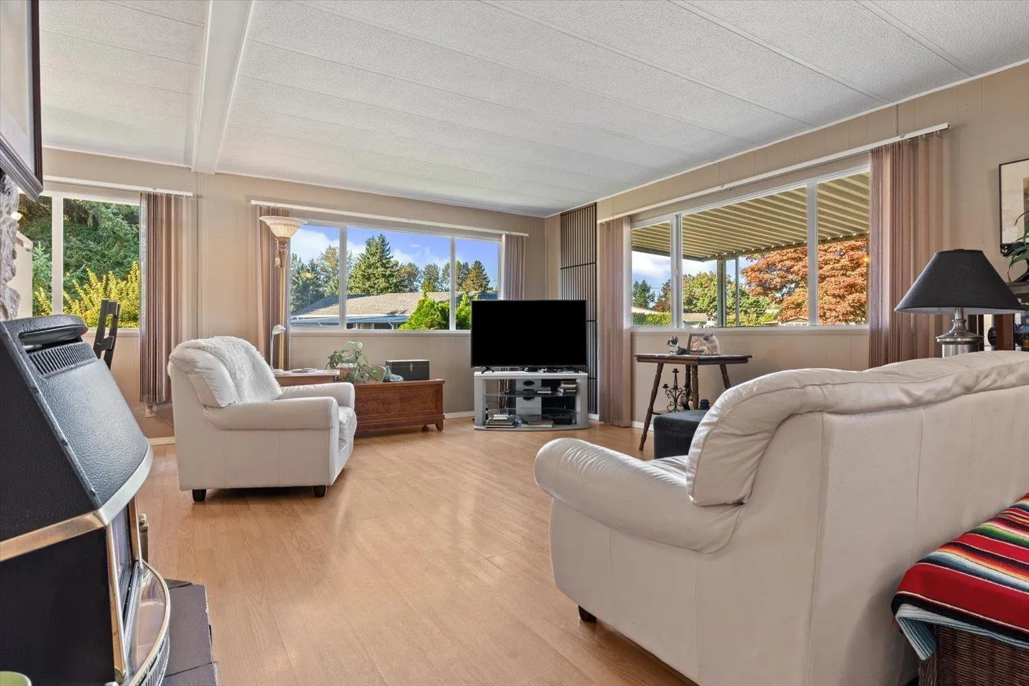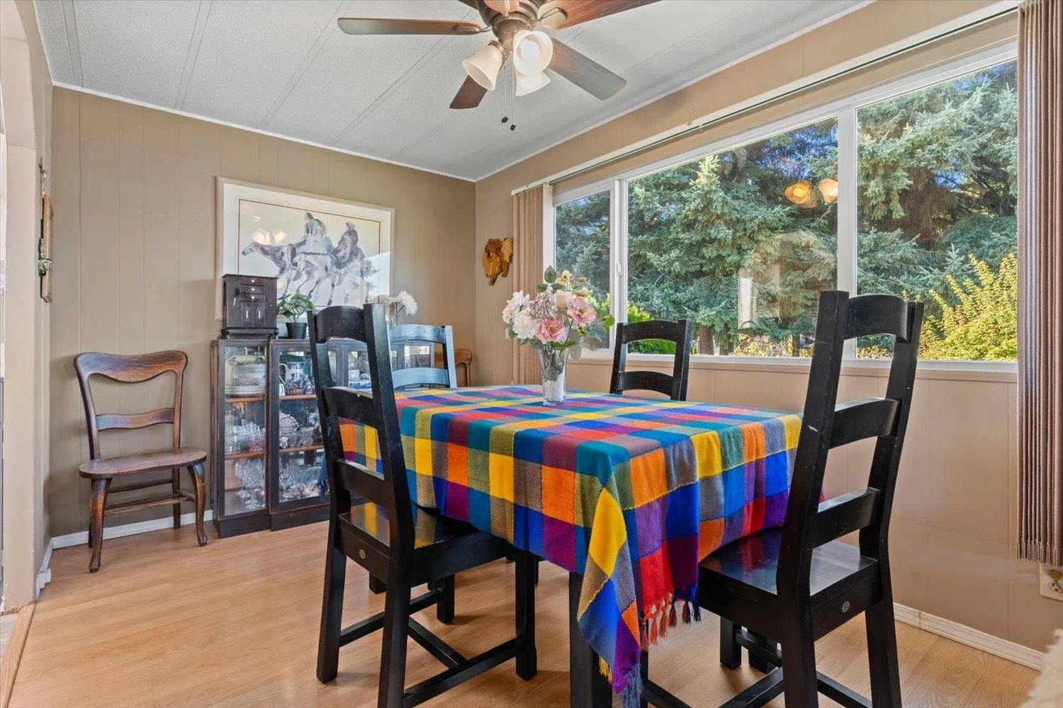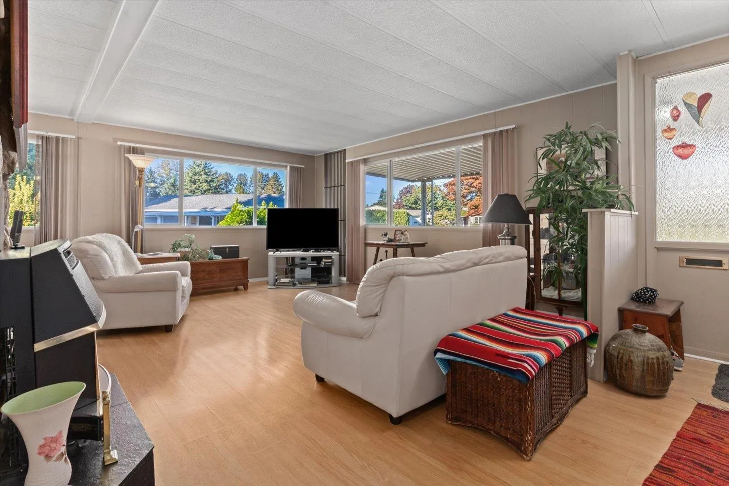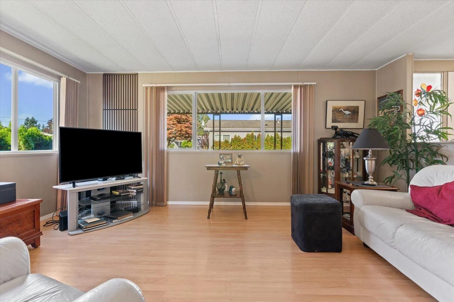 Welcome to Paradise Park! One of Abbotsford's most friendly and secure 55+ communities. This well-cared-for double-wide home offers 2 bedrooms, 2 bathrooms, and a bright, inviting layout filled with natural light and warmth. Enjoy peace of mind with numerous exterior updates and the charm of a cozy, functional floor plan. The enclosed patio opens to a spacious backyard with two storage sheds and room for your garden or outdoor retreat. Manicured grounds, wonderful neighbors, and the bonus of one small pet allowed make this community truly special. Attractively priced for a senior budget, this home is a must-see! (id:27476)