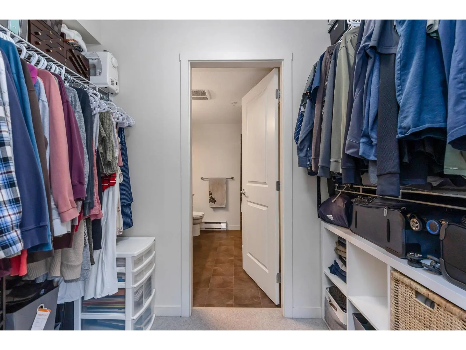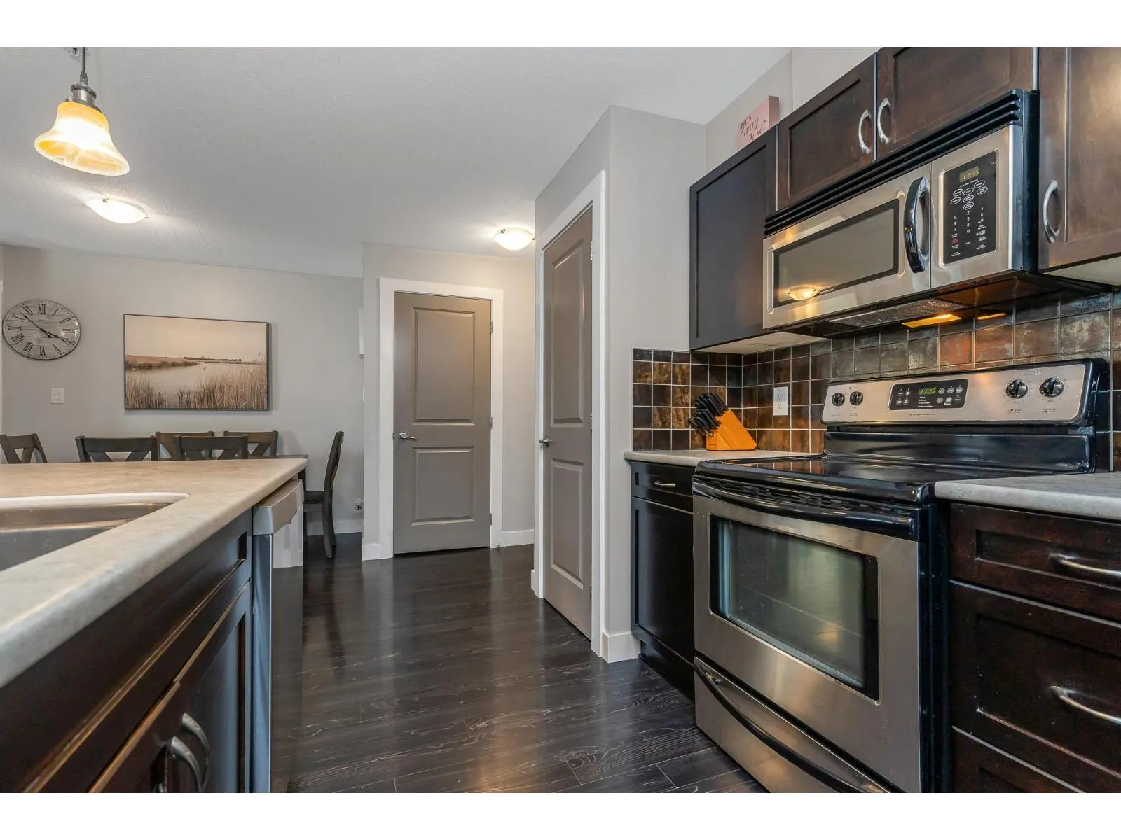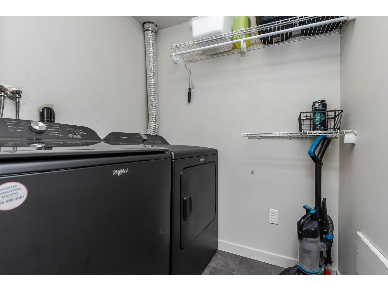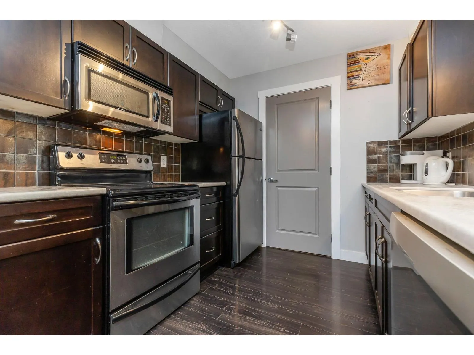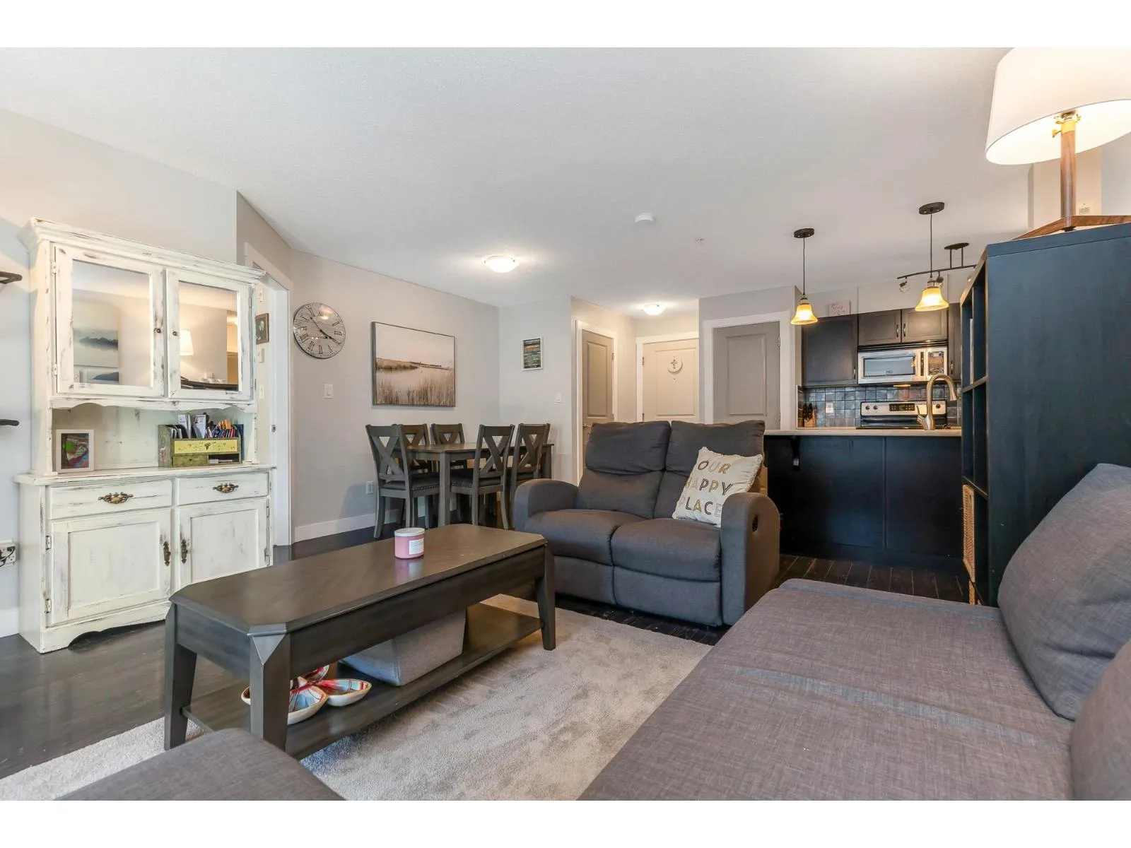 Welcome to The Element! This bright 3rd floor 2-bed, 2-bath home offers an inviting & functional layout in a well maintained complex. Enjoy a spacious living area w/ room for both dining & relaxing, a well-equipped kitchen, good-sized bedrooms, & ample storage. Features incl: a cozy electric fireplace, laminate floorings, S/S appliances and a great room feel, perfect for hosting. The covered east-facing deck is perfect for morning coffee or unwinding in the evening. Located on a quiet street with easy building access & plenty of visitor parking, it includes one underground parking stall & a separate storage locker. Excellent location for commuters and students alike with quick freeway access, and within walking distance to UFV. Rentals allowed, and one small dog or cat is welcome! (id:27476)