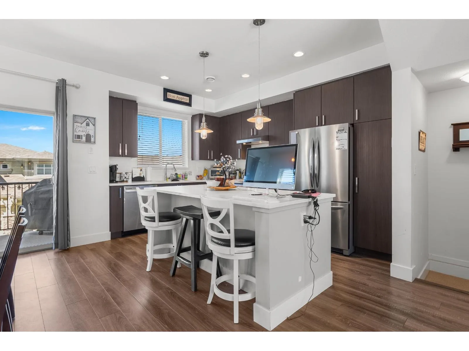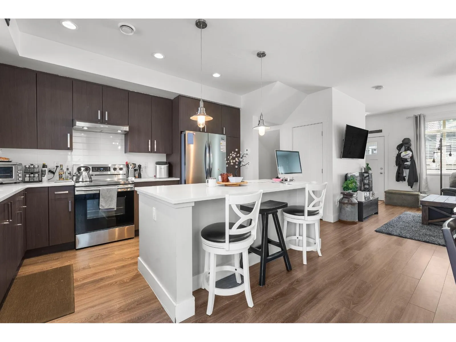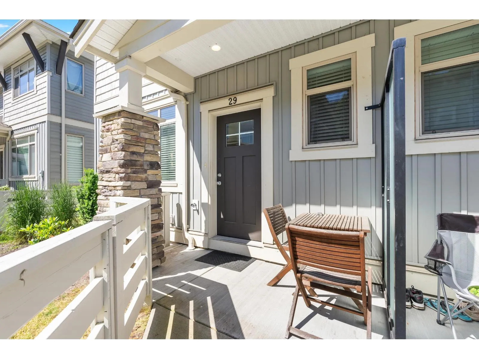 This is Ten Oaks! Welcome to this desirable townhome community in an ideal location within great school catchment and short walk to Clayburn Shopping Center. You will appreciate this nearly 1400 square foot home hosting 3 (easily 4) bedrooms and three bathrooms. Find an open and bright main floor with plenty of kitchen, dining and living room space. Above features three bedrooms including nice ensuite and full family bath. Basement has added office/bedroom and access to your double garage. Enjoy the hard-to-find double driveway with room to park two more full sized vehicles. Ten Oaks is a pet friendly strata welcoming two dogs (any size), or two cats or one of each. Reasonable fee of 290/month. Front fenced grass area plus community playground. Make Ten Oaks your home! (id:27476)