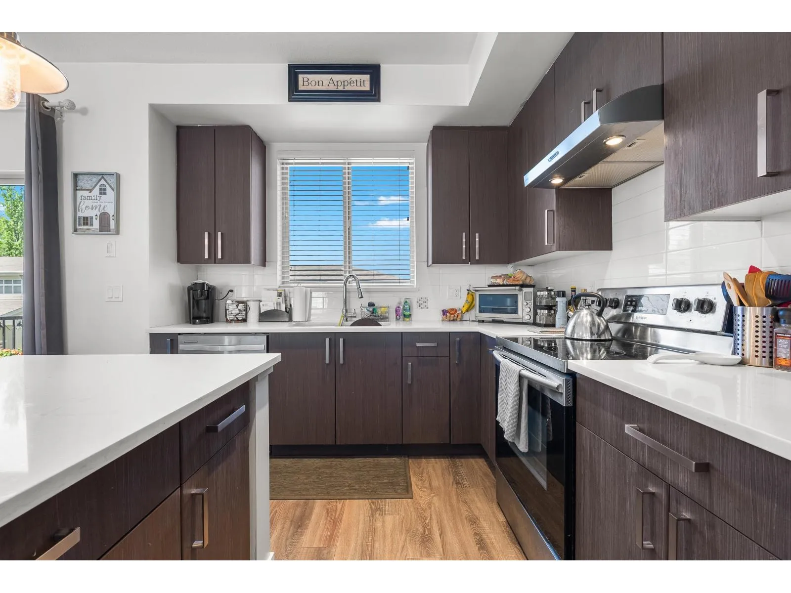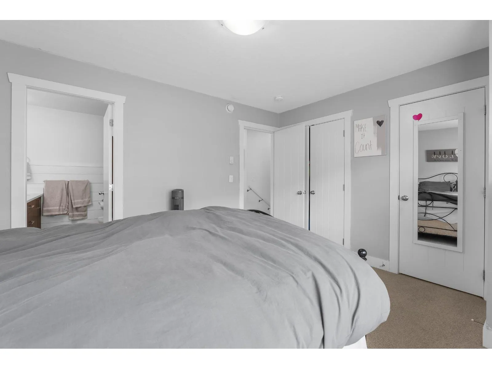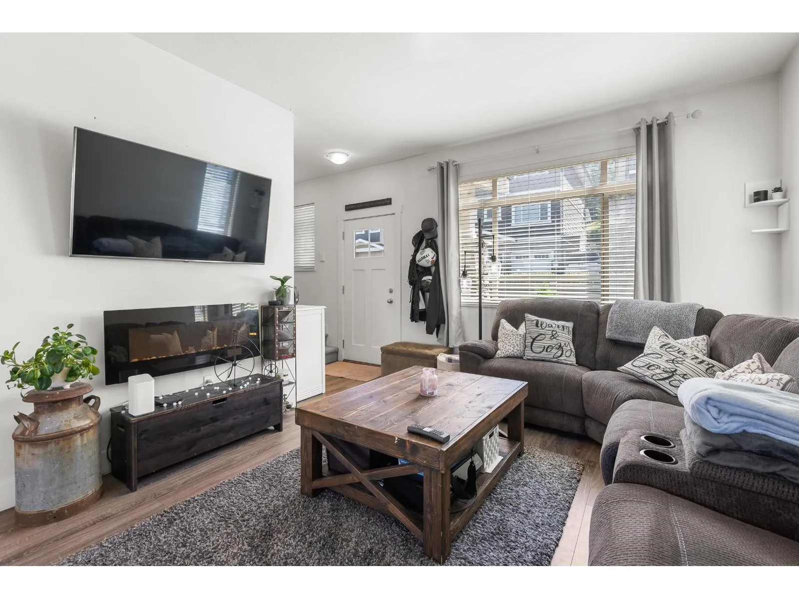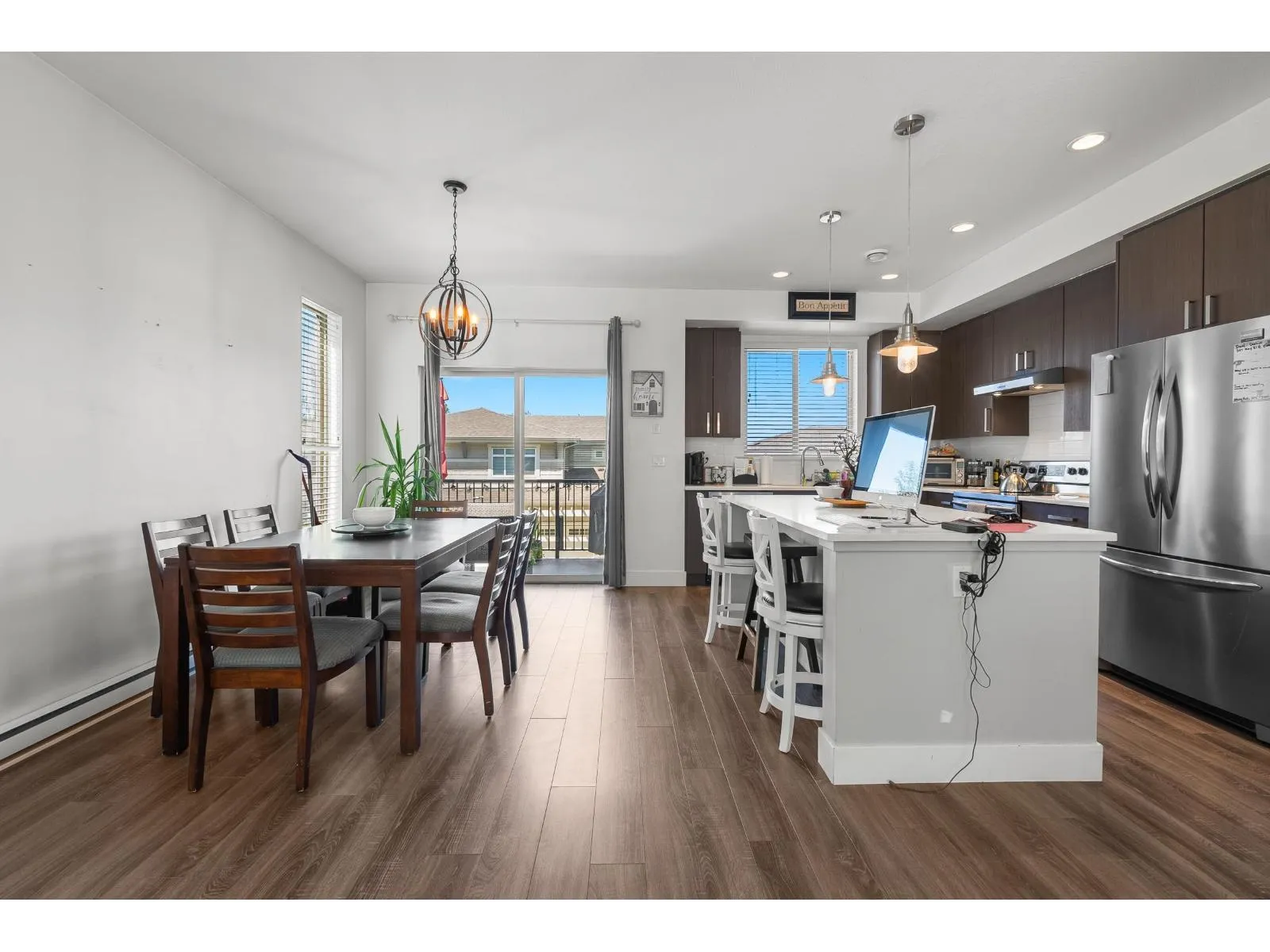 This is Ten Oaks! Welcome to this desirable townhome community in an ideal location within great school catchment and short walk to Clayburn Shopping Center. You will appreciate this nearly 1400 square foot home hosting 3 (easily 4) bedrooms and three bathrooms. Find an open and bright main floor with plenty of kitchen, dining and living room space. Above features three bedrooms including nice ensuite and full family bath. Basement has added office/bedroom and access to your double garage. Enjoy the hard-to-find double driveway with room to park two more full sized vehicles. Ten Oaks is a pet friendly strata welcoming two dogs (any size), or two cats or one of each. Reasonable fee of 290/month. Front fenced grass area plus community playground. Make Ten Oaks your home! (id:27476)