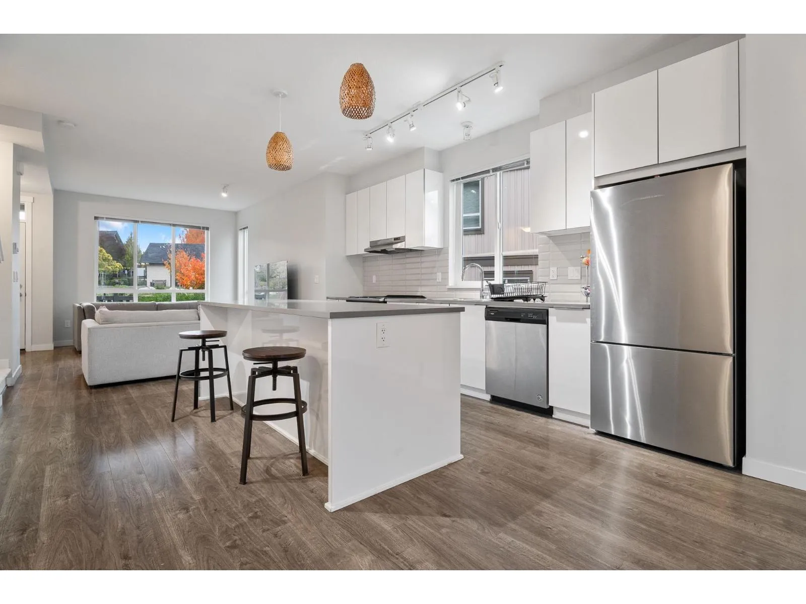 Welcome to Bristol Heights! This bright corner unit offers 3 bedrooms and 2.5 bathrooms in Polygon's sought-after community. Featuring an open-concept layout with 9-ft ceilings, laminate and carpet flooring, and a walk-out deck. The gourmet kitchen includes custom cabinetry, stainless steel appliances, engineered stone countertops, and a large island perfect for gatherings. The primary suite features double sinks and a spa-inspired shower. The oversized tandem garage fits a large truck, second vehicle, and extra storage. Enjoy access to the complex's fitness centre, pool, and hot tub. Conveniently located near schools, shopping, parks, and transit. (id:27476)