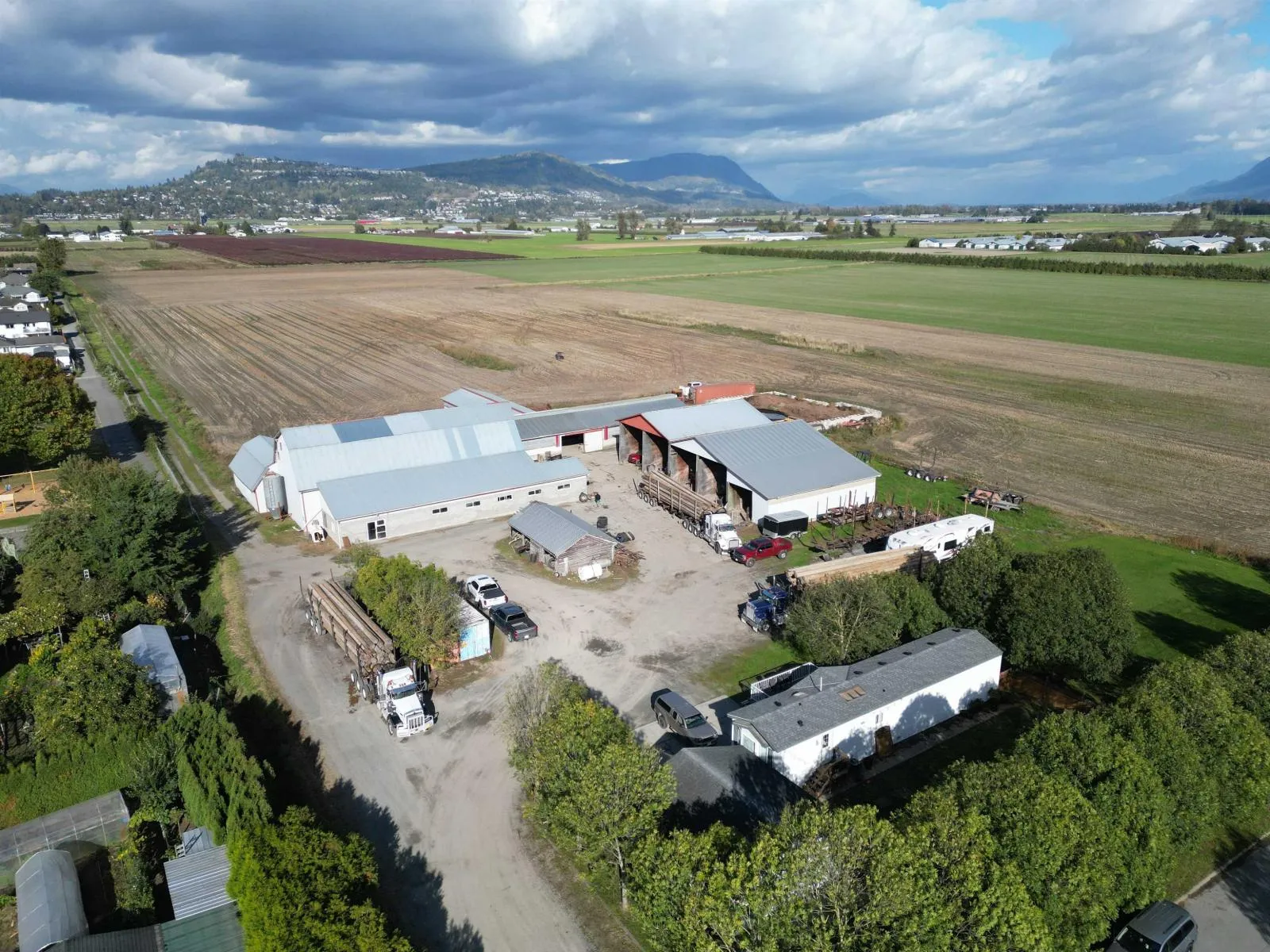 MOBILE HOME & BARNS ON 19.6 ACRES near the US Border, Costco, and Highway 1. This versatile property offers a 924 sq.ft. 2 bedroom mobile home, multiple bunkers, and spacious storage buildings, perfect for a wide range of agricultural uses. Improvements include four 18'x50' bunkers, an 80'x72' older barn, a 112' x 30' barn, an 80' x 25' barn, and a 65' x 18' former dairy parlor, providing abundant space for equipment, feed, or livestock. This well setup acreage with ample open parking and easy access provides a solid foundation for your next agricultural venture or expansion. Adjoining 43.28 Acres also available! see MLS R3061770/C8073363 - 34901 4 AVE. (id:27476)