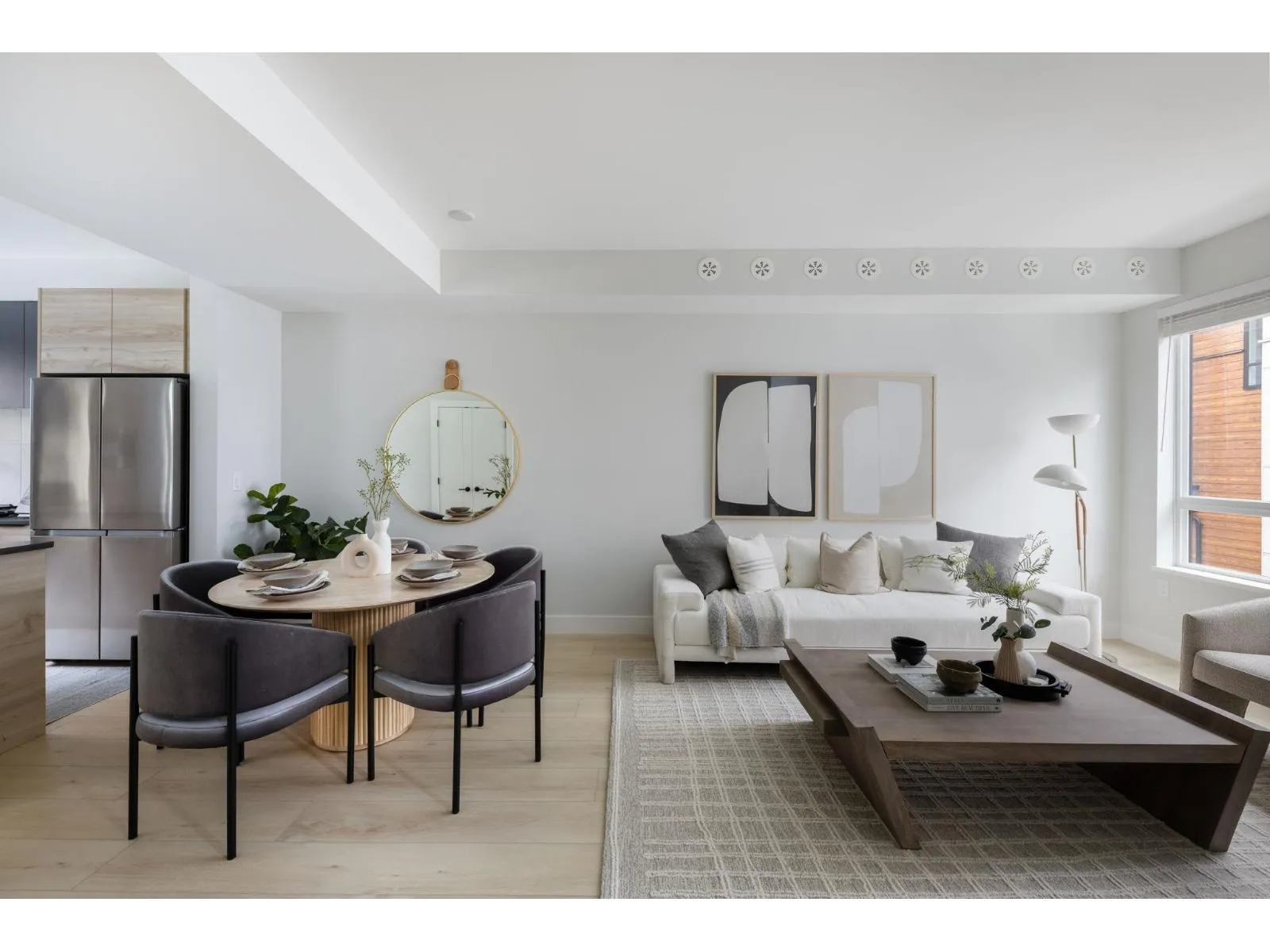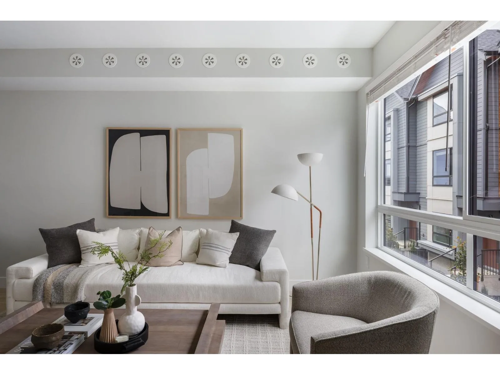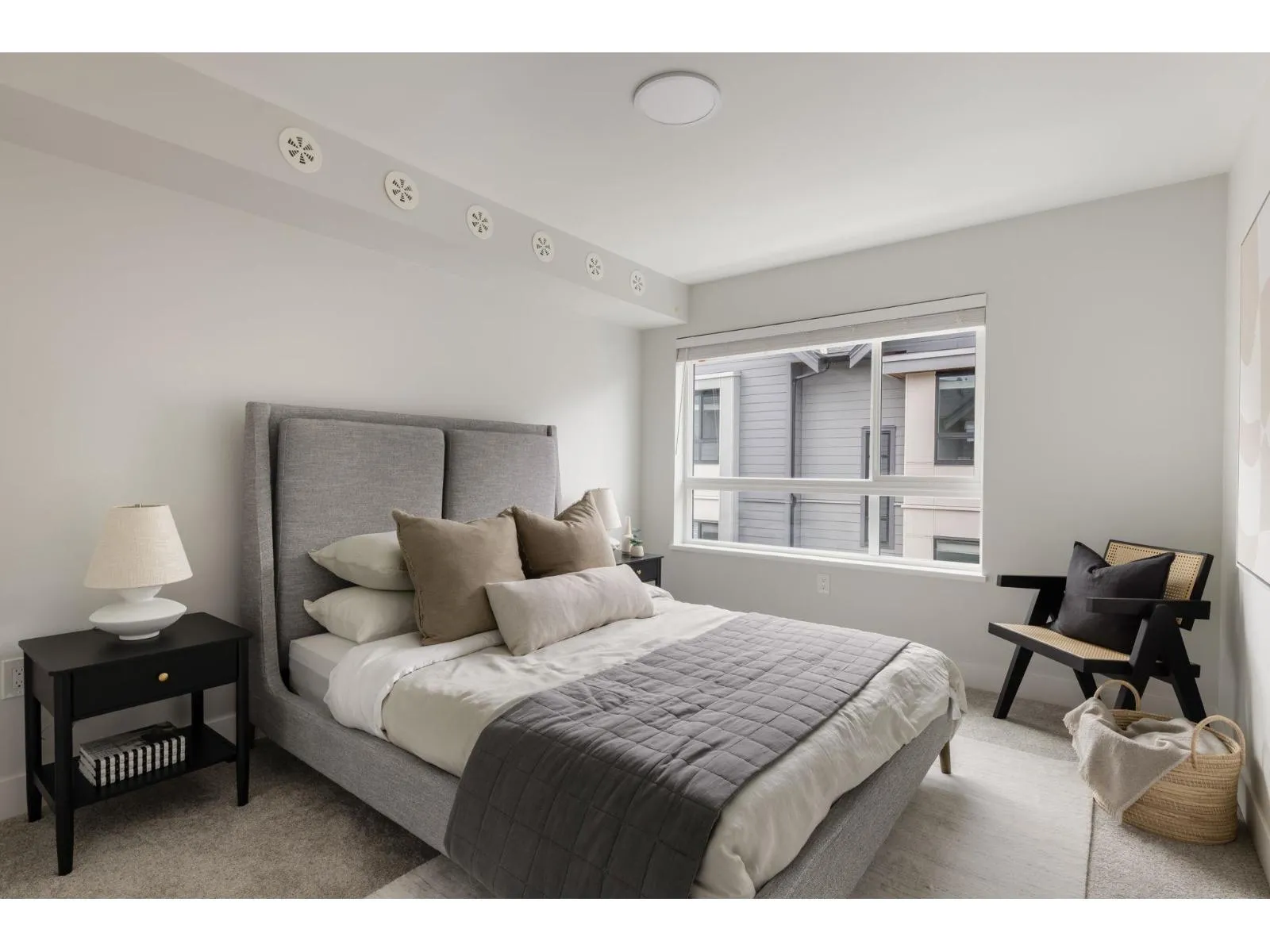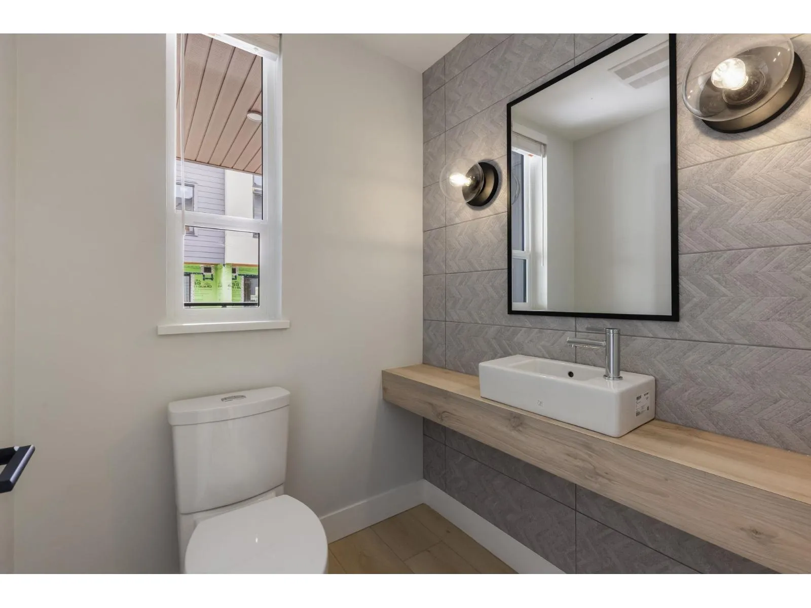 Move in ready at Abbotsford's best-selling community, Highstreet Village. This stunning townhome offers 3 bedrooms + flex space in a vibrant 12-acre community. Featuring 9' ceilings, durable vinyl plank flooring, and sleek roller shades, this home is designed for comfort and style. The modern kitchen boasts quartz countertops, two-tone cabinetry, and premium stainless steel appliances. A spacious primary suite includes a walk-in closet and a spa-like ensuite with a frameless glass shower. Enjoy a private covered deck, side-by-side attached garage, and top-tier amenities including a clubhouse with full gym, indoor kids play area, garden plots, rooftop terrace, and more. Steps from Highstreet Shopping Centre, Hwy 1, and Abbotsford Airport. (id:27476)