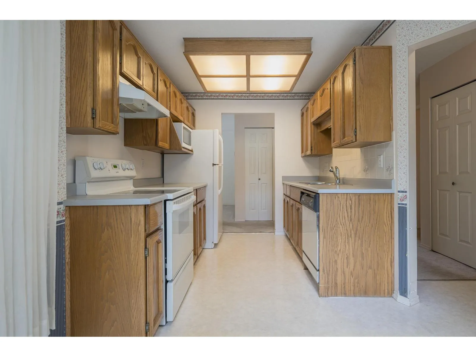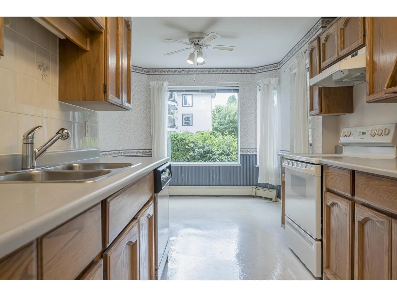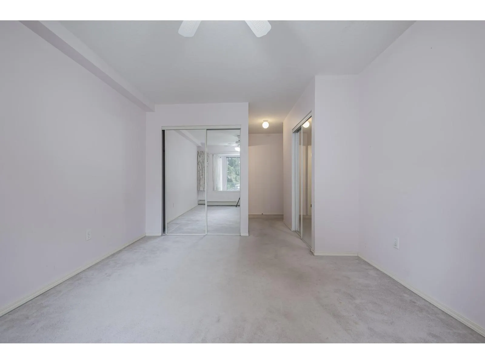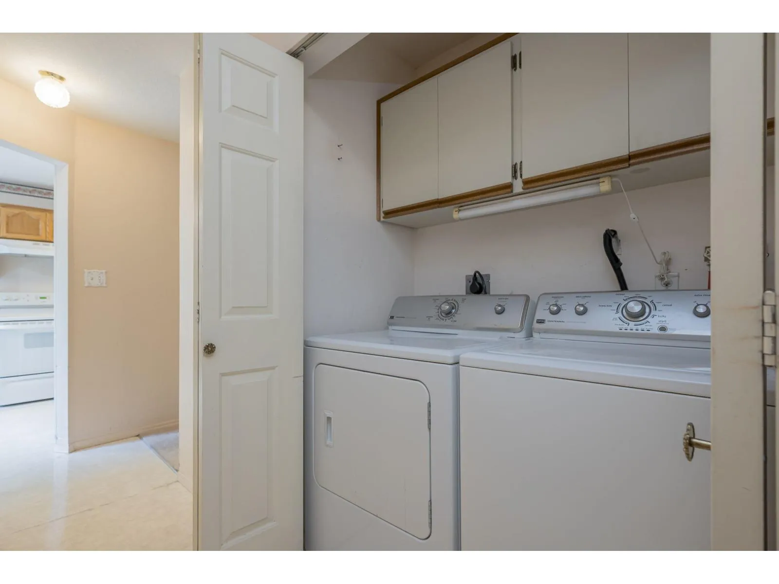 Welcome to MAYFAIR PLACE - a well-maintained 55+ community in Abbotsford! This bright & spacious 2 bed / 2 bath corner unit offers 1140 sq ft of comfortable living space. Situated on the 1st floor (but not ground level), this end unit provides added privacy & a quiet, peaceful setting. The home features a large primary bedroom with ensuite, a well-sized second bedroom, & a functional layout that's perfect for easy living. In original condition & well cared for, it's a blank canvas ready for your renovation ideas. Enjoy the convenience of one parking stall & a dedicated storage locker, plus building amenities including a rec room for entertaining and a workshop for your creativity. Close to shopping, restaurants, and public transportation. You don't want to miss this one! (id:27476)