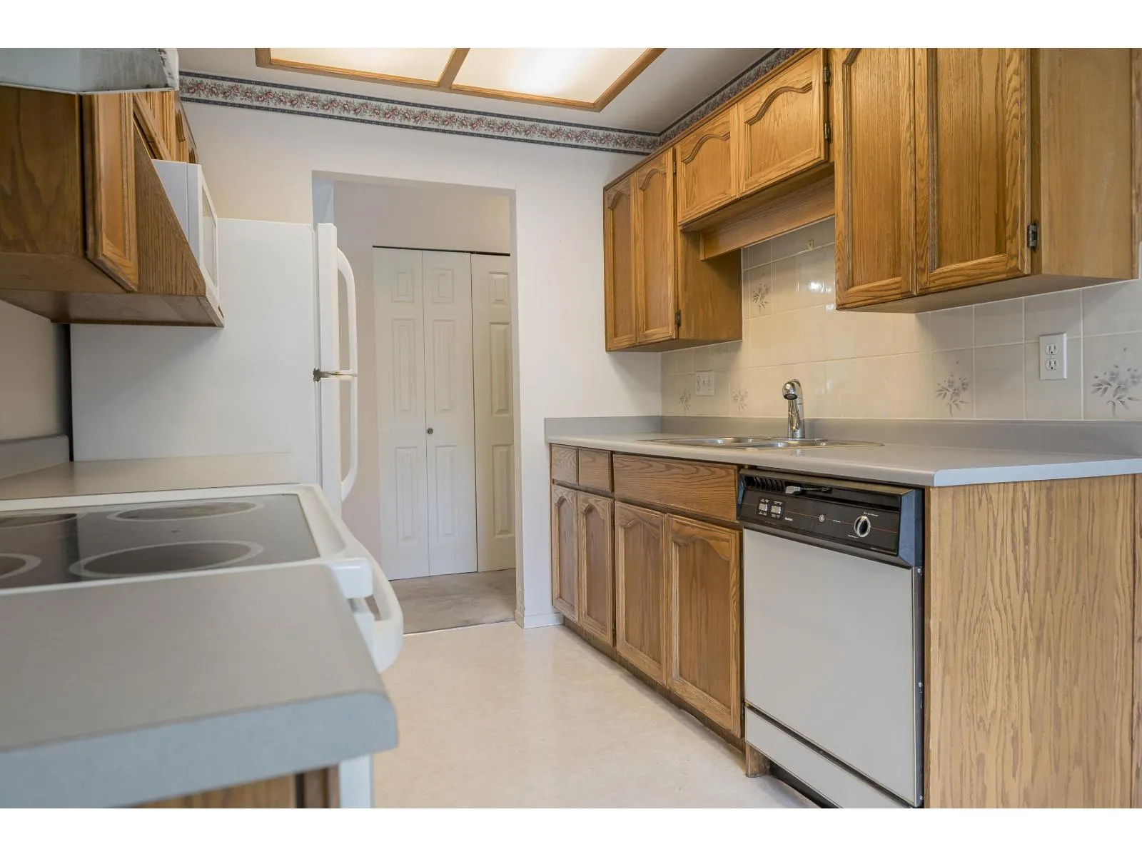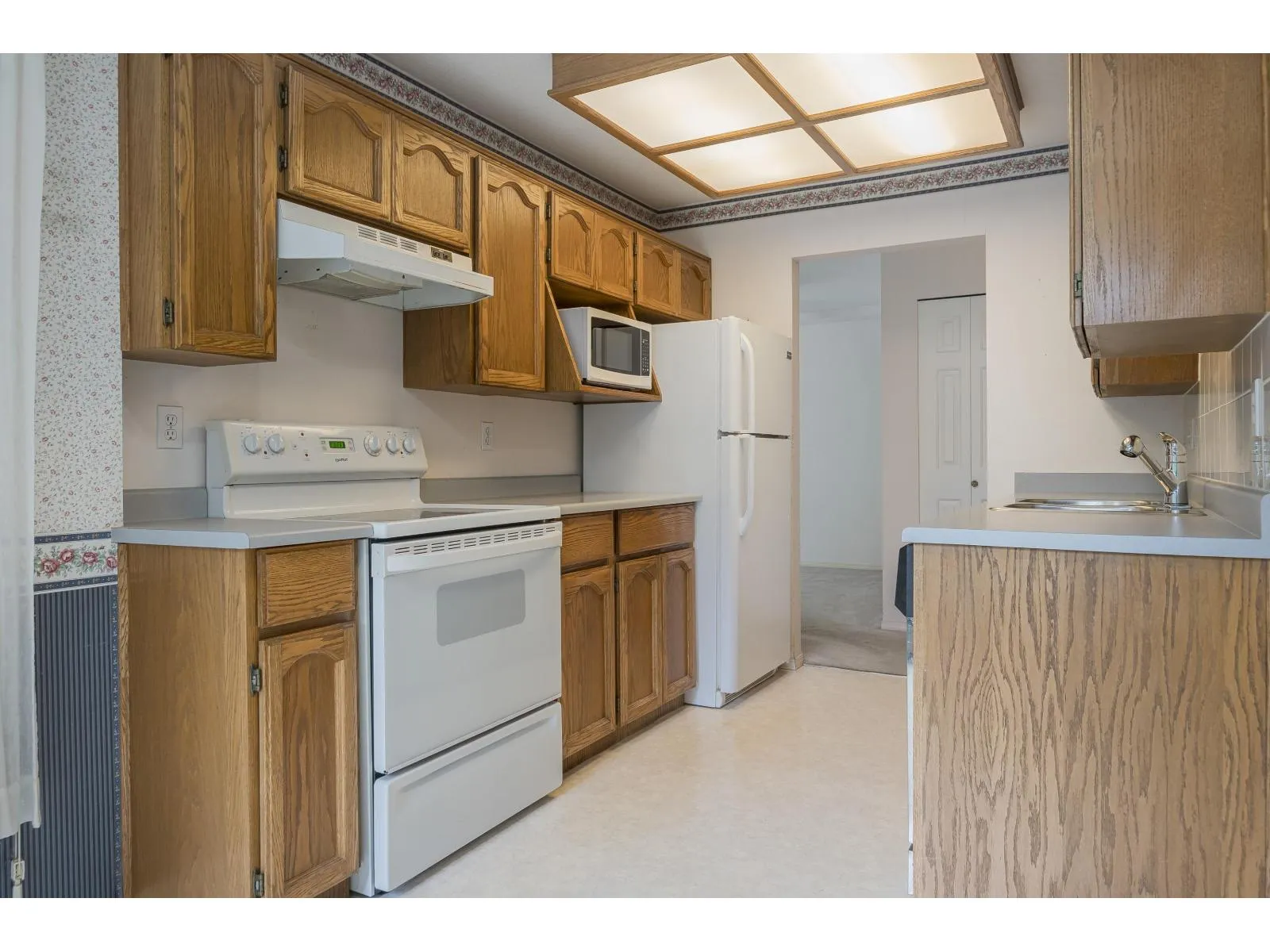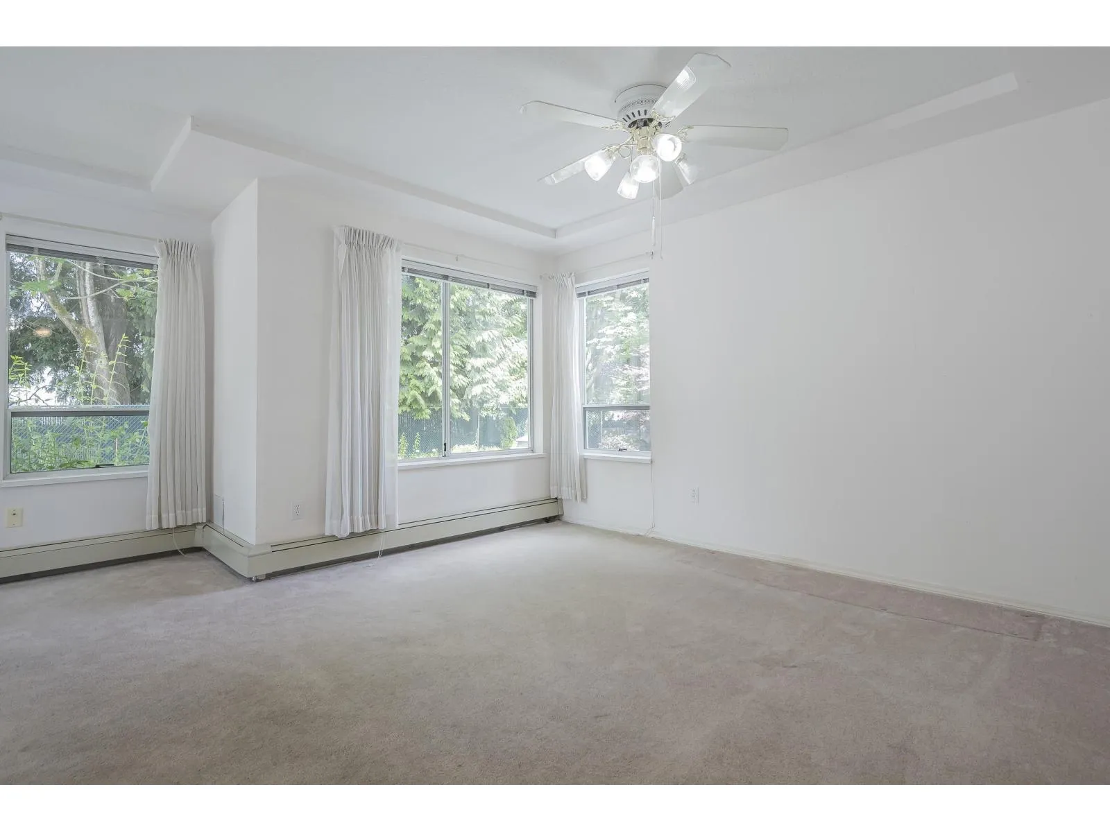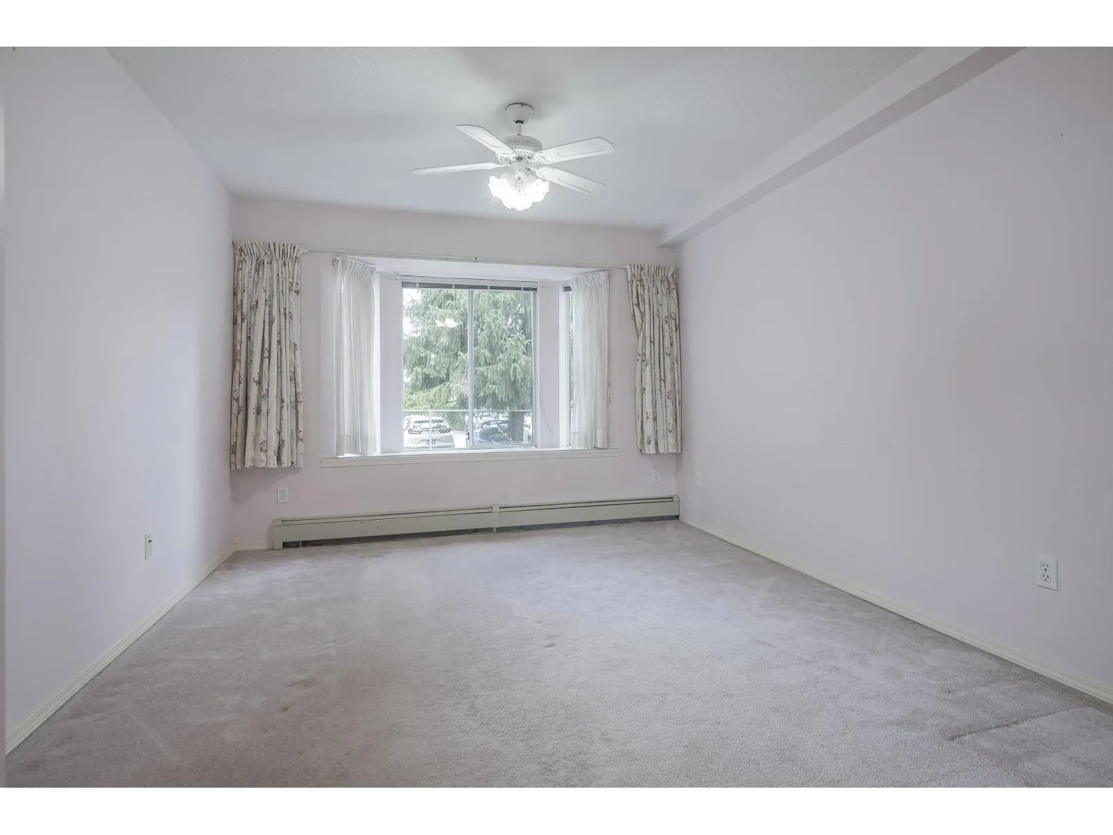 Welcome to MAYFAIR PLACE - a well-maintained 55+ community in Abbotsford! This bright & spacious 2 bed / 2 bath corner unit offers 1140 sq ft of comfortable living space. Situated on the 1st floor (but not ground level), this end unit provides added privacy & a quiet, peaceful setting. The home features a large primary bedroom with ensuite, a well-sized second bedroom, & a functional layout that's perfect for easy living. In original condition & well cared for, it's a blank canvas ready for your renovation ideas. Enjoy the convenience of one parking stall & a dedicated storage locker, plus building amenities including a rec room for entertaining and a workshop for your creativity. Close to shopping, restaurants, and public transportation. You don't want to miss this one! (id:27476)