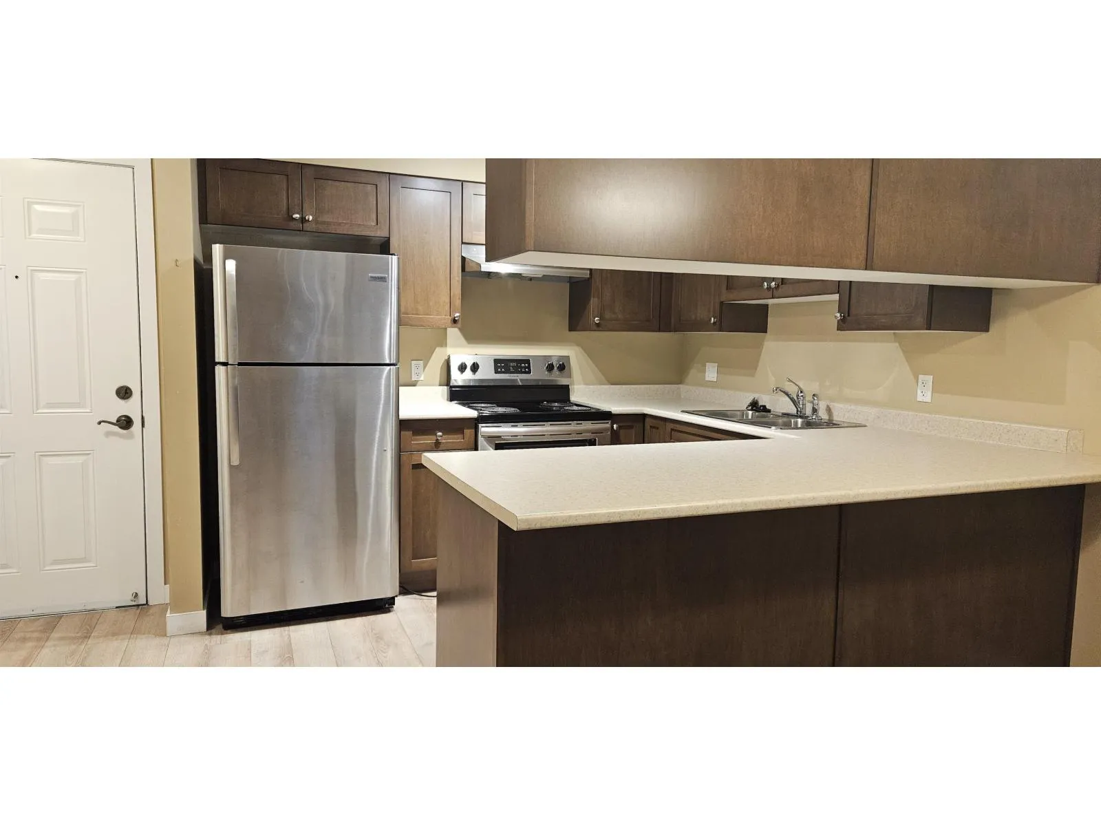 First time buyer and investor alert! Unit fully renovated in 2020 and still in great shape. Everything was done! Flooring, cabinets, paint, bathroom, stainless steel kitchen appliances and laundry are all 5 years young. Primary bedroom with walk-through closet to cheater ensuite bathroom. Warm, bright unit with mountain and city view from balcony on the quiet side of the building. Two underground parking spaces and a storage locker included. Seasonal use of rooftop patio. Easy access to transit, schools and amenities. Super central location provides easy access to major roadways. Two cats allowed, but no dogs. Walk Score of 86 out of 100. This location is Very Walkable so most errands can be accomplished on foot. (id:27476)