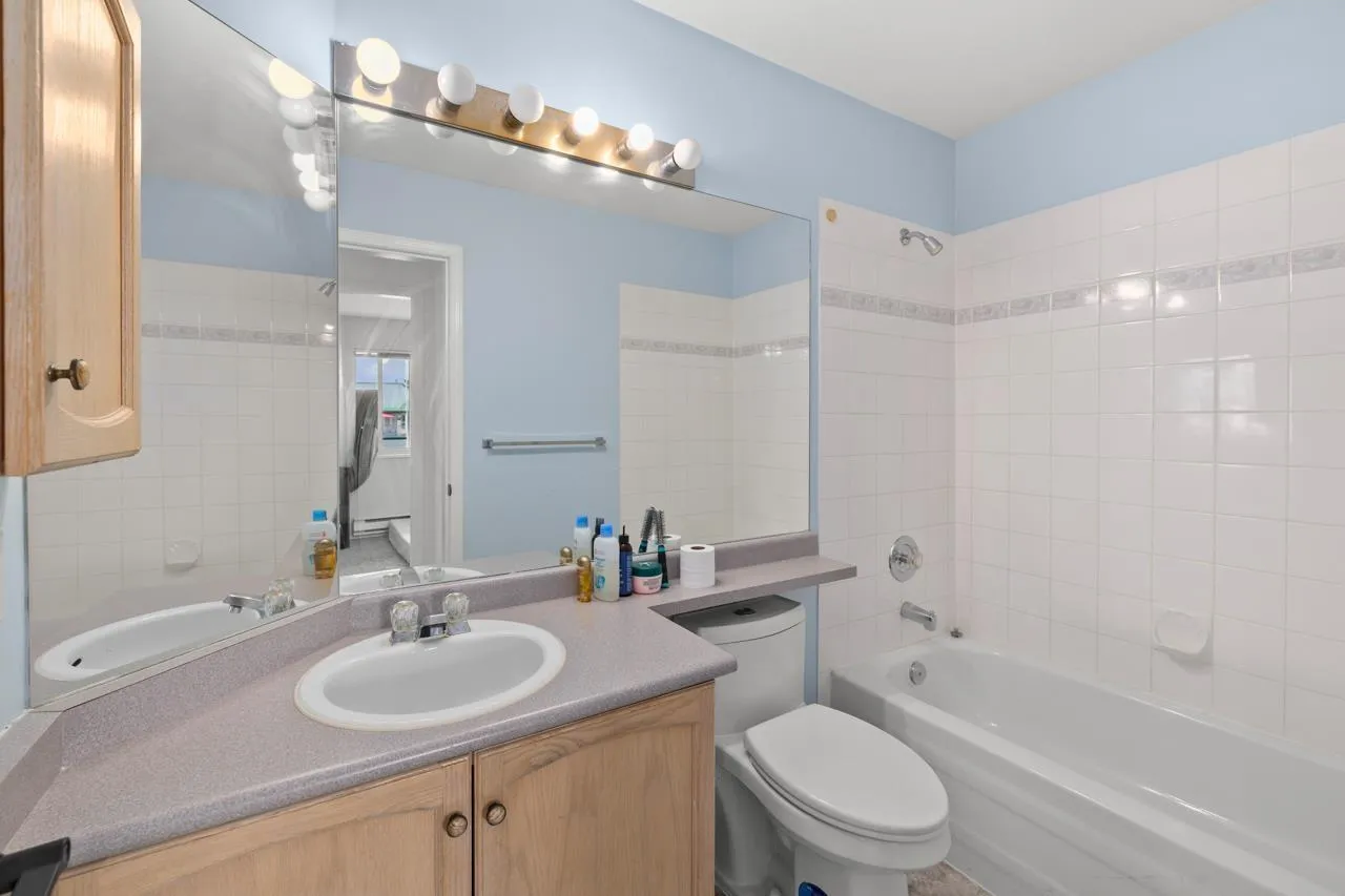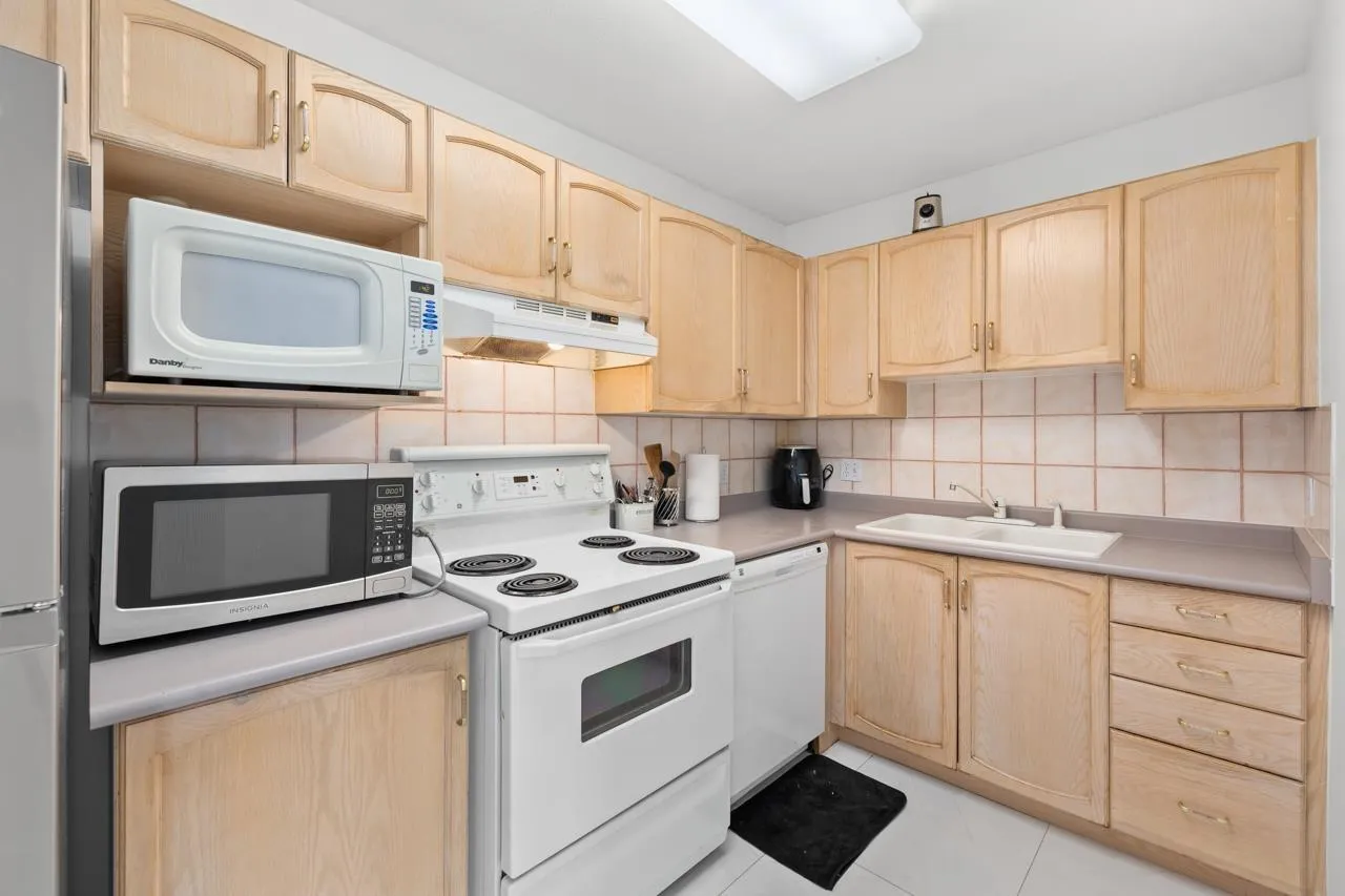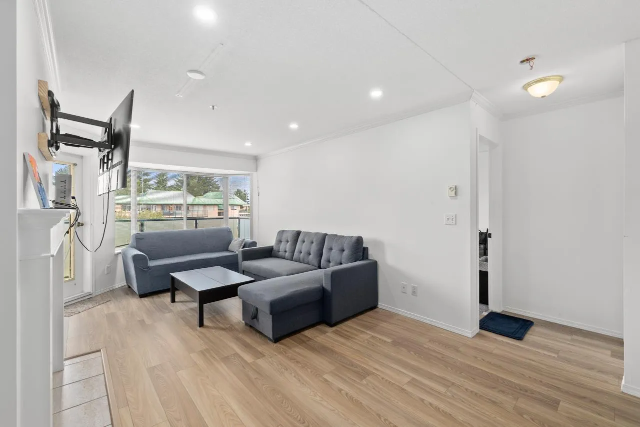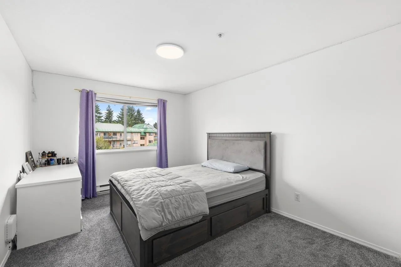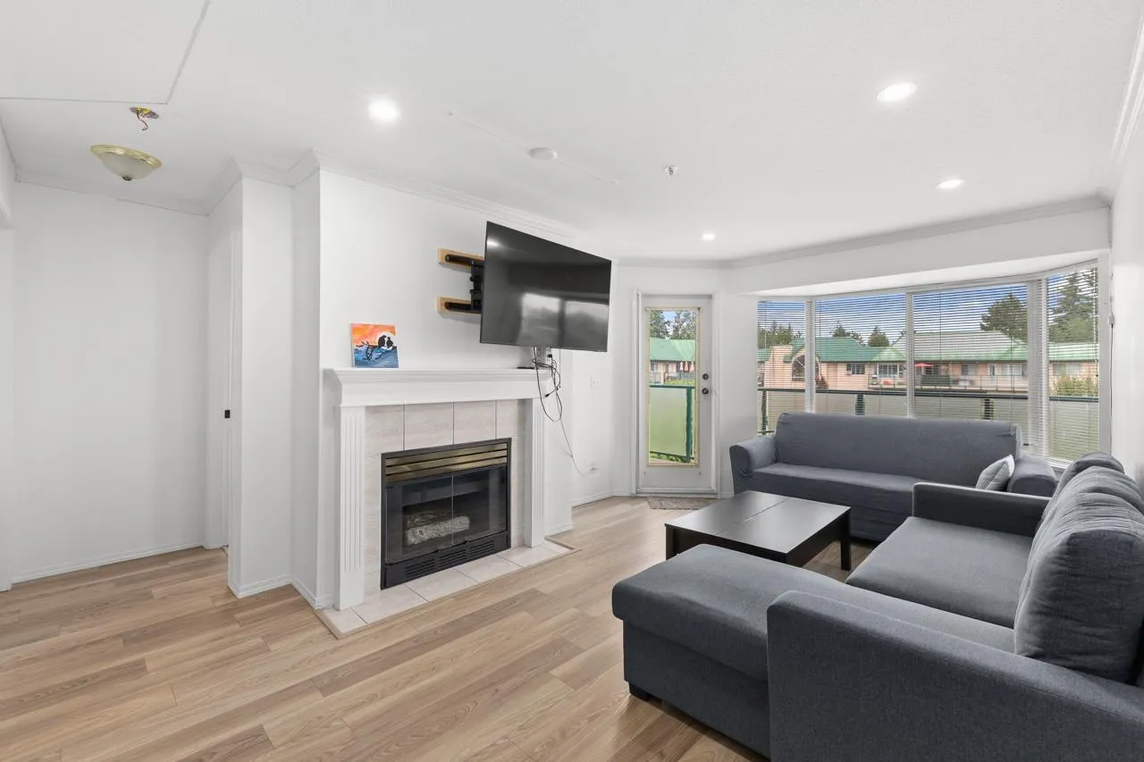 Top-floor unit - affordable and perfect for first-time buyers or those looking to downsize! Situated in a welcoming, family-friendly neighborhood, this spacious and well-maintained home offers 2 bedrooms and 2 full bathrooms. The bright living room features a cozy gas fireplace (gas and hot water are included in the strata fees) complemented by tasteful updates throughout, including new tiles, laminate flooring, fresh paint, new carpet in both bedrooms, and pot lights in the living room. Comes with 1 underground parking stall and is within walking distance to W.J. Mouat High, Howe Middle, John Maclure Elementary, shopping, Rotary Stadium, Seven Oaks, Mill Lake, and Matsqui Rec Center. Contact for more details! (id:27476)