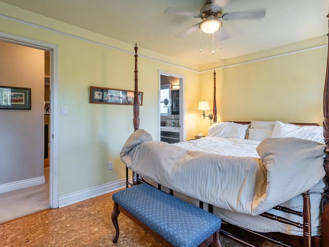 Desirable air conditioned family home backing onto a greenbelt in West Abbotsford must be seen to appreciate. Upstairs boasts entertainment sized living rm w/vaulted ceiling & gas fireplace, dining rm with attractive wainscoting and hardwood floors, updated kitchen with gas stove and door to large enclosed deck, and 2 baths and 3 bdrms including spacious primary bdrm w/3 pce ensuite. Lower level offers attractive mill work, bdrm with cork floors open to sitting area, rec rm could easily accommodate a suite kitchen and living rm, second bdrm and 3 pce bath. Many updates including kitchen cabinets, windows, air conditioning, high efficiency low flow toilets and more. Enclosed deck and patio including patio with gas firepit, hot tub and rear yard with above ground pool overlooks greenbelt. (id:27476)