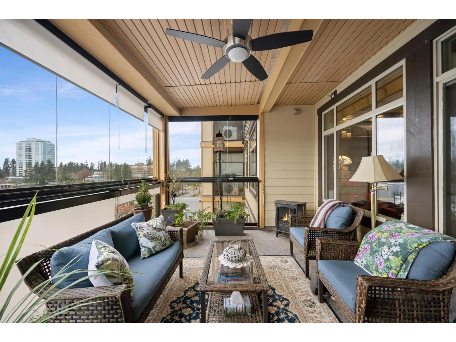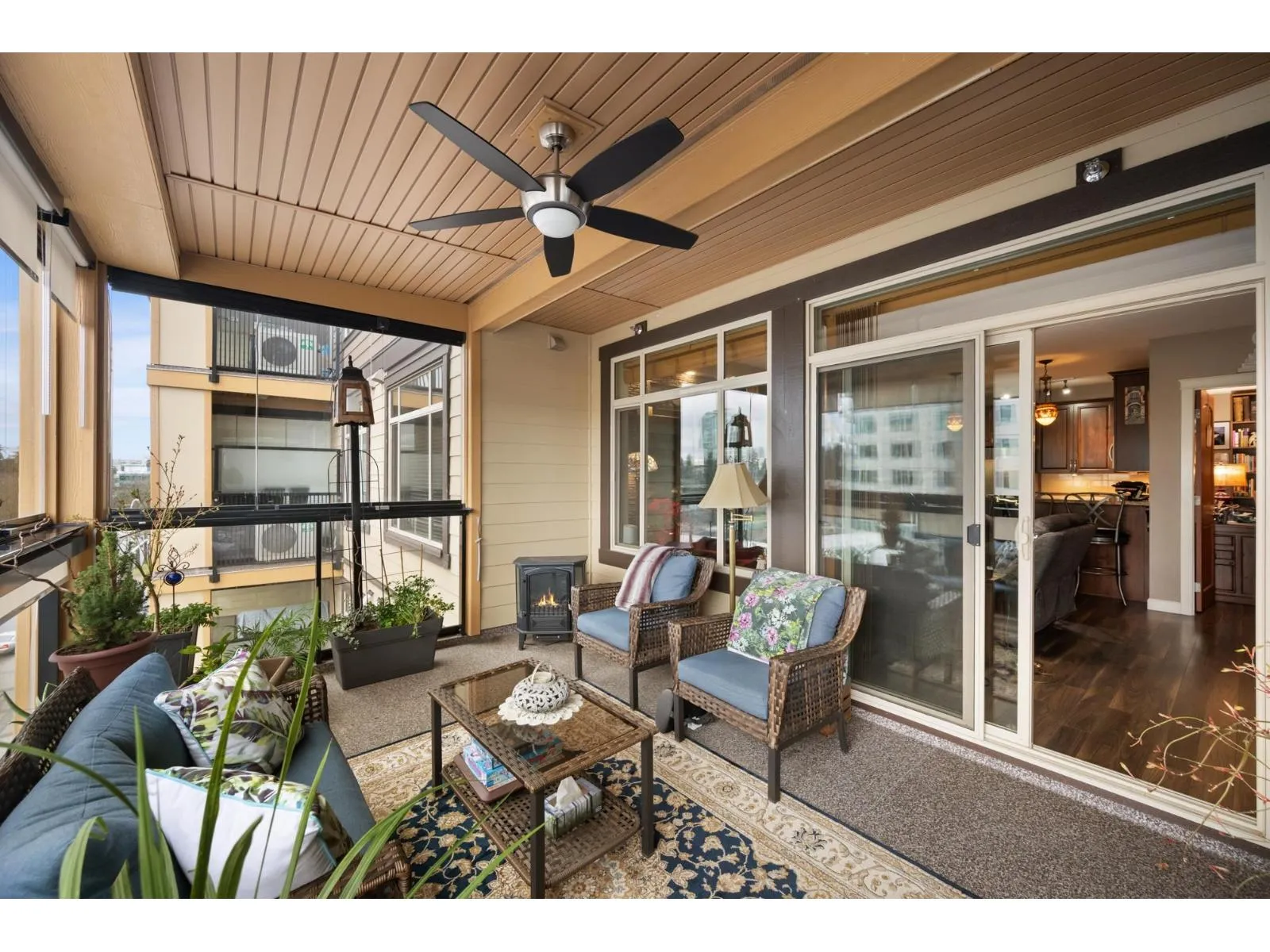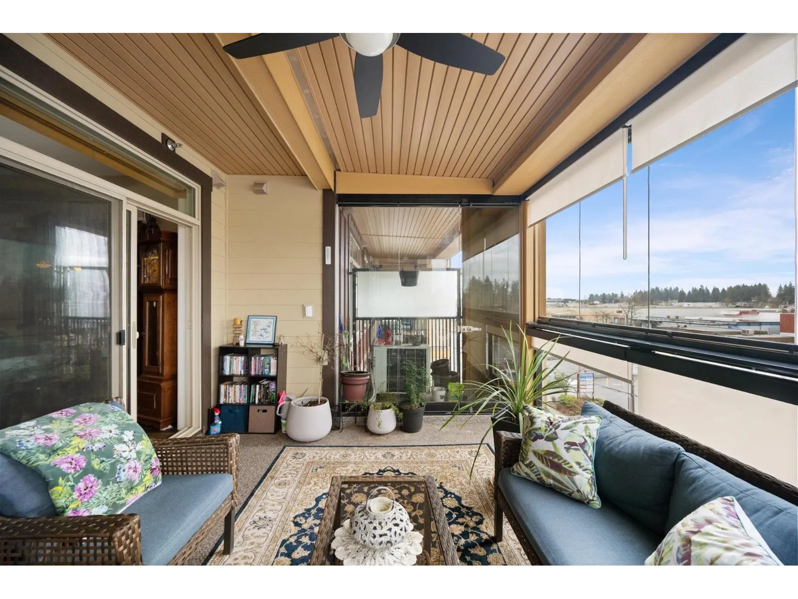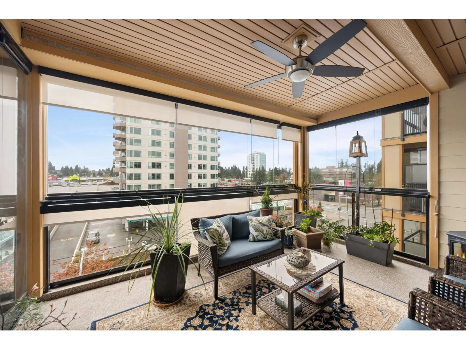 Welcome to La Galleria! One of Abbotsford's only LUXURY condo buildings! This is a gorgeous, SOUTH FACING, 2 BEDROOM + DEN, 2 bathroom unit located in the heart of Abbotsford! This bright, south-facing unit is flooded with natural sunlight throughout the day... and don't worry... it has A/C! With a top-of-the-line LUMON window system, the spacious SOLARIUM is an absolute highlight, perfect for enjoying your patio all year-round. It can be opened & closed as you please! This home also has some incredible upgrades including, a cozy electric fireplace, heated floors in the primary ensuite, high-end roller shades in the solarium, beautiful feature wall w/shelving in the living room & even some extremely well thought out cabinet organization in the kitchen! (id:27476)